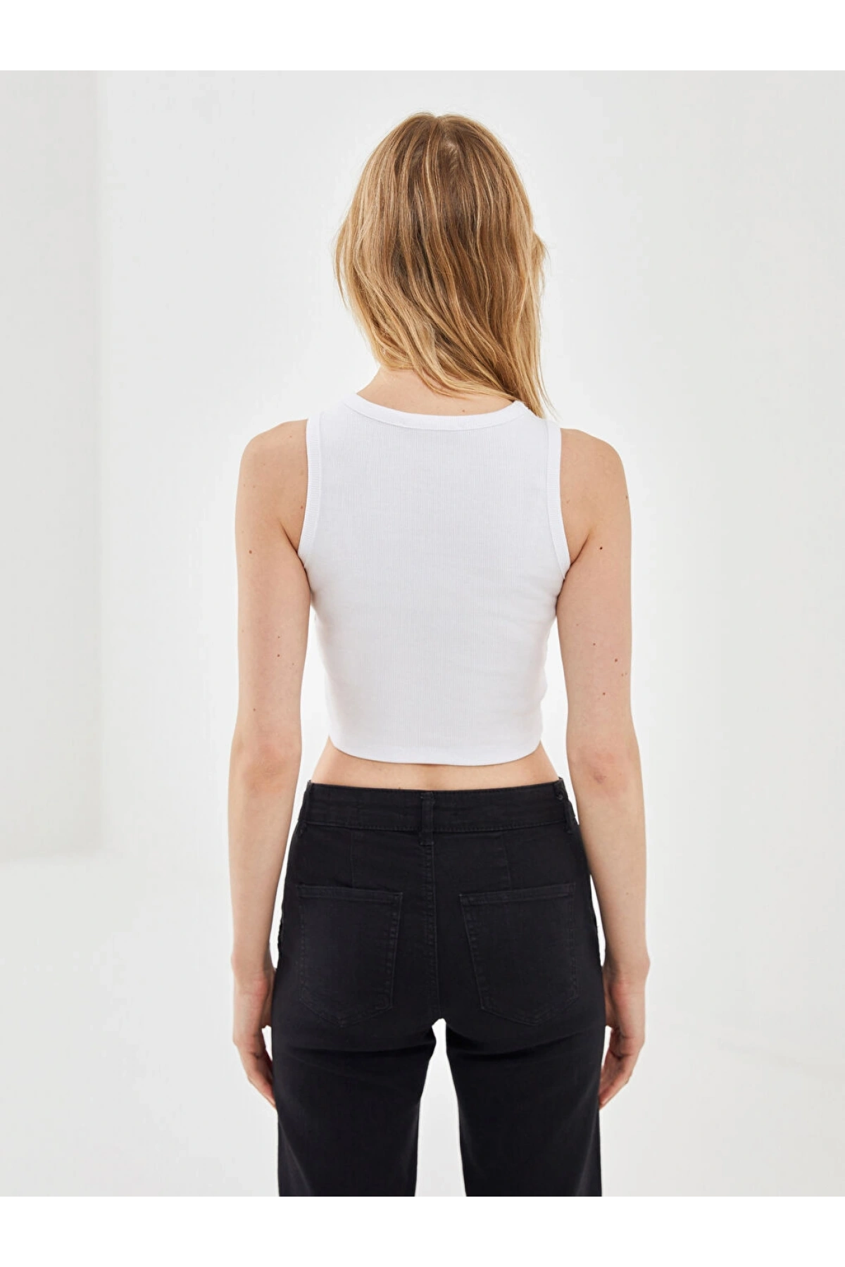 LC Waikiki Bisiklet Yaka Baskılı Kadın Crop