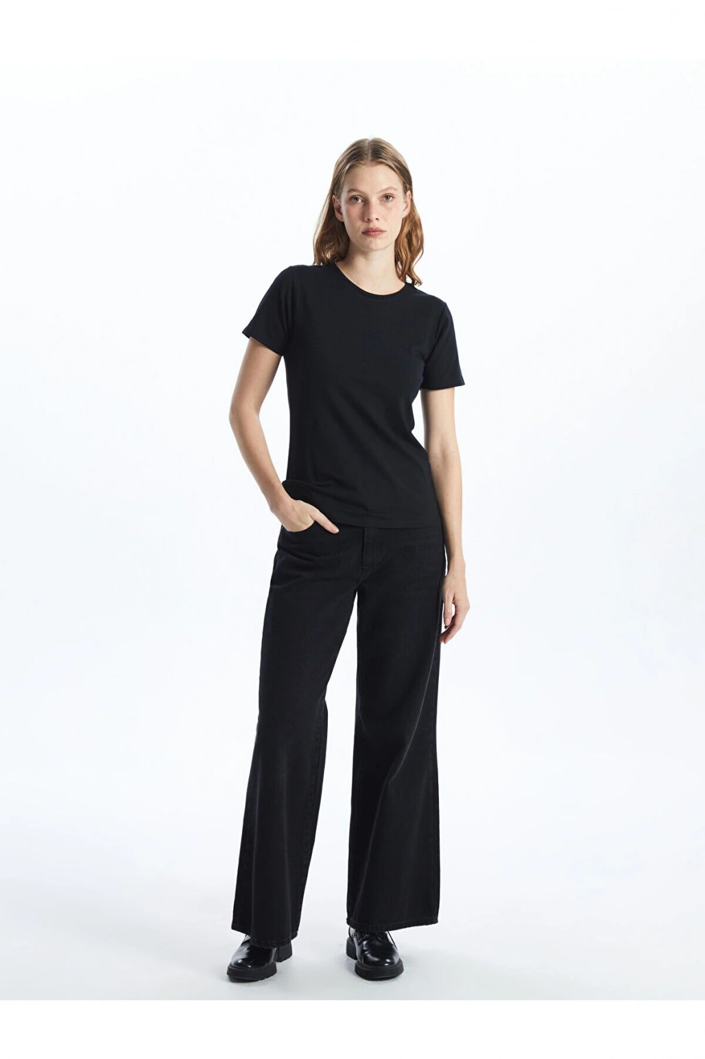 LCW Vision Bisiklet Yaka Düz Kısa Kollu Kadın Tişört