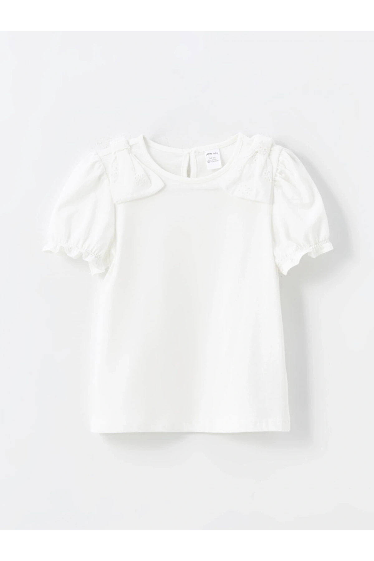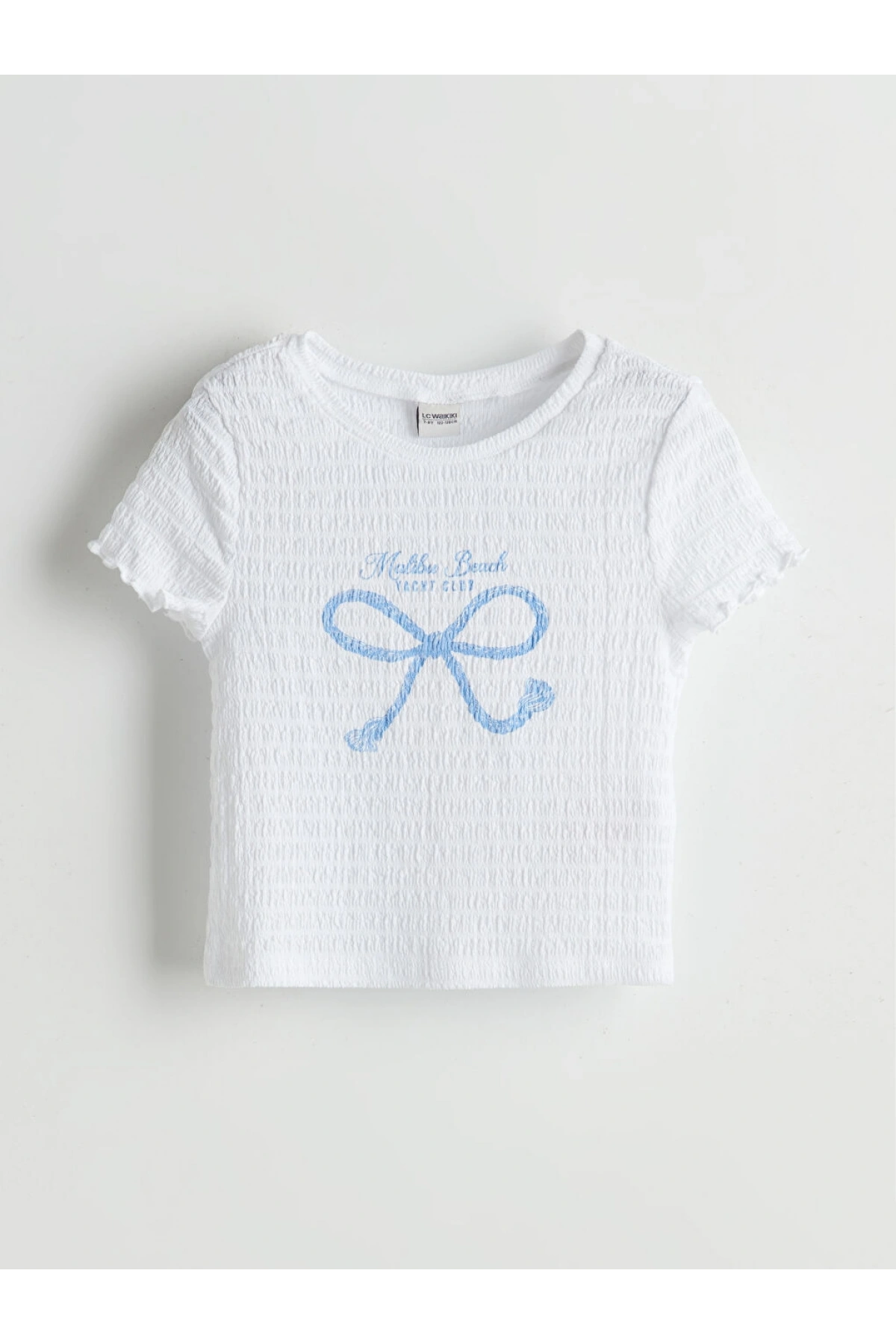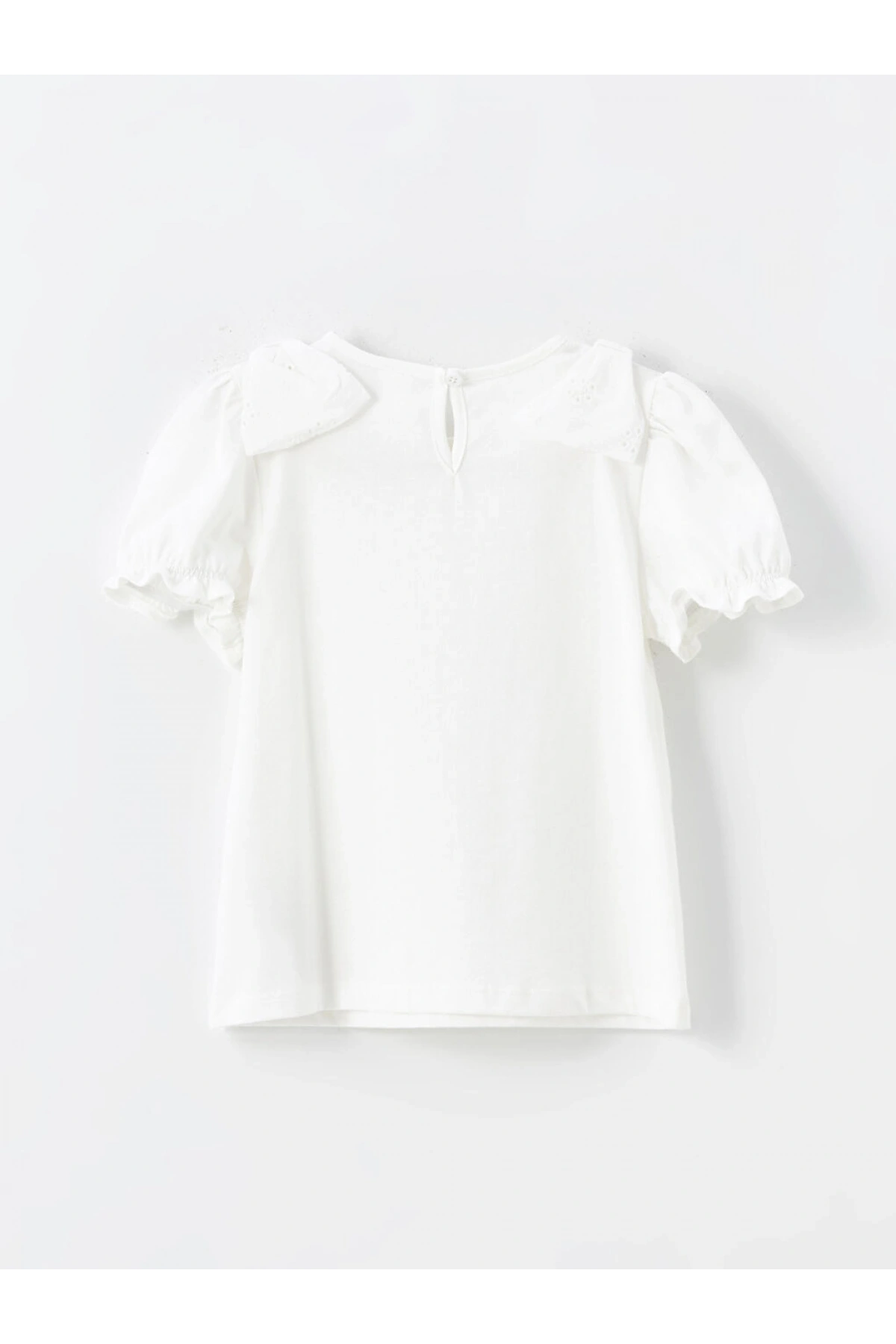 LCW Kids Beyaz Bisiklet Yaka Fiyonk Baskılı Kız Çocuk Tişört