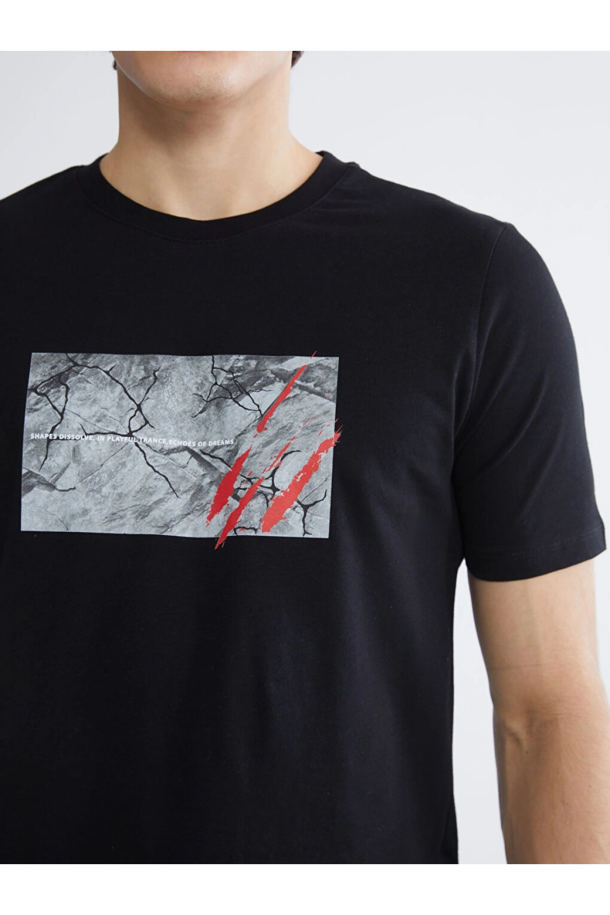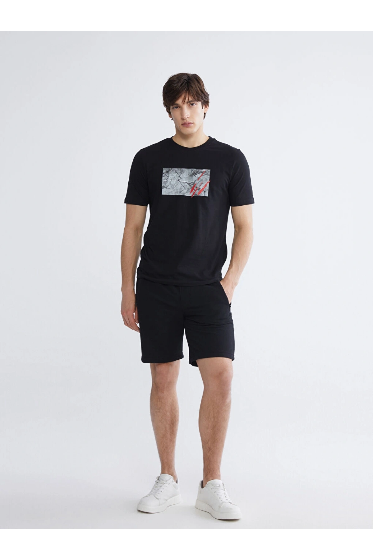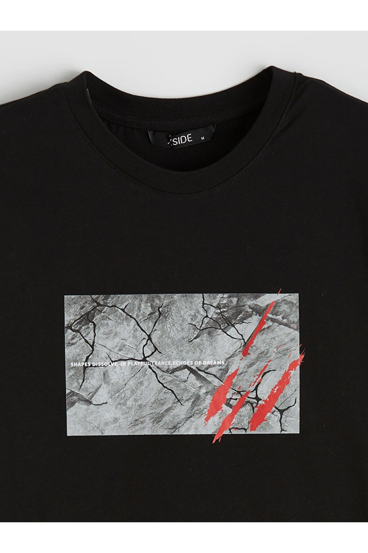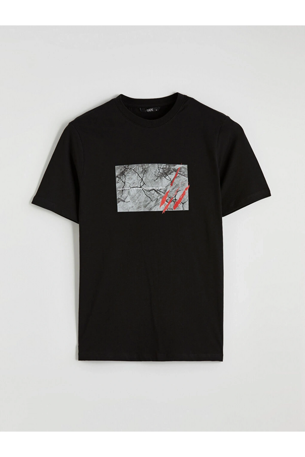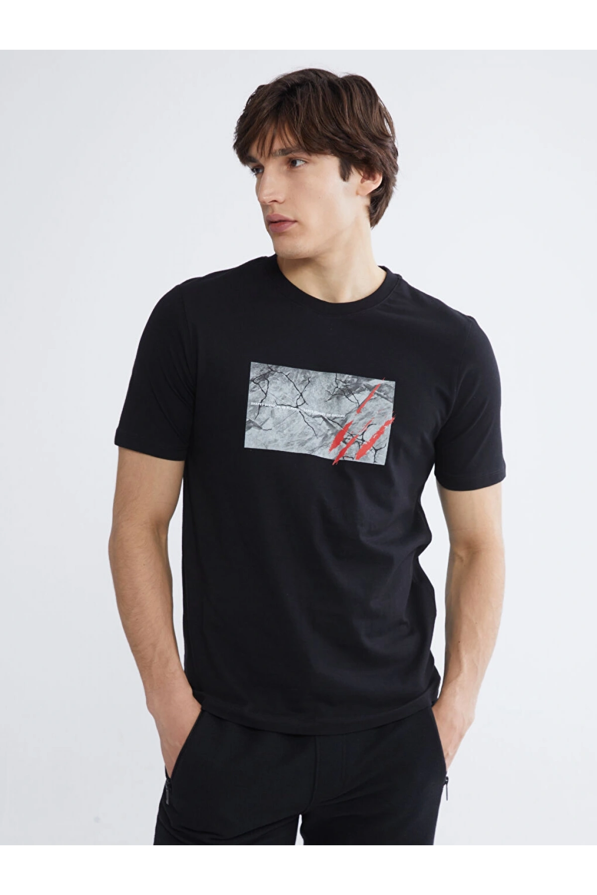 LC WAİKİKİ XSIDE Siyah Bisiklet Yaka Baskılı Penye Erkek Tişört