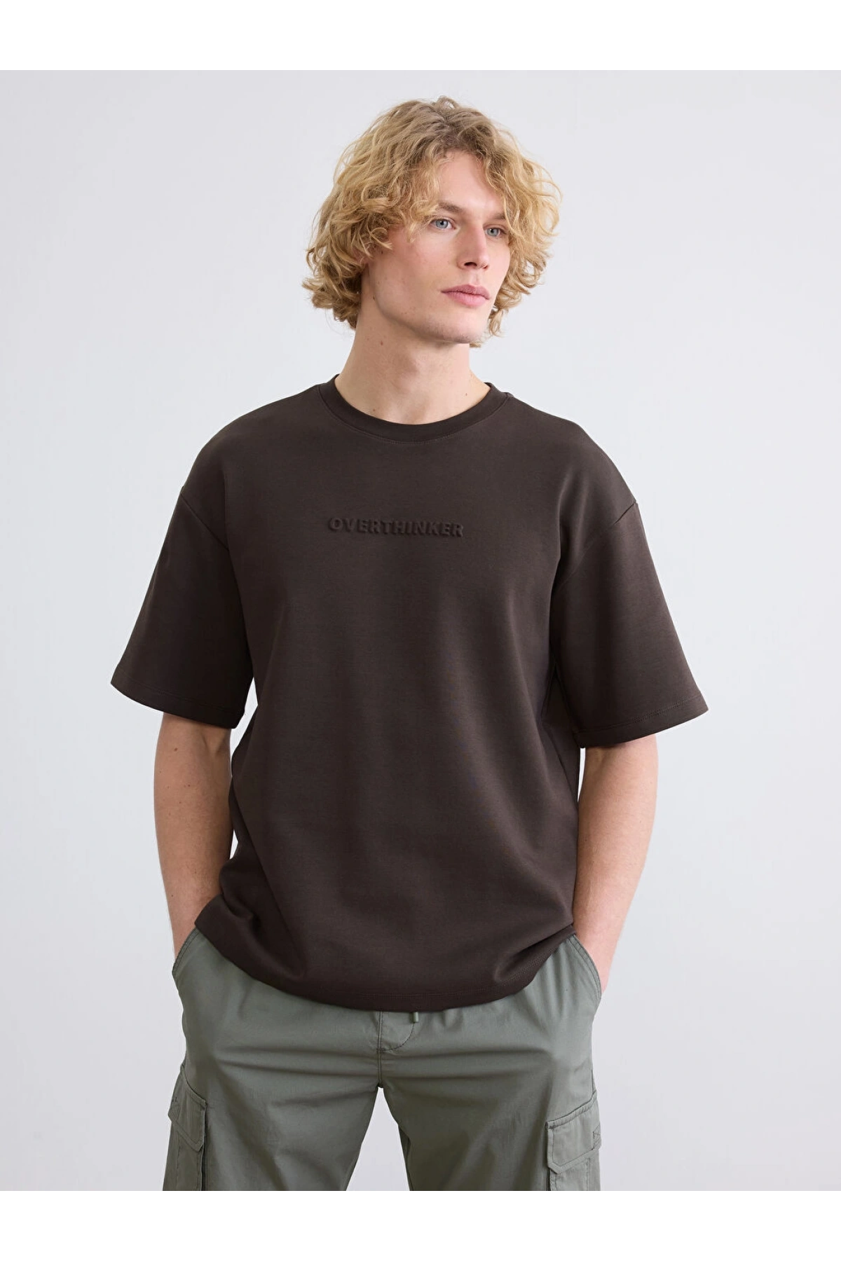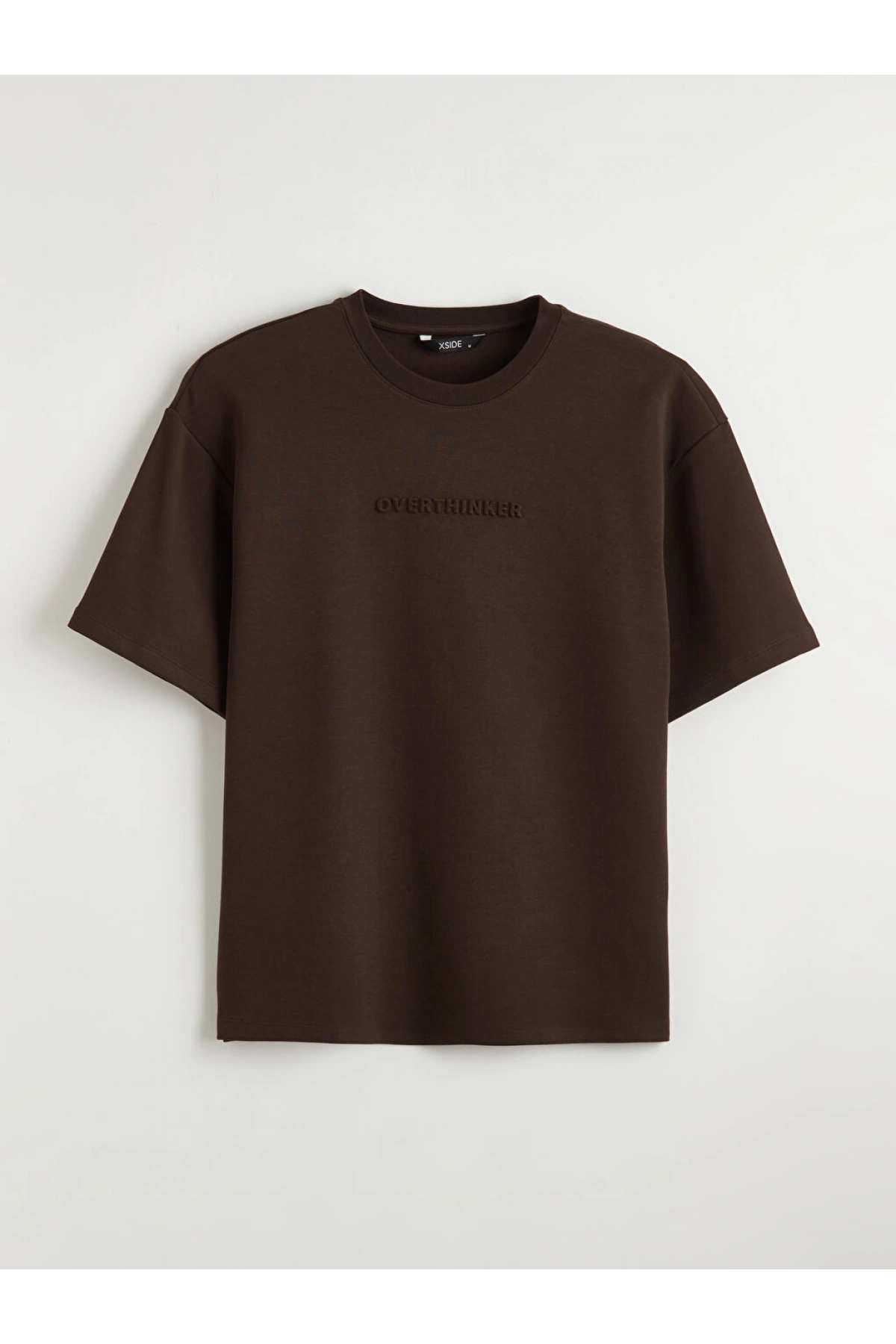 LC Waikiki XSIDE Kahverengi Bisiklet Yaka Baskılı Erkek Tişört