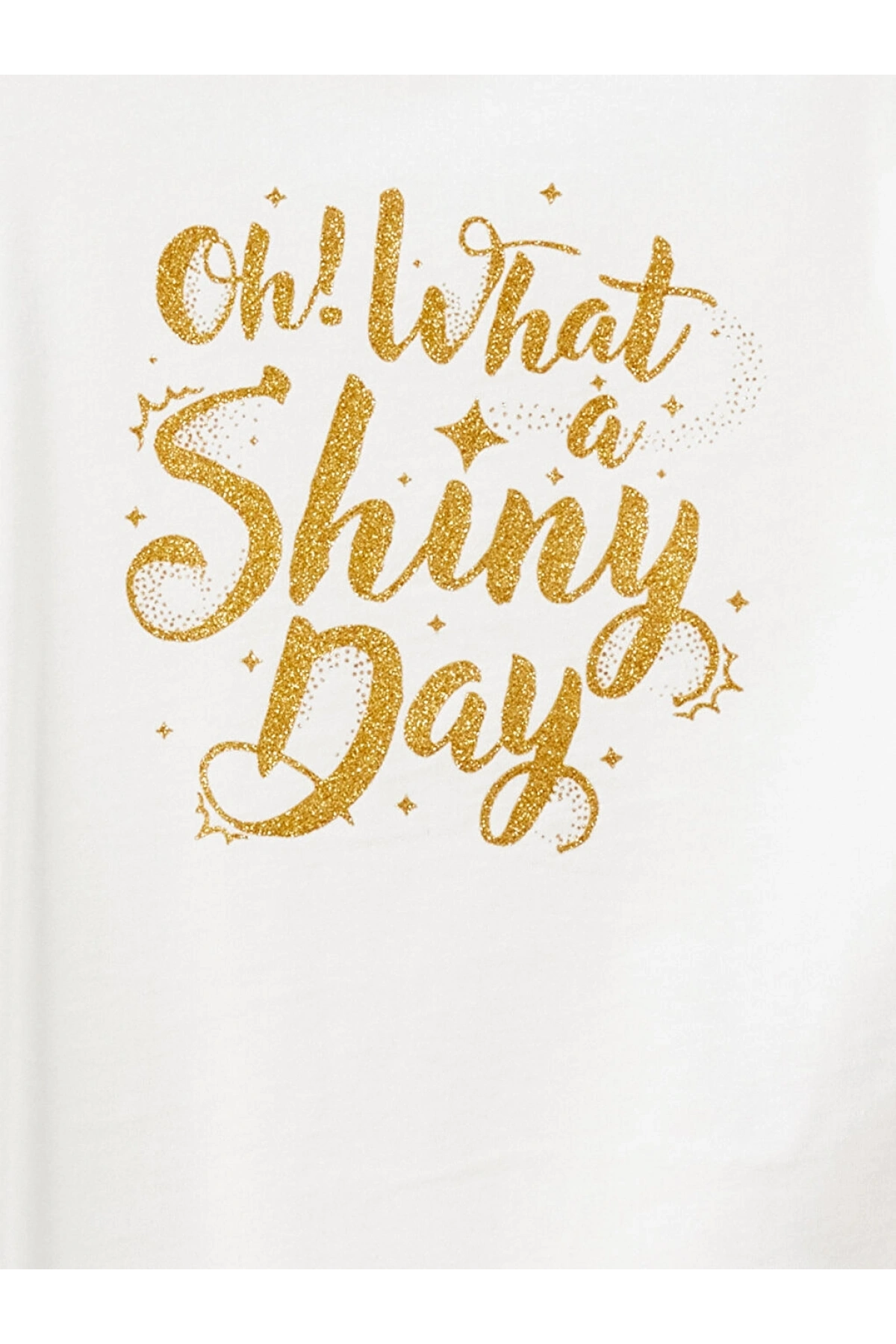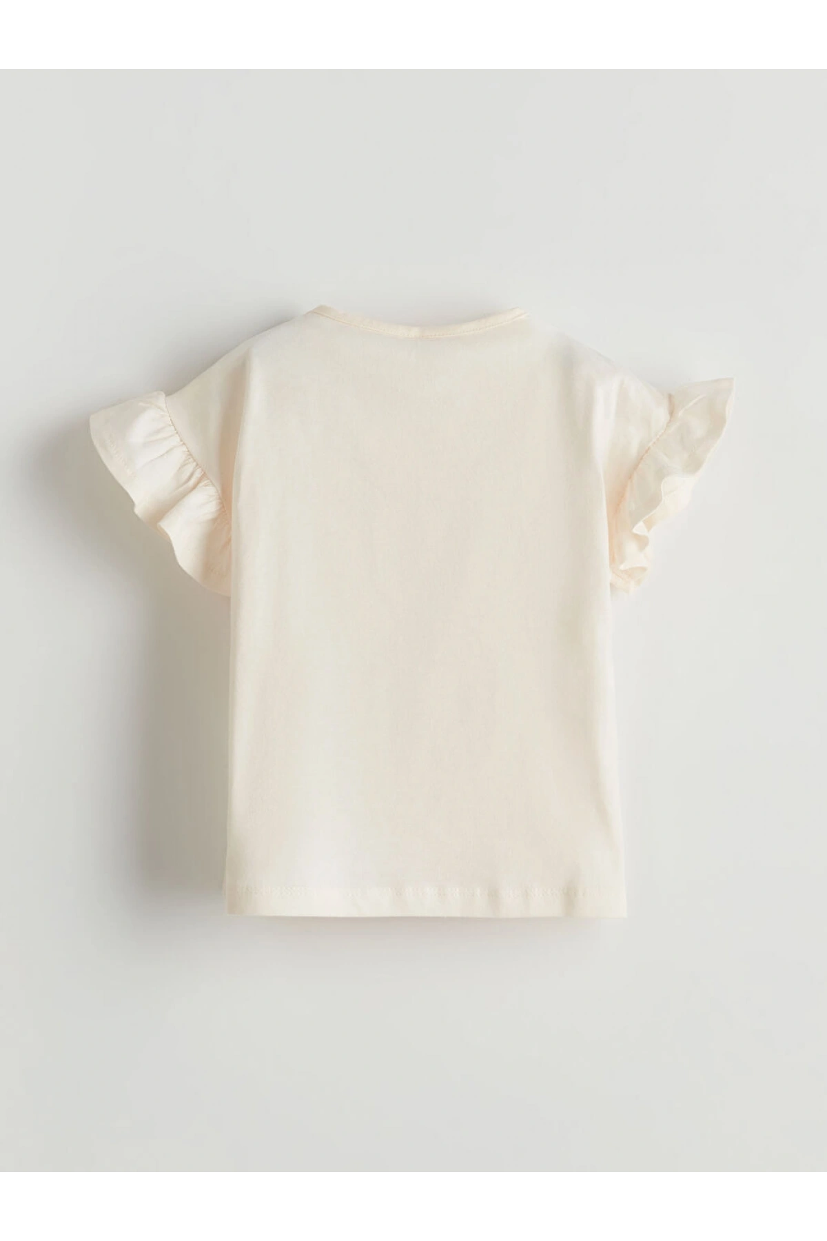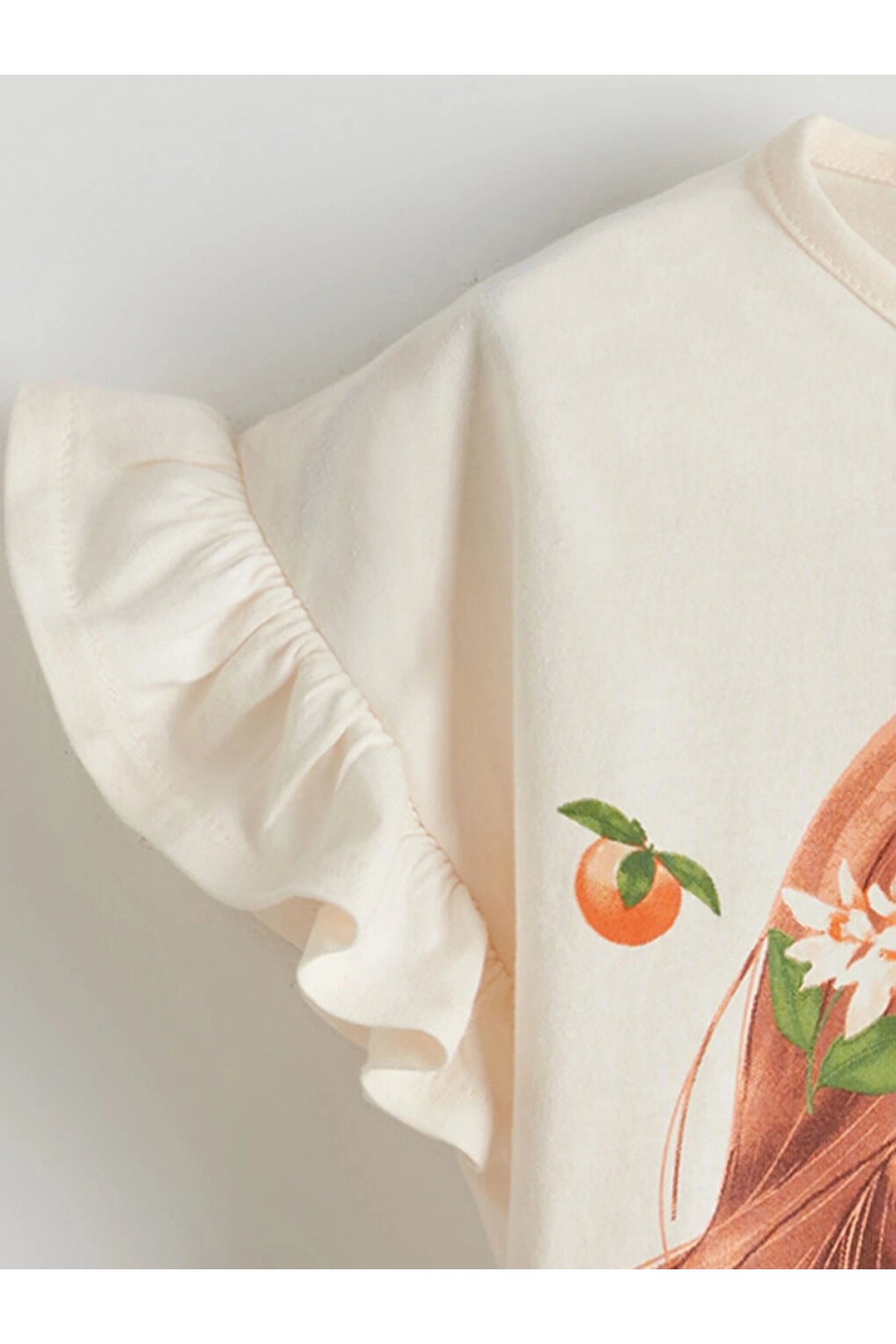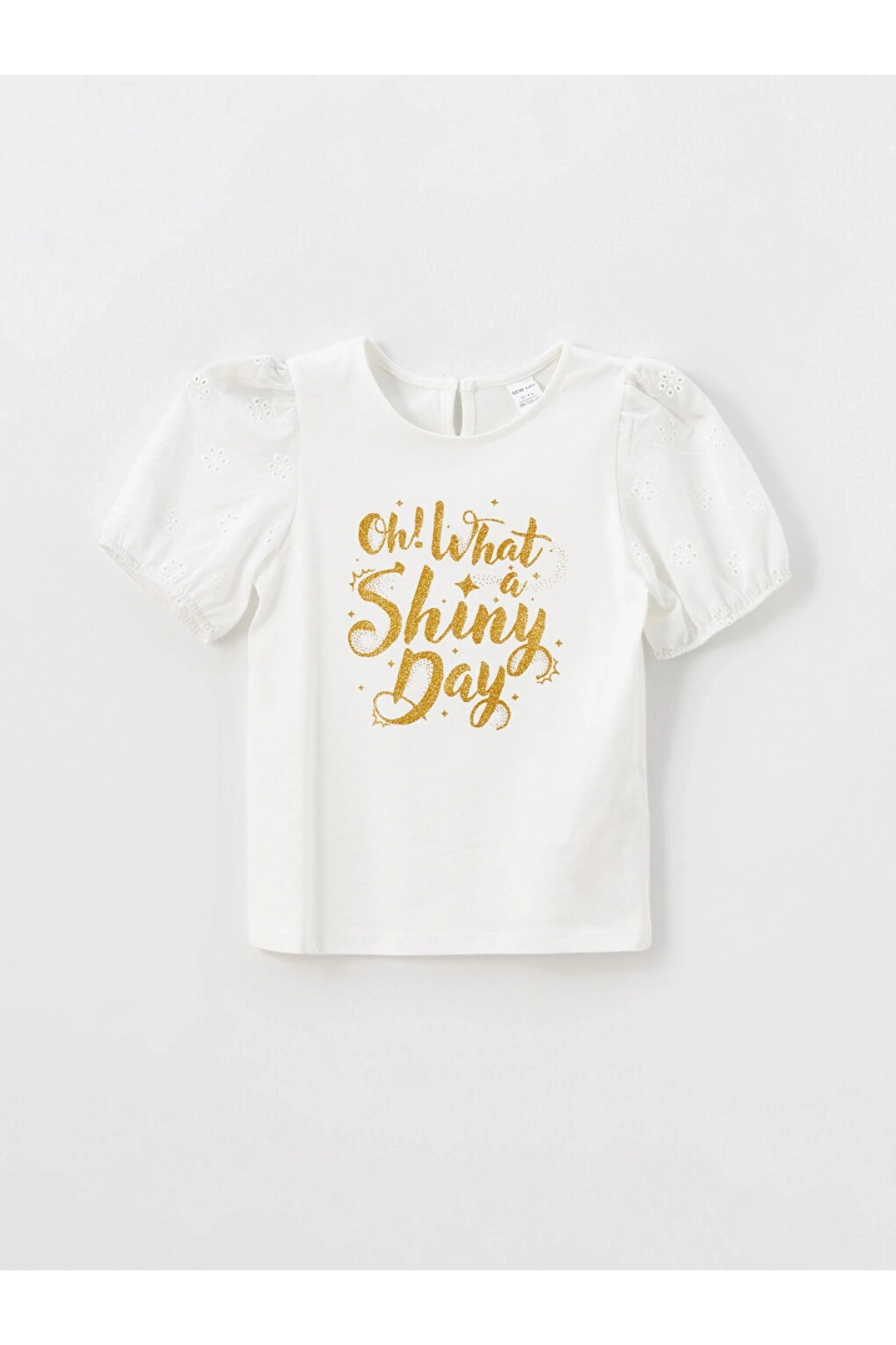 LCW Kids Ekru Bisiklet Yaka Baskılı Kız Çocuk Tişört