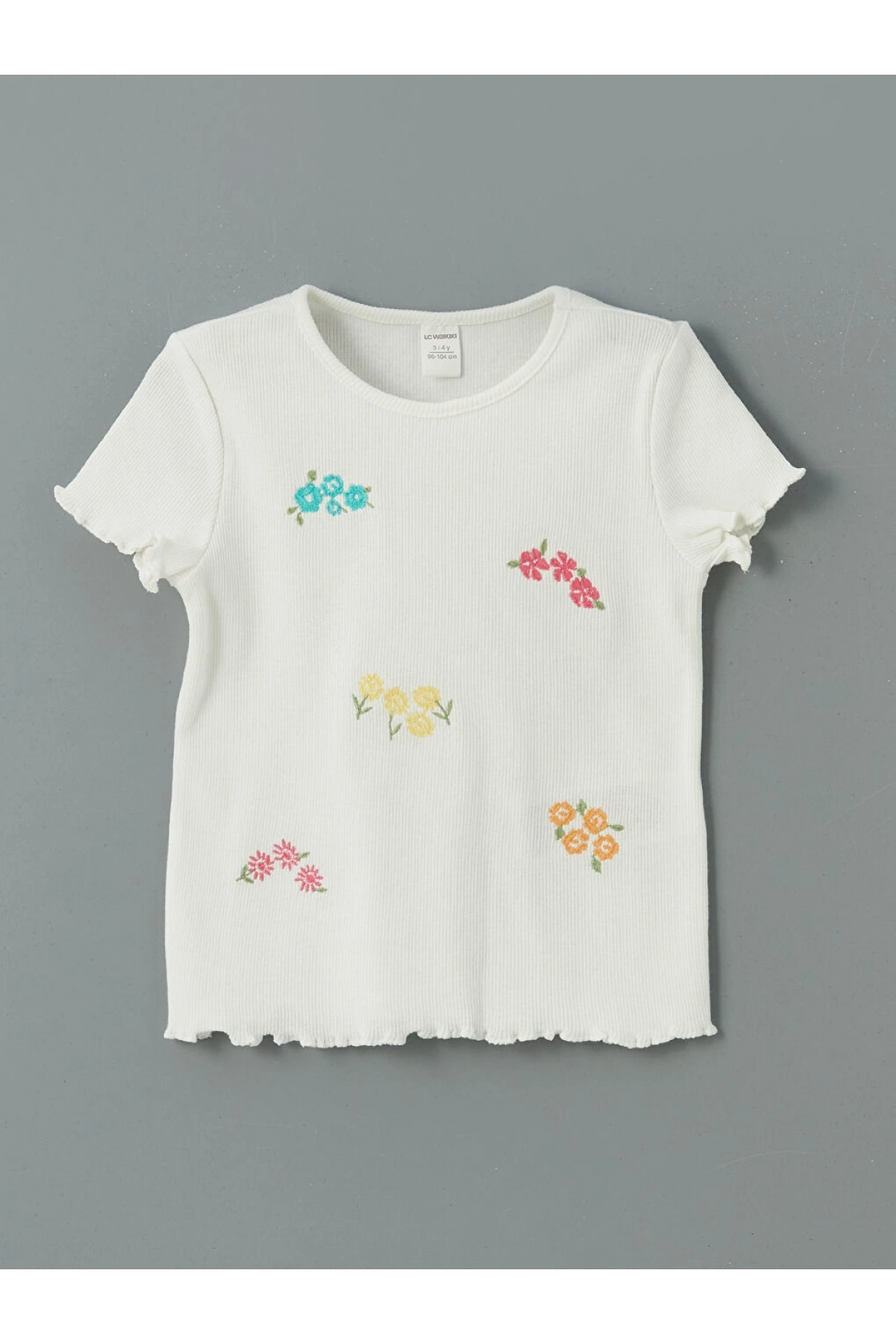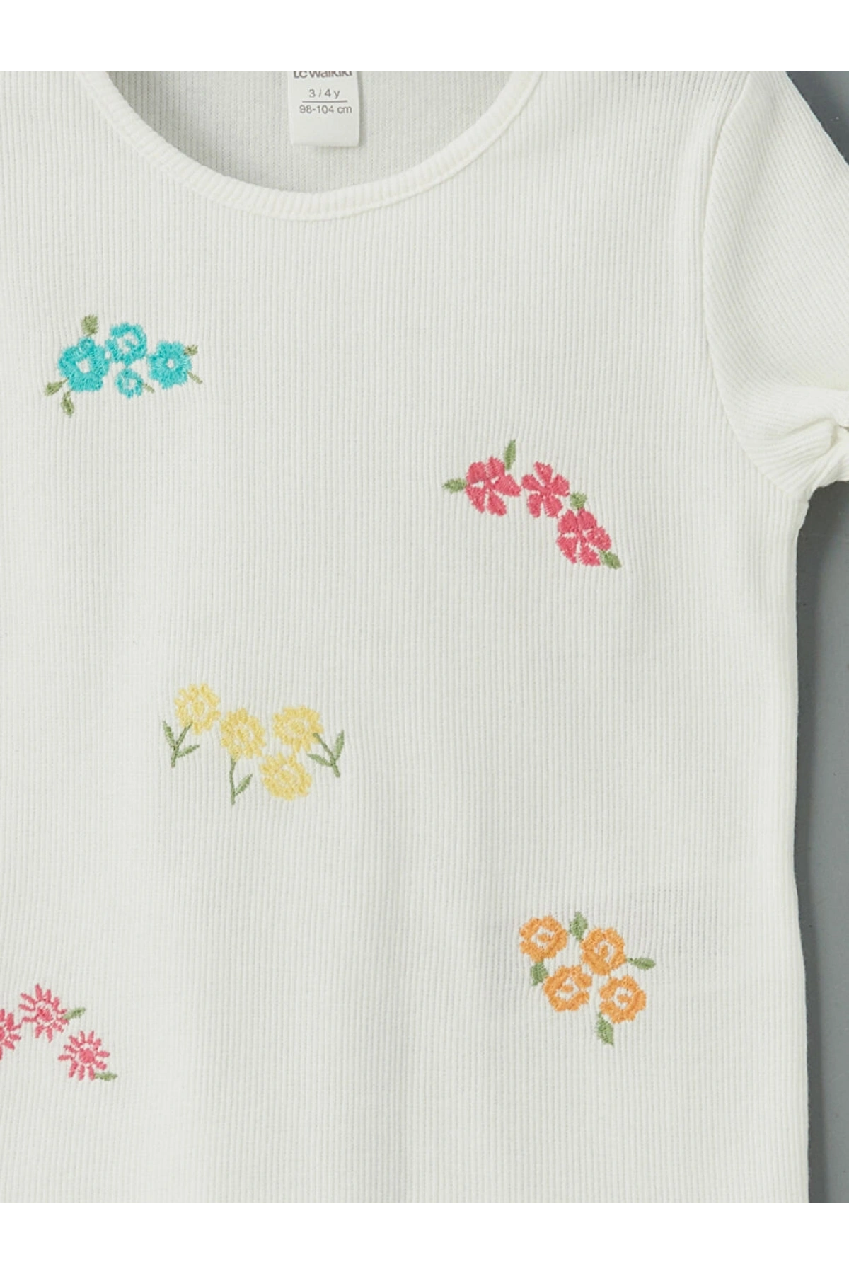 LC Waikiki LCW Kids Bisiklet Yaka Çiçekli Kız Çocuk Tişört