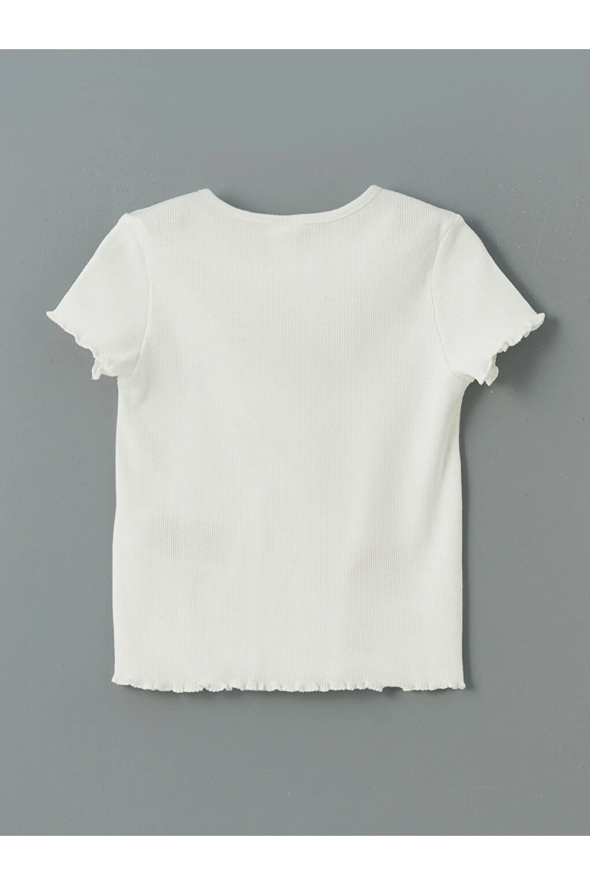 LCW Kids Ekru Bisiklet Yaka Kısa Kollu Basic Kız Çocuk Tişört