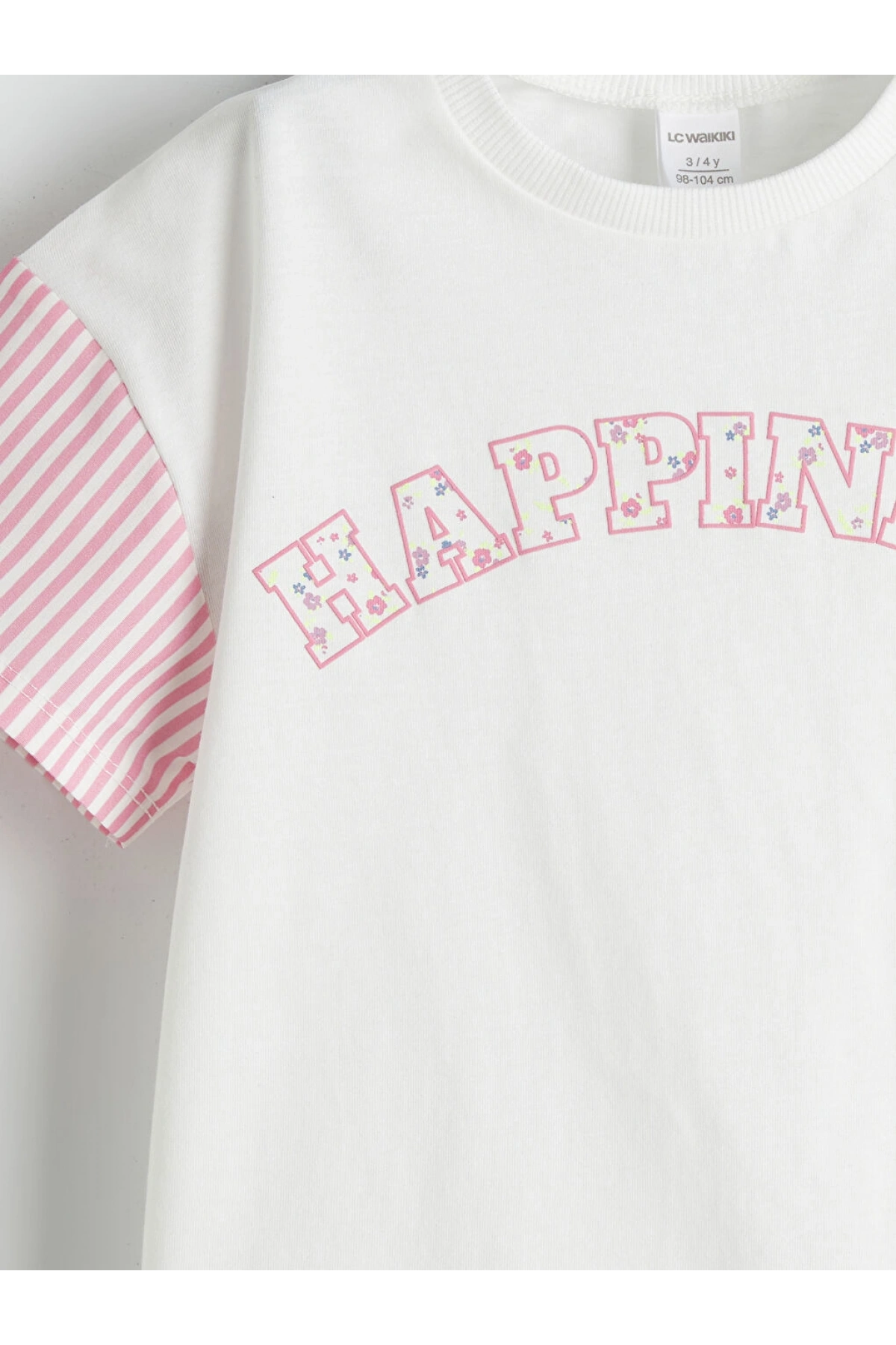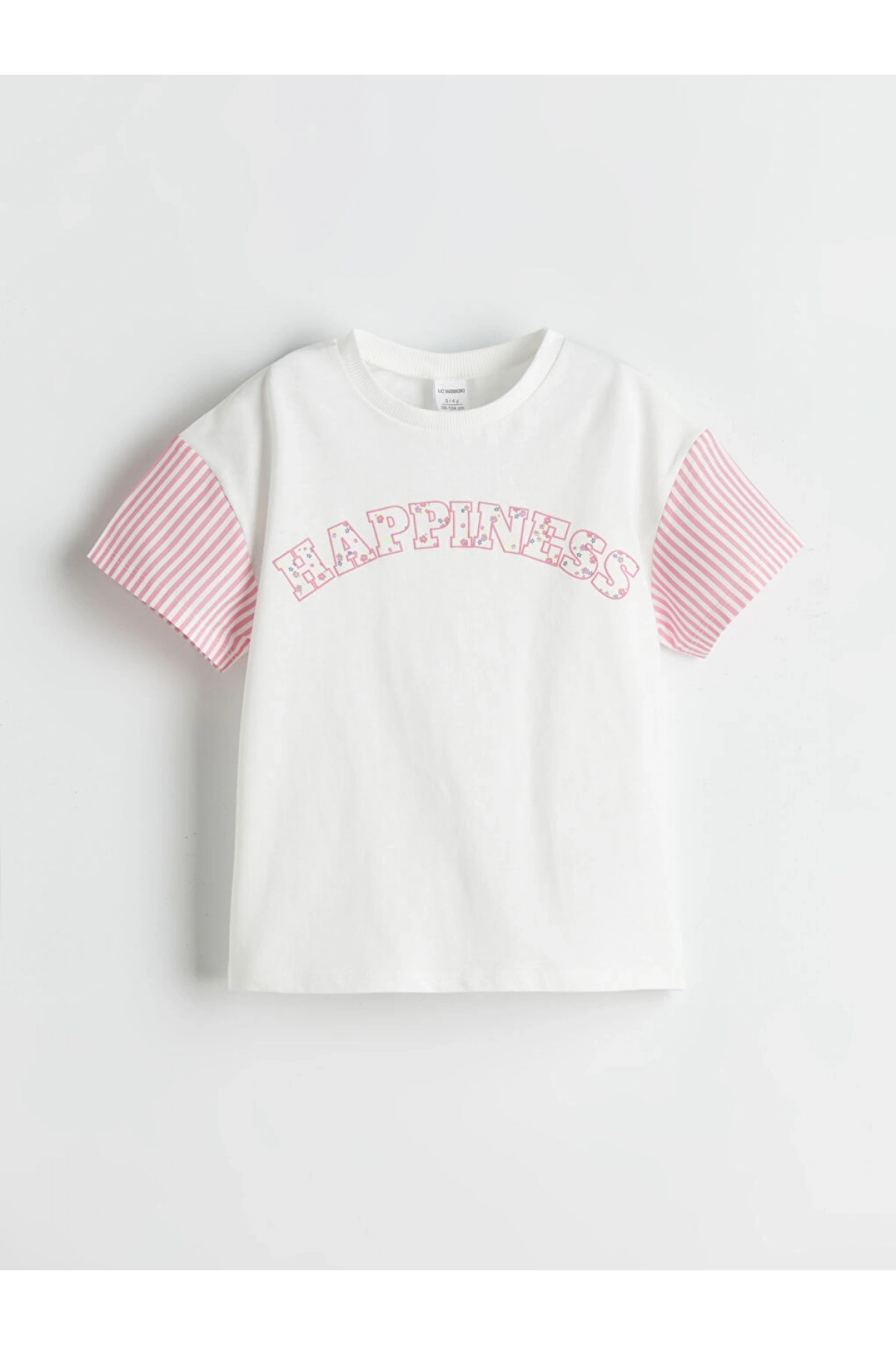 LC Waikiki Bisiklet Yaka Kısa Kollu Baskılı Kız Bebek Tişört