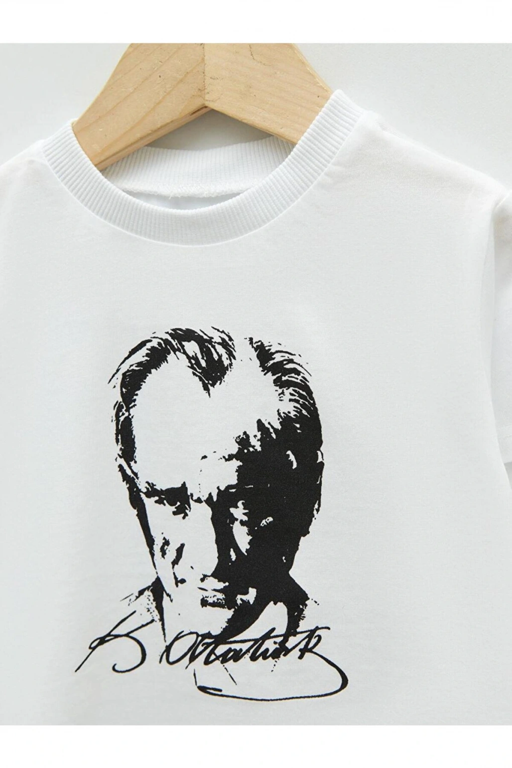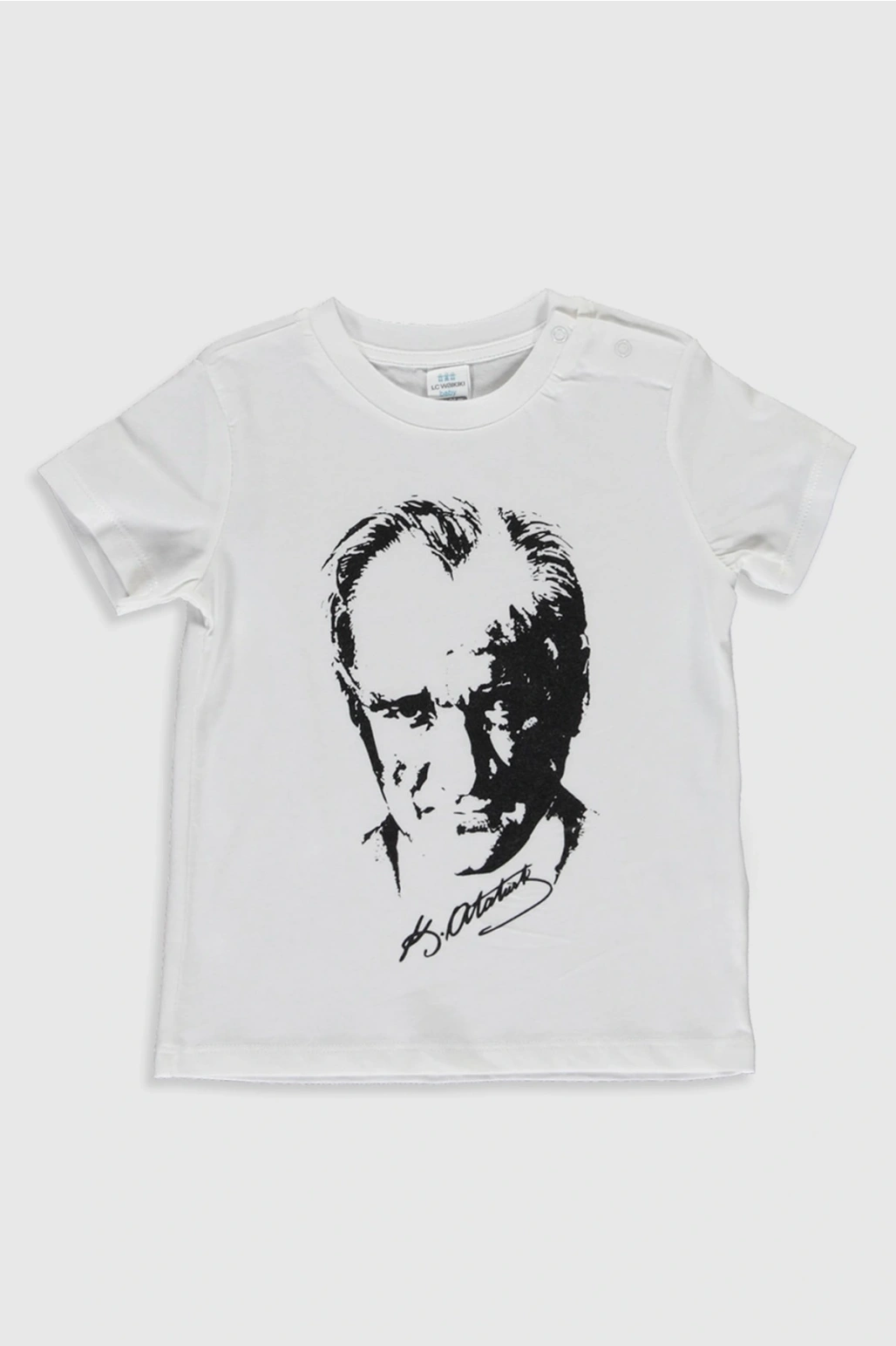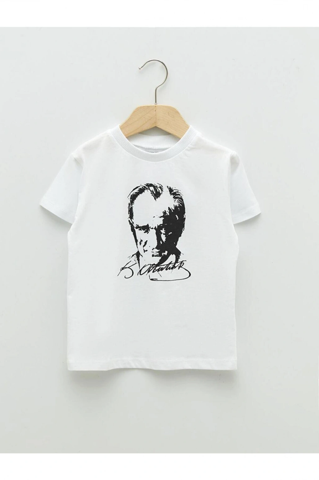 Bisiklet Yaka Kısa Kollu Atatürk Baskılı Pamuklu Erkek Bebek Tişört (S2)