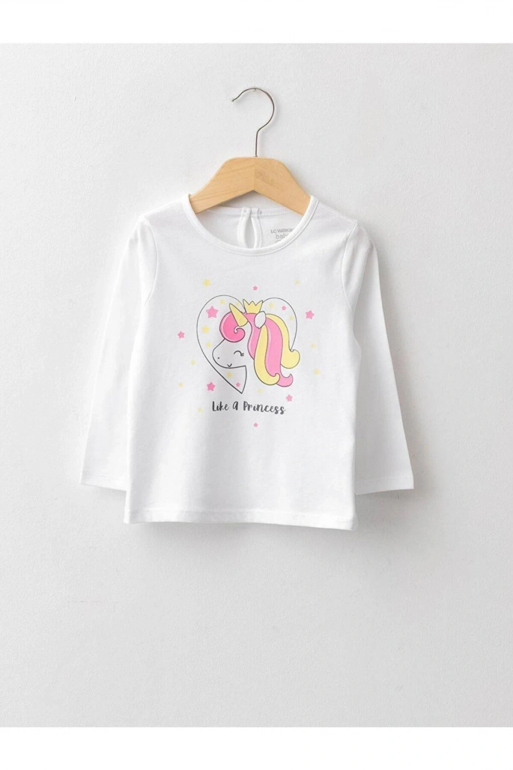 LCW baby Bisiklet Yaka Uzun Kol Baskılı Pamuklu Kız Bebek Tişört