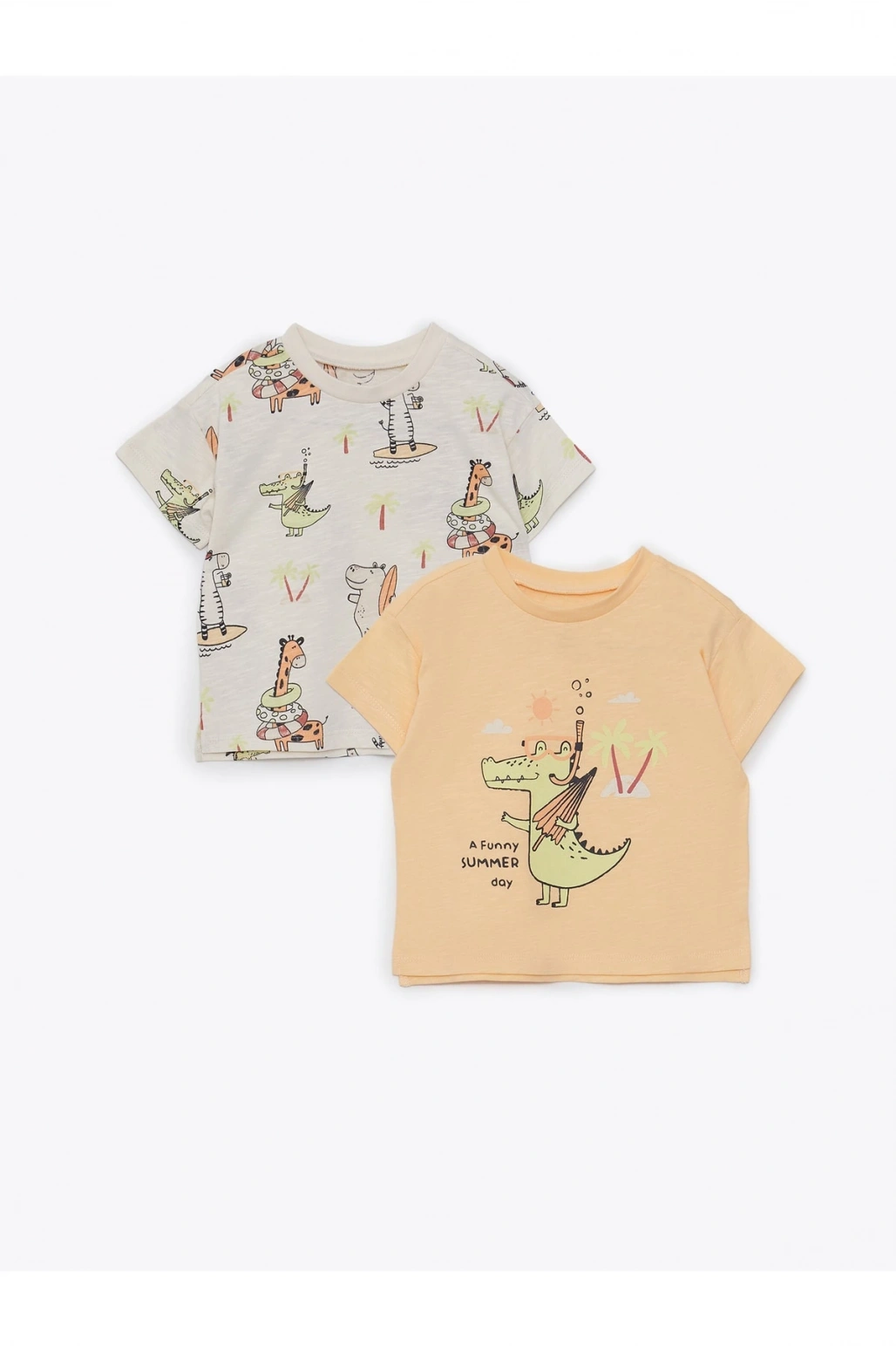Bisiklet Yaka Kısa Kollu Baskılı Pamuklu Erkek Bebek Tişört 2'li