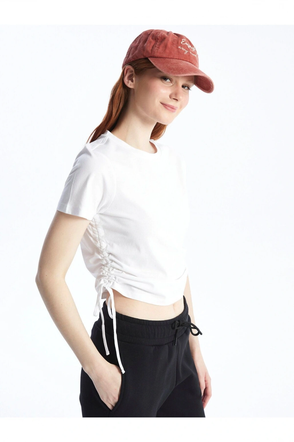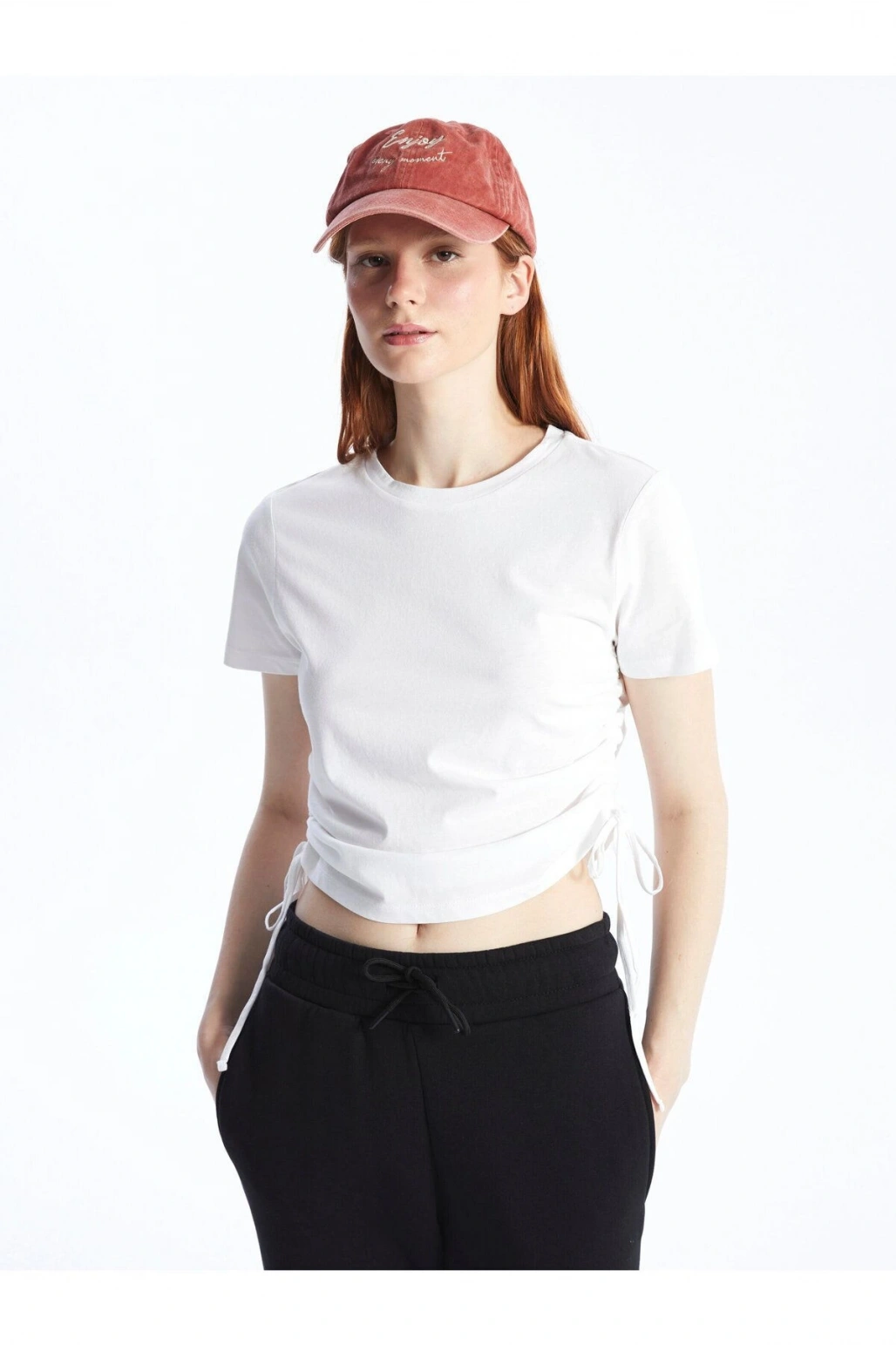 Bisiklet Yaka Düz Kısa Kollu Kadın Tişört