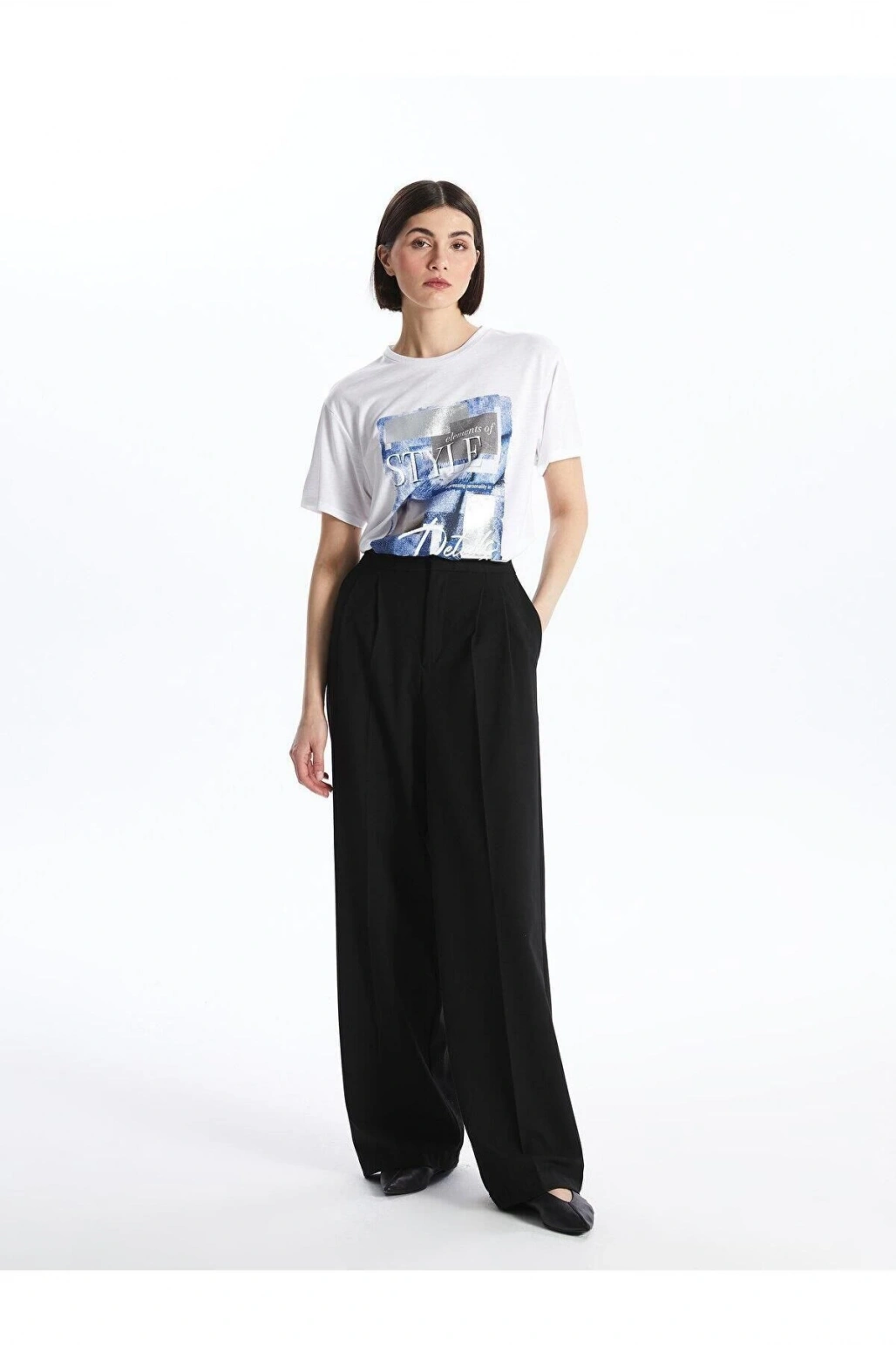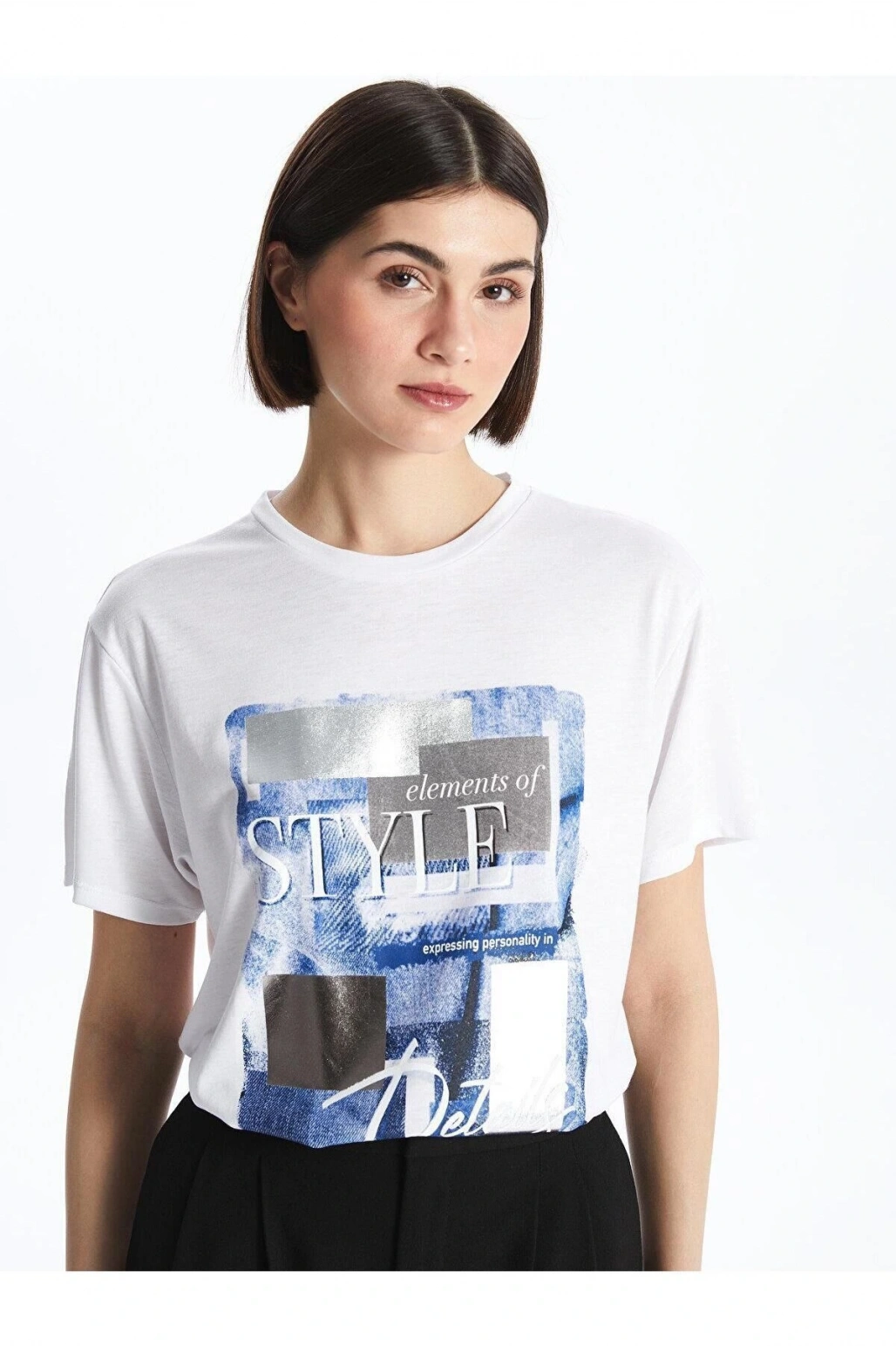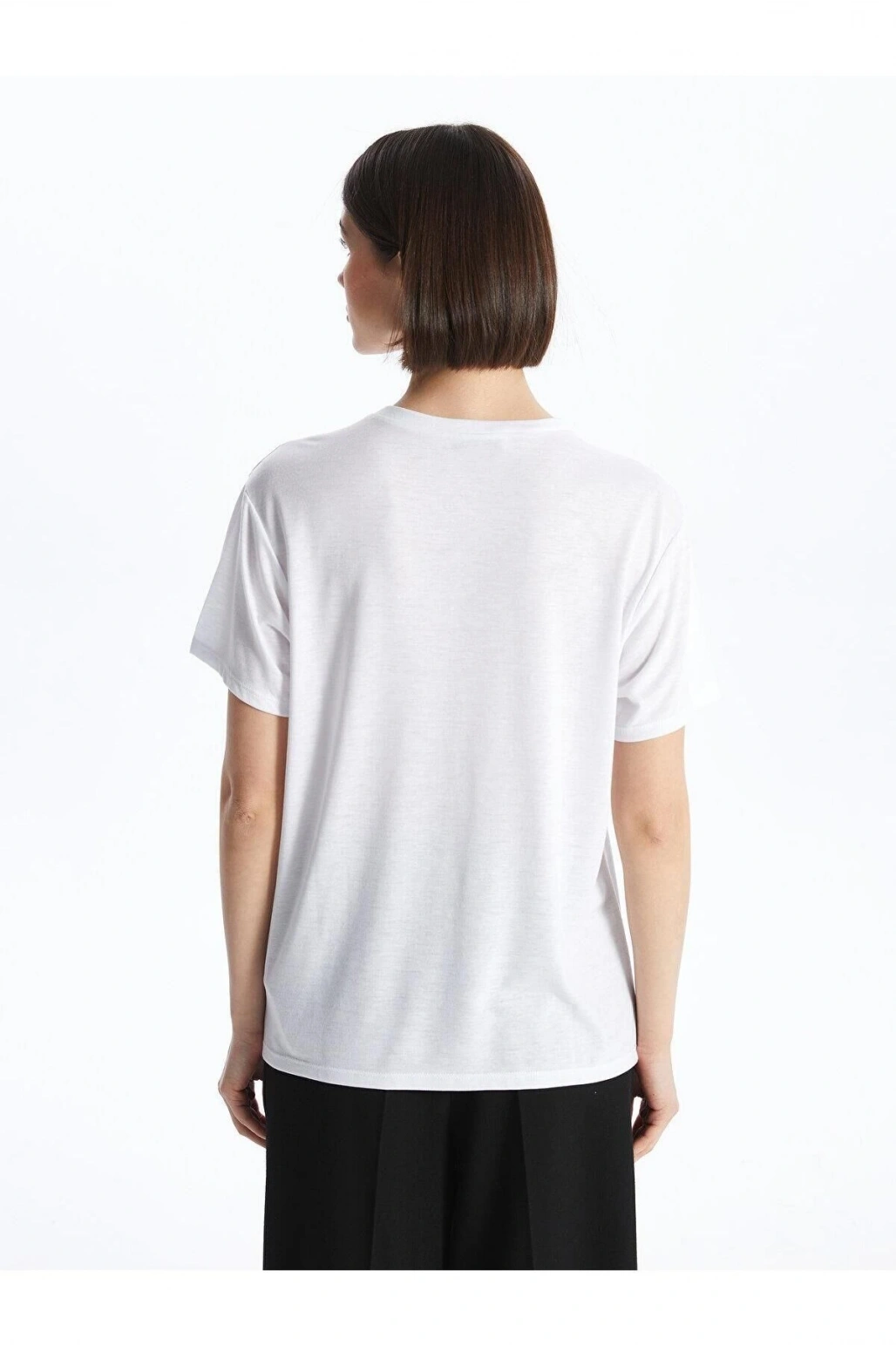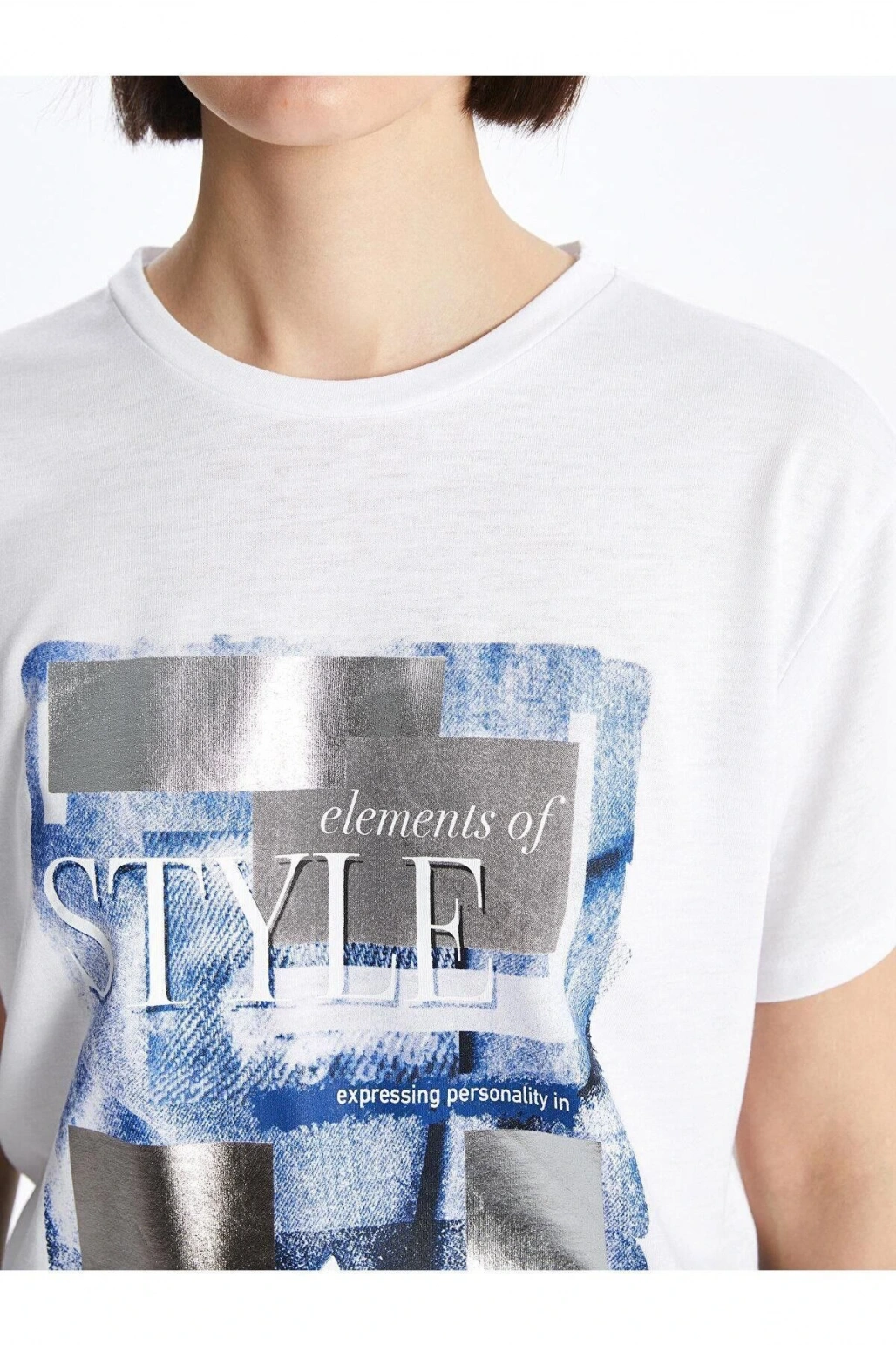 LCW Vision Bisiklet Yaka Baskılı Kısa Kollu Kadın Tişört