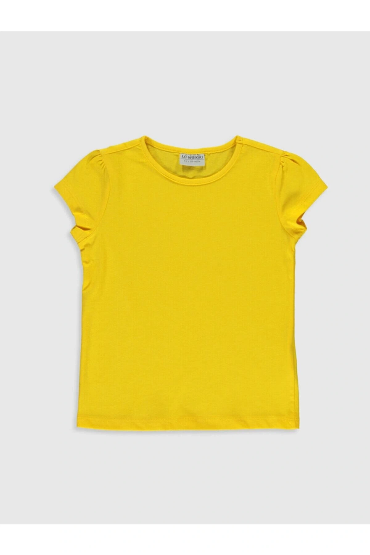 Kolları Volanlı Tişört Bisiklet Yaka Pamuklu