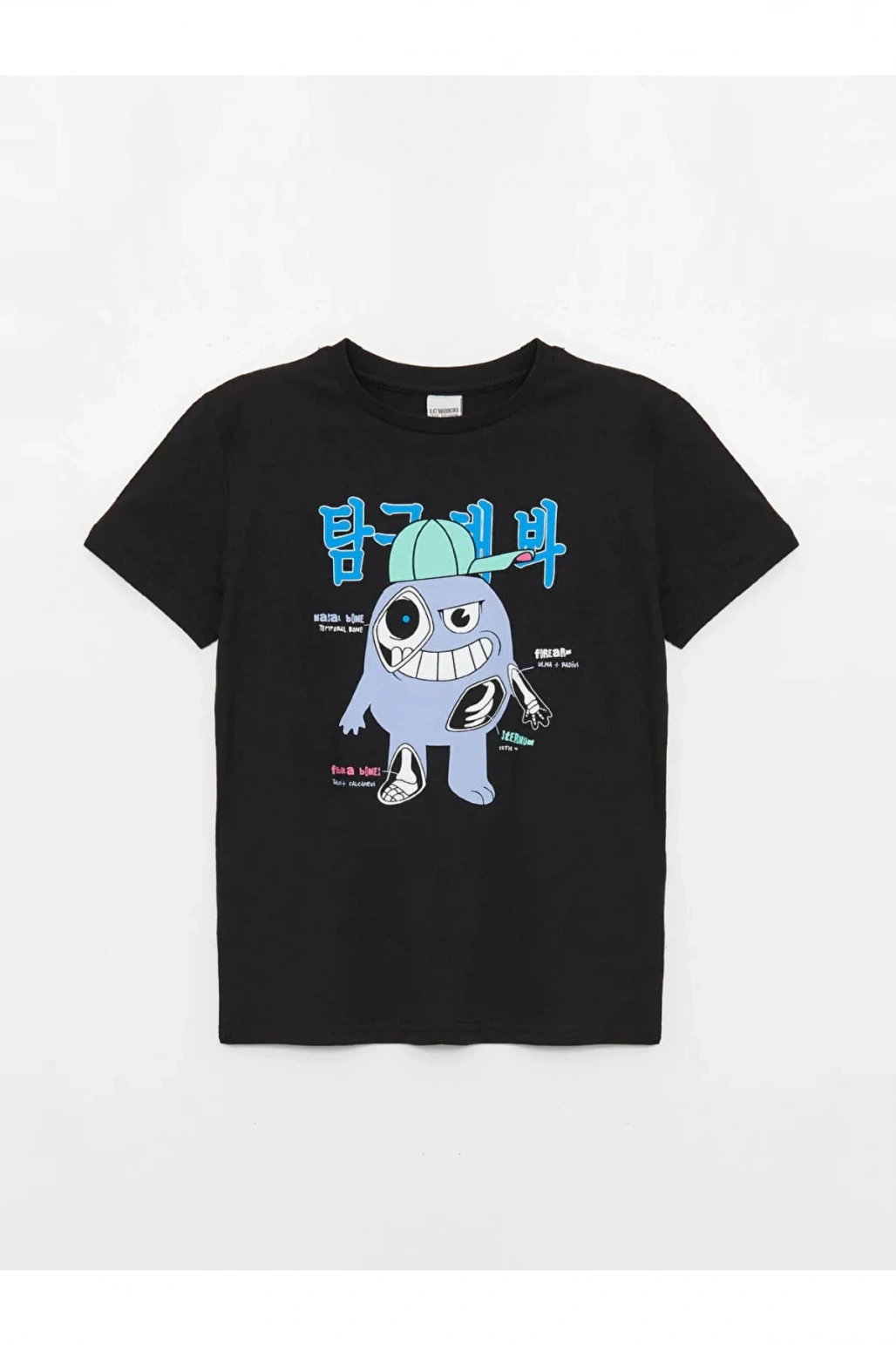 Bisiklet Yaka Baskılı Kısa Kollu Erkek Çocuk Tişört