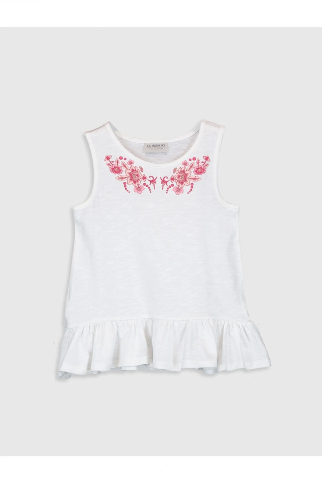 Baskılı Crop Tişört Fırfır Detaylı Pamuklu
