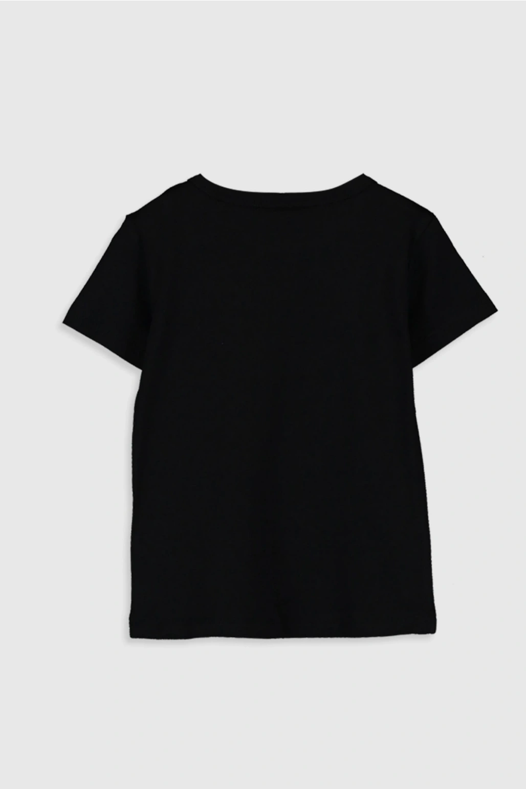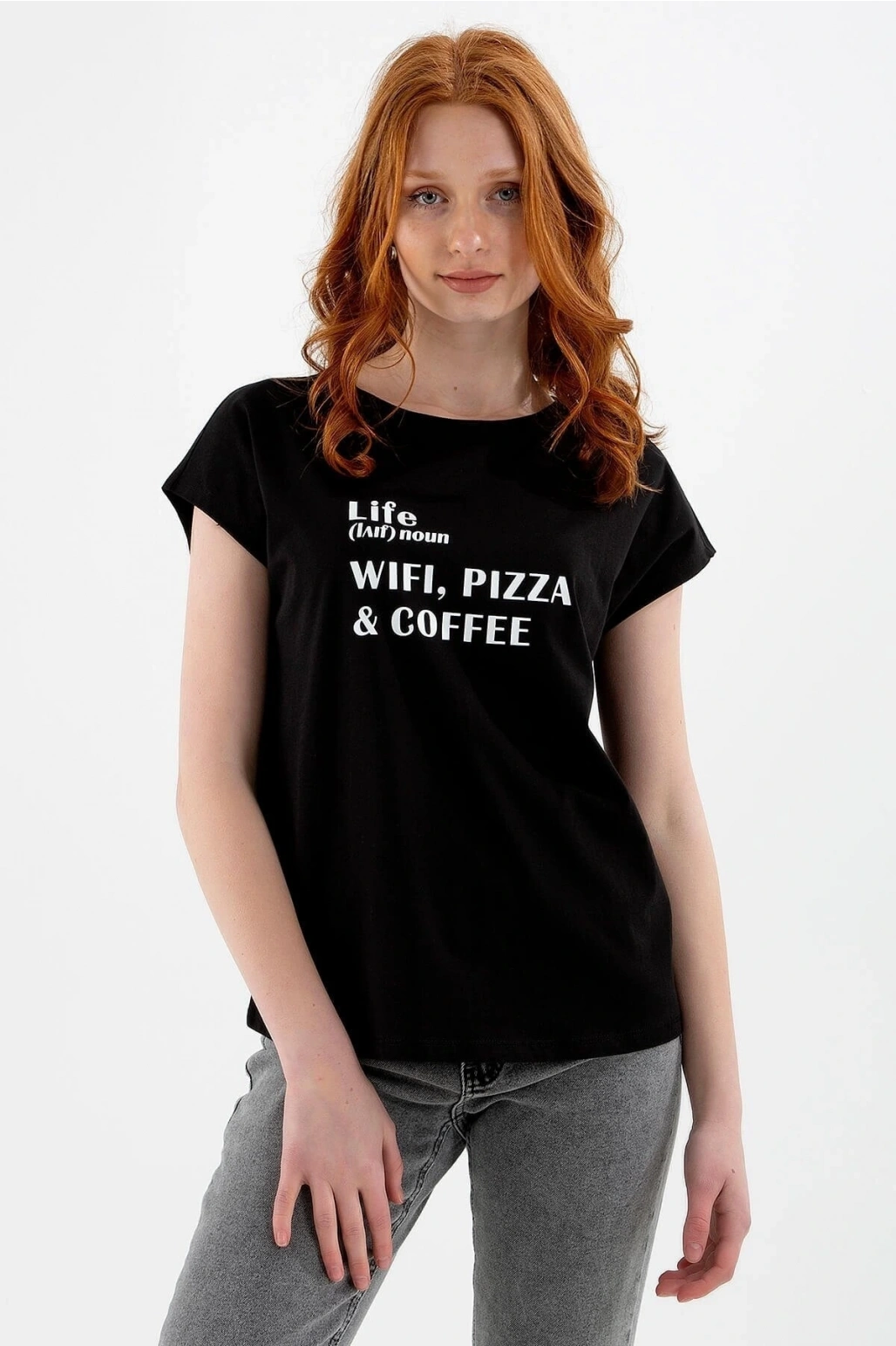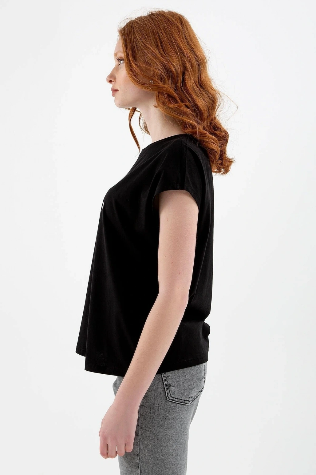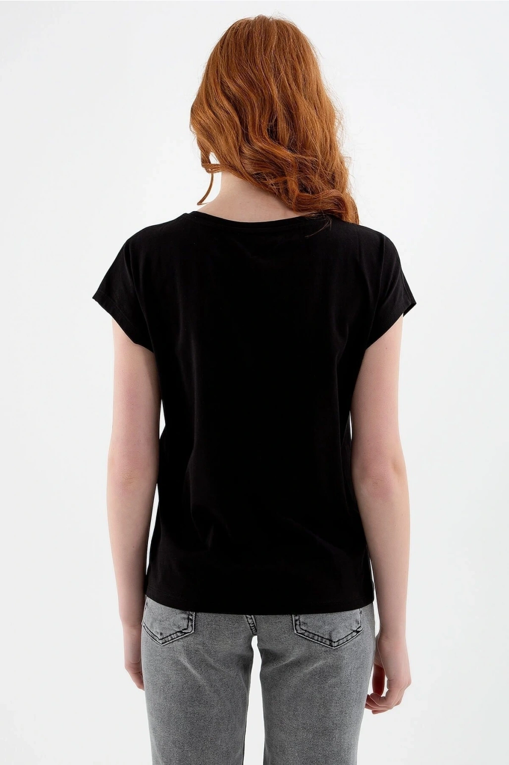 22y0078k1 Bisiklet Yaka Normal Kalıp Baskılı Siyah Kadın T-shirt