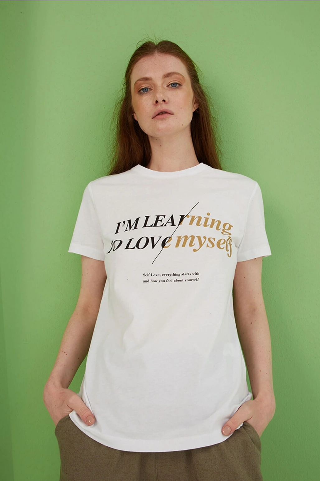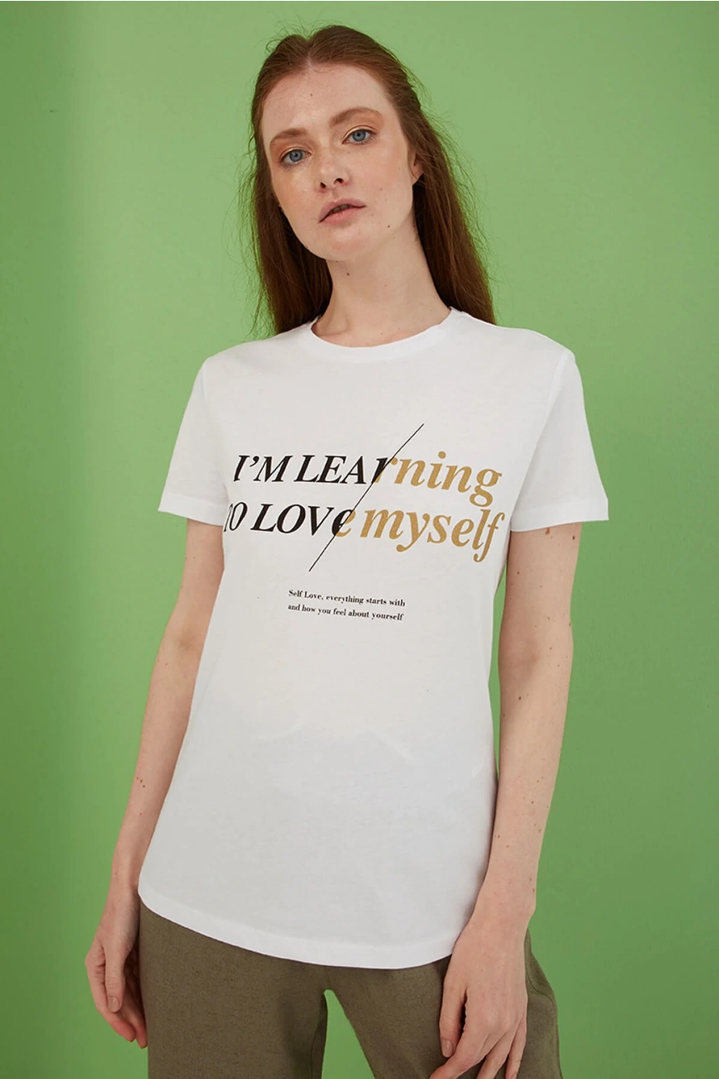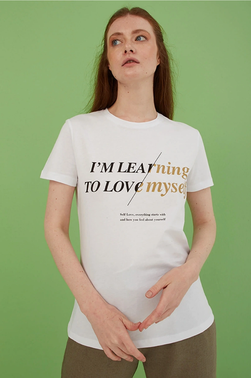 Bisiklet Yaka Kısa Kollu Baskılı Tişört