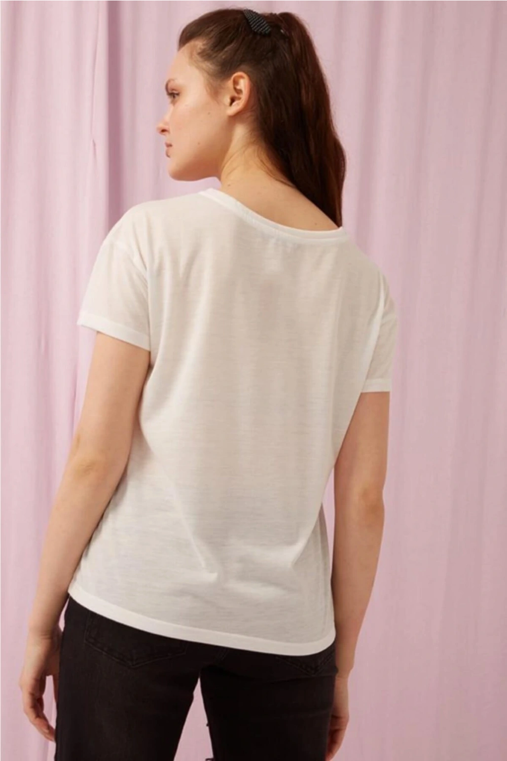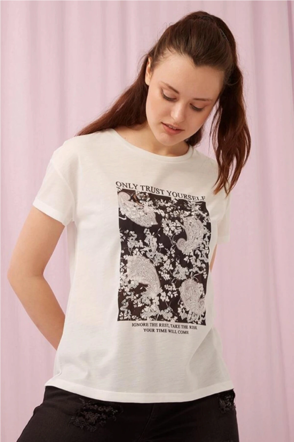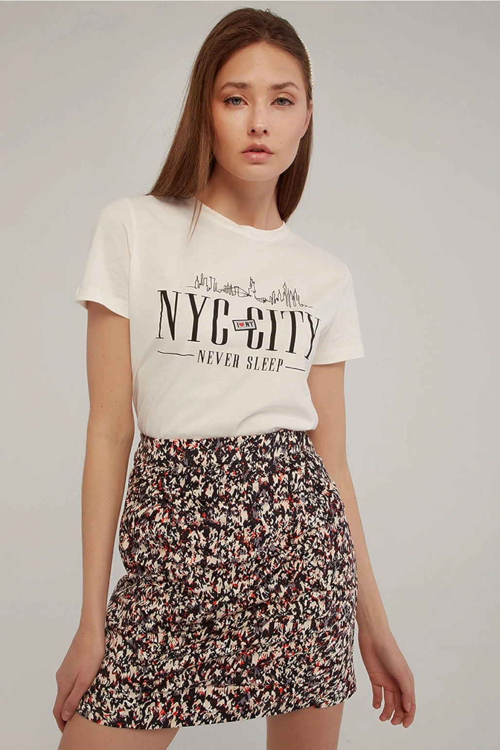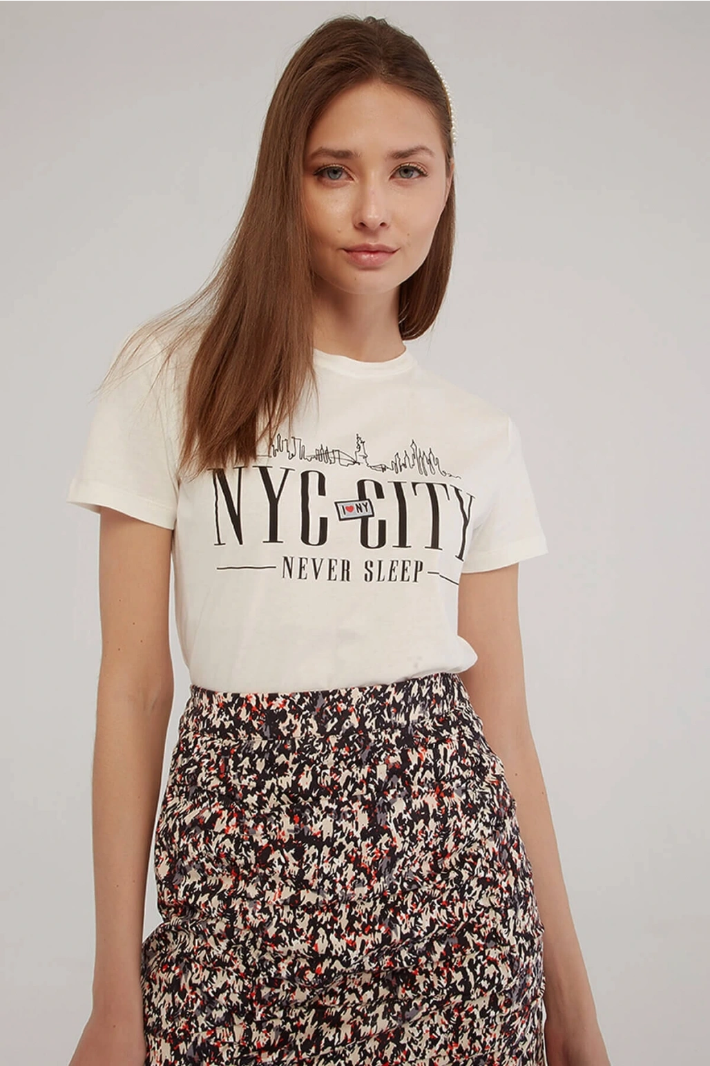 Baskılı T-shirt Ekru