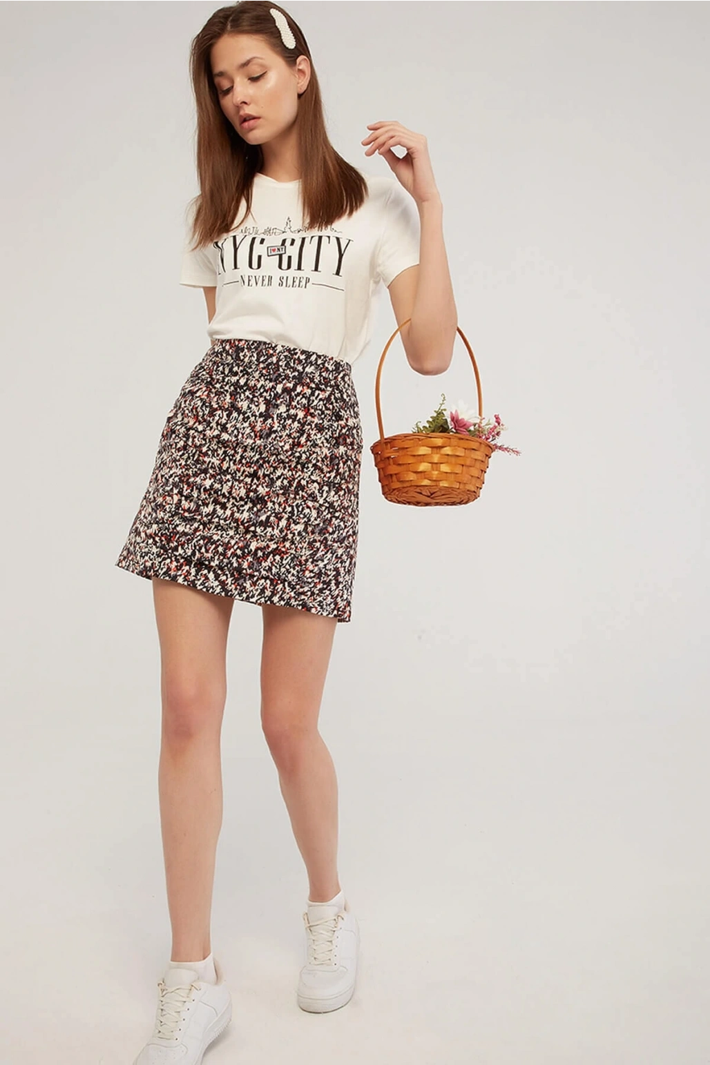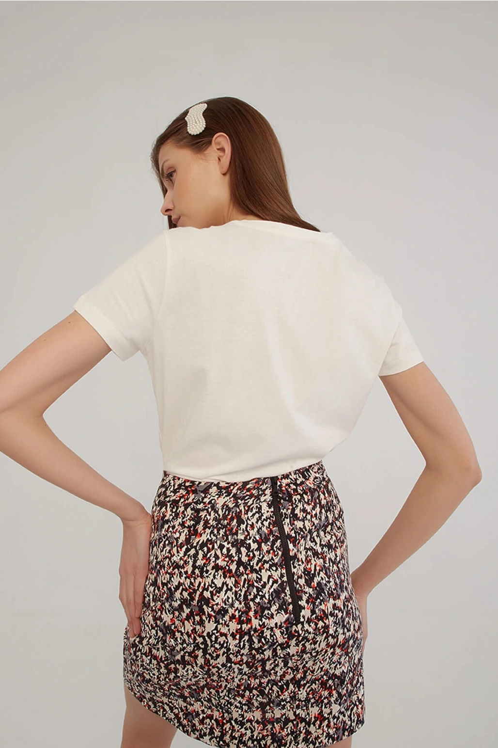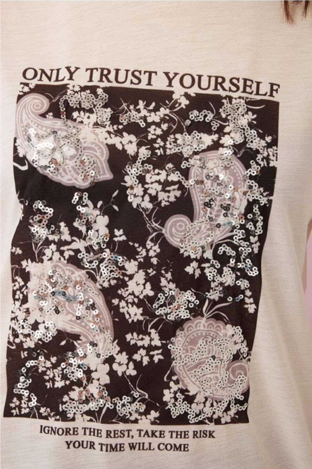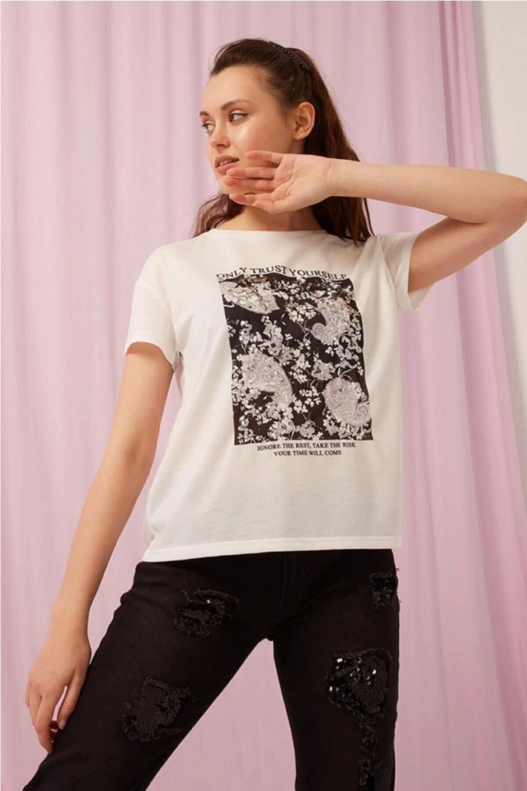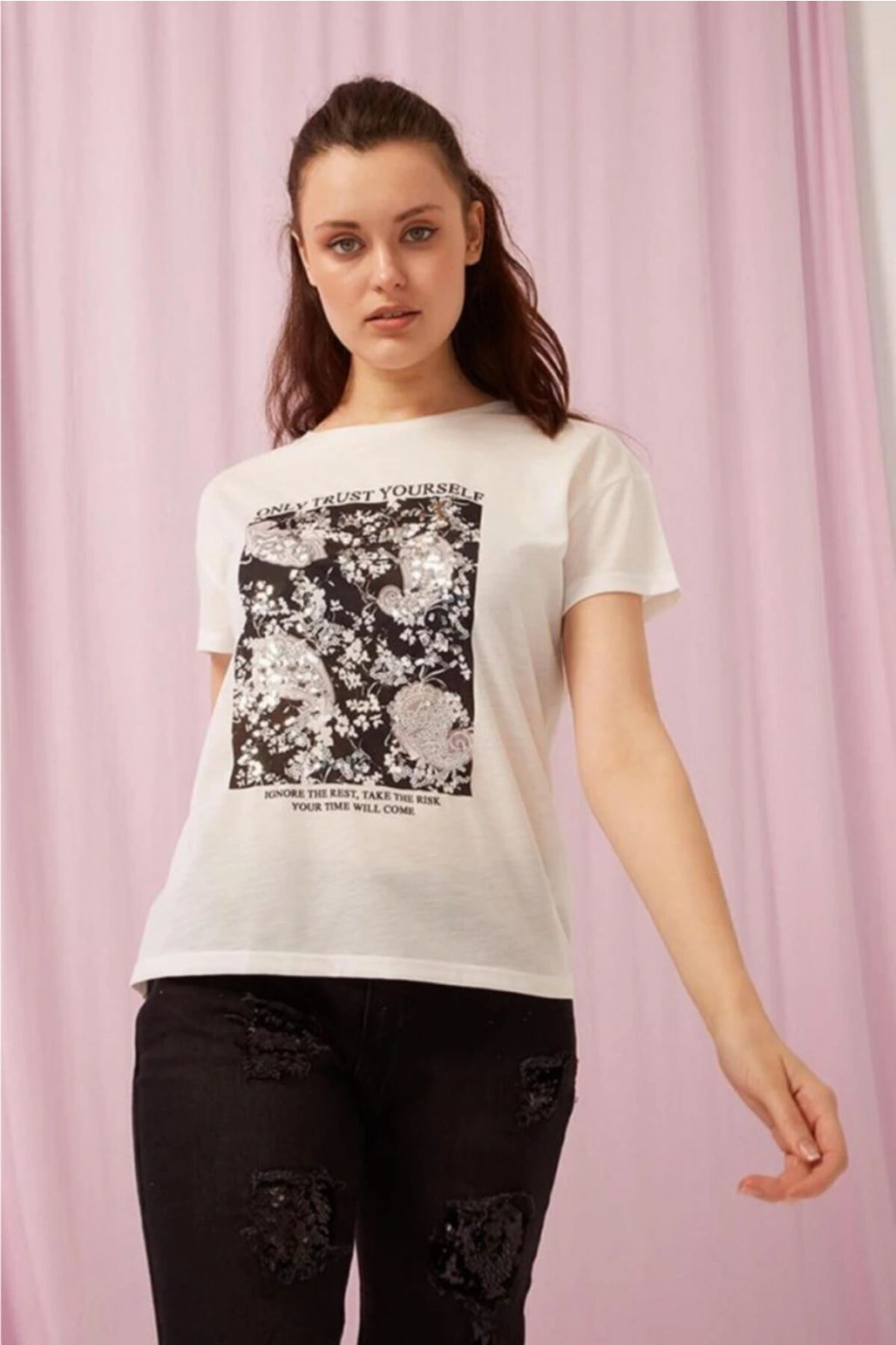 Baskılı T-shirt Ekru