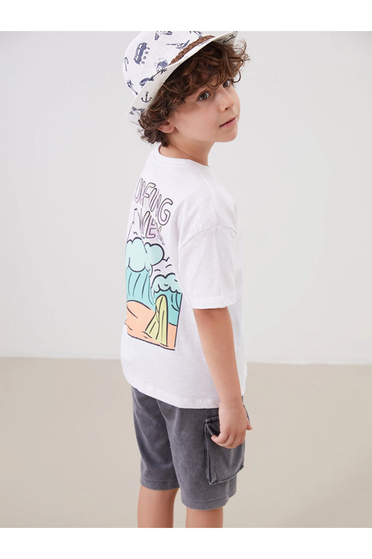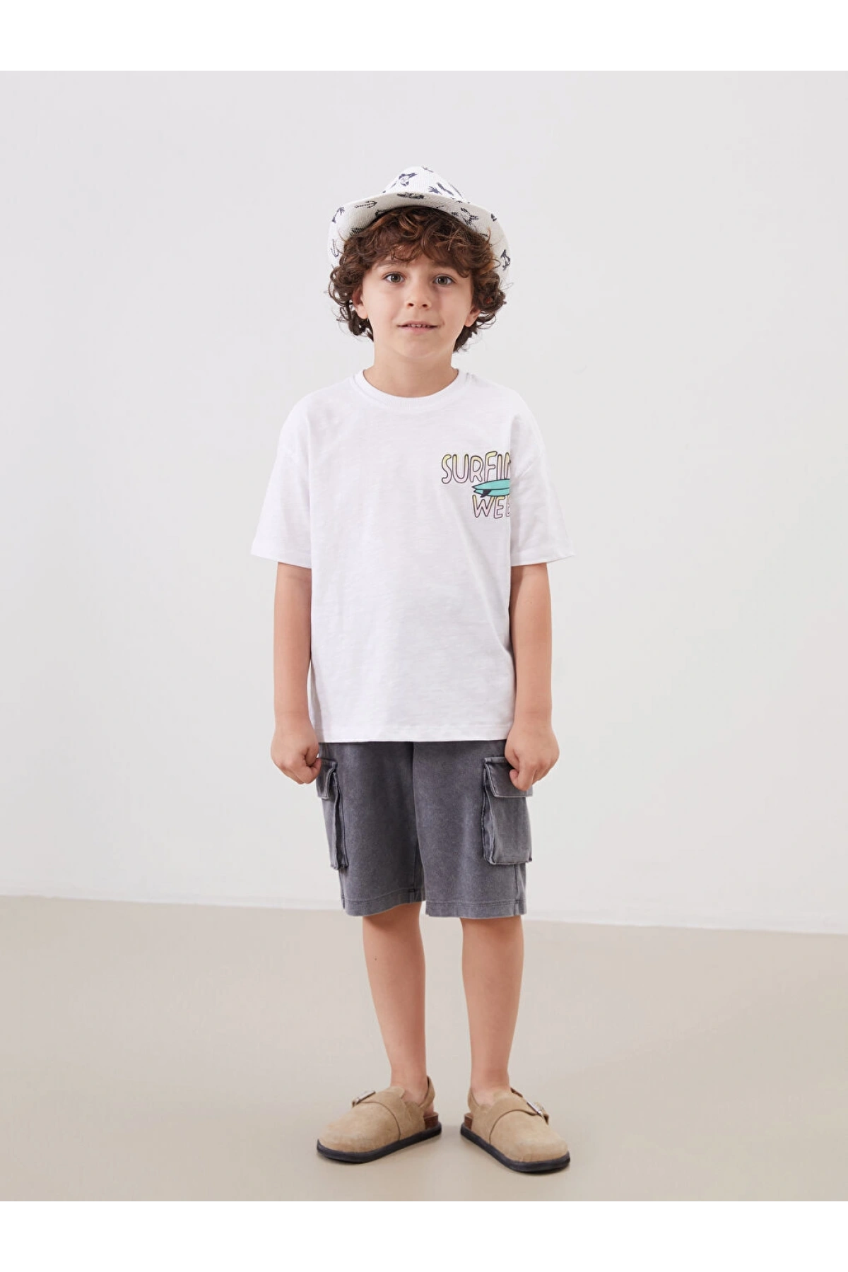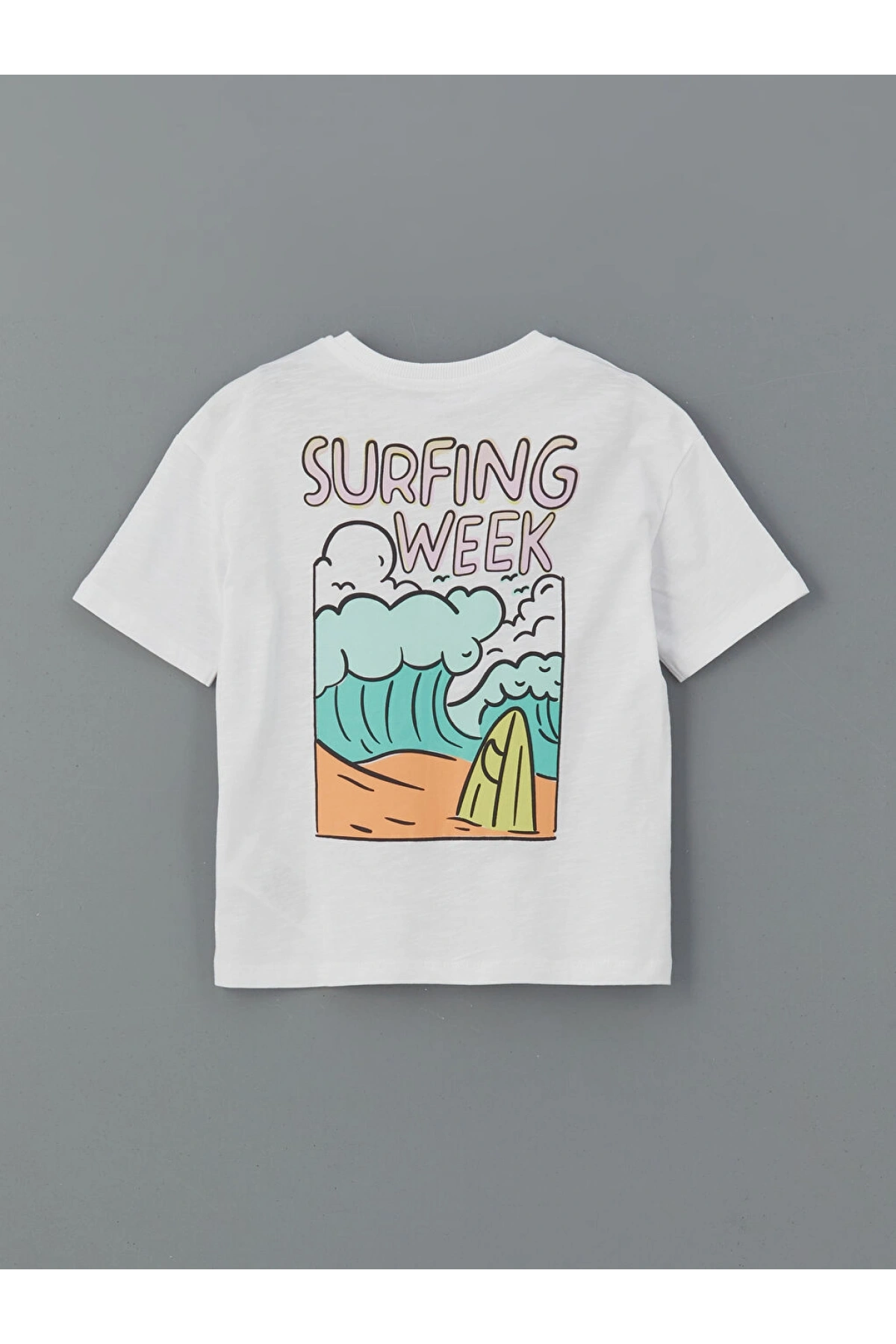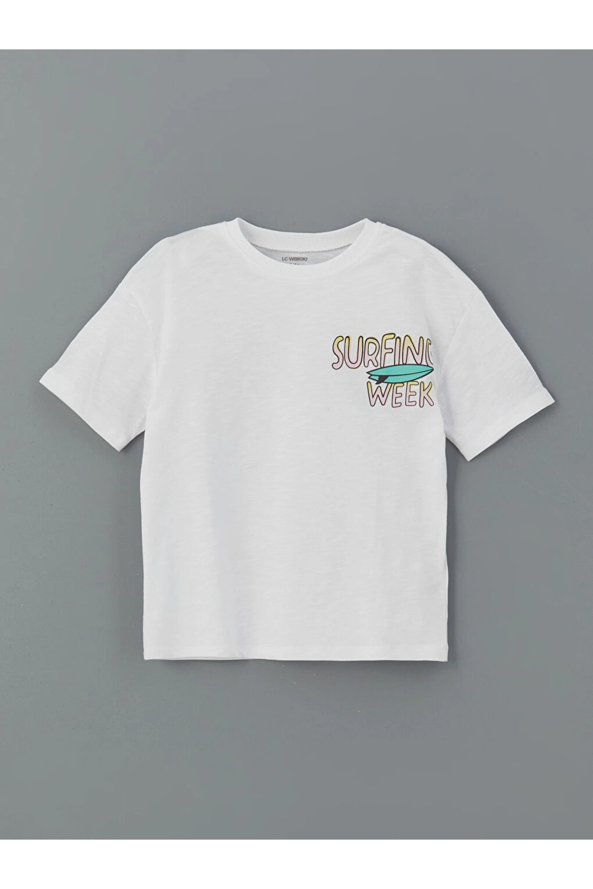 LCW Kids Beyaz Bisiklet Yaka Baskılı Erkek Çocuk Tişört