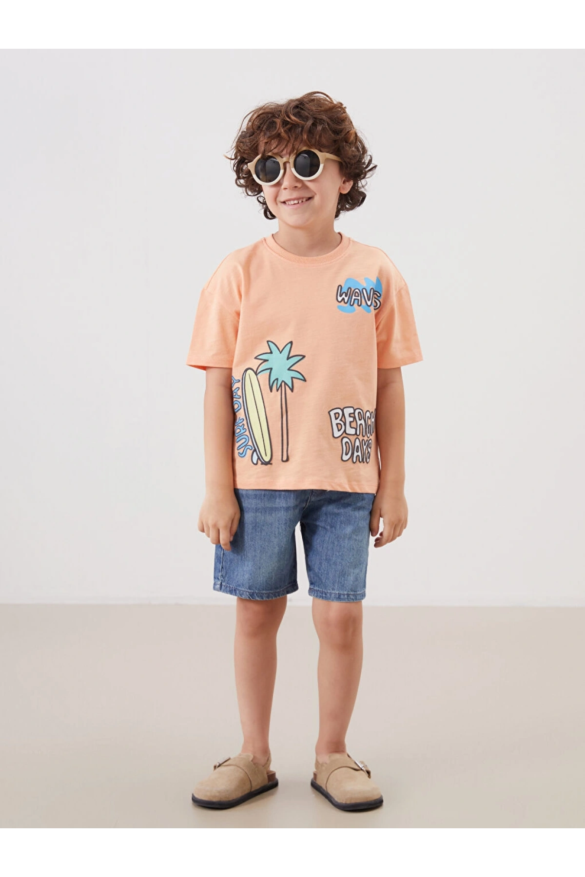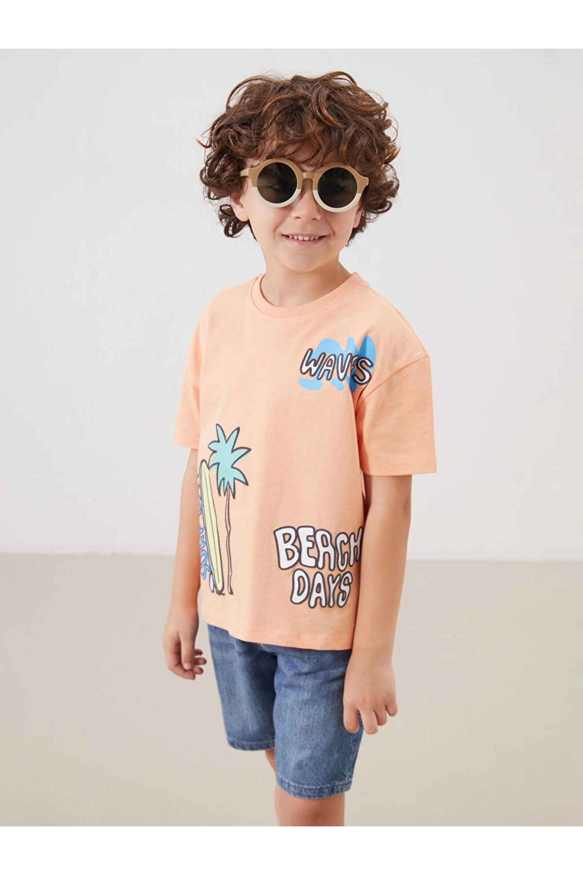 LCW Kids Turuncu Bisiklet Yaka Erkek Çocuk Tişört