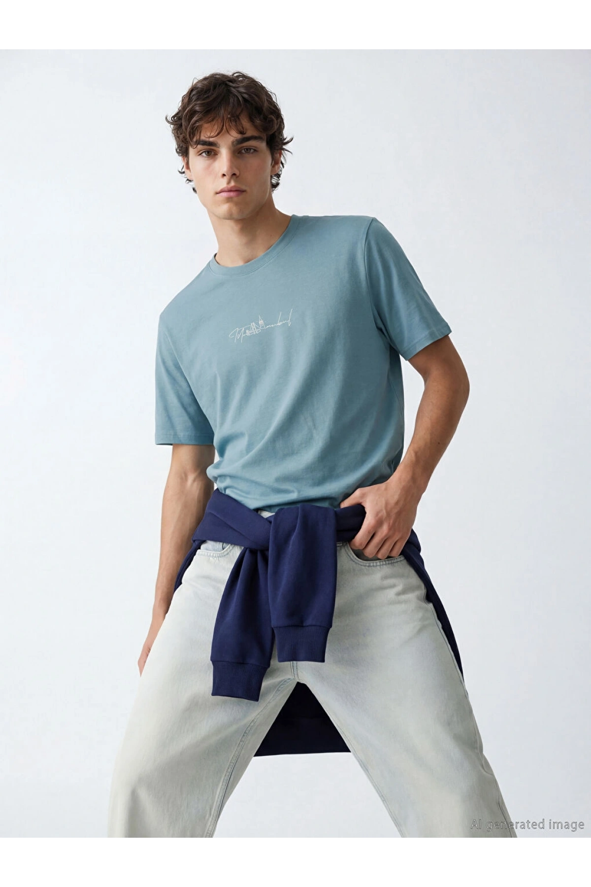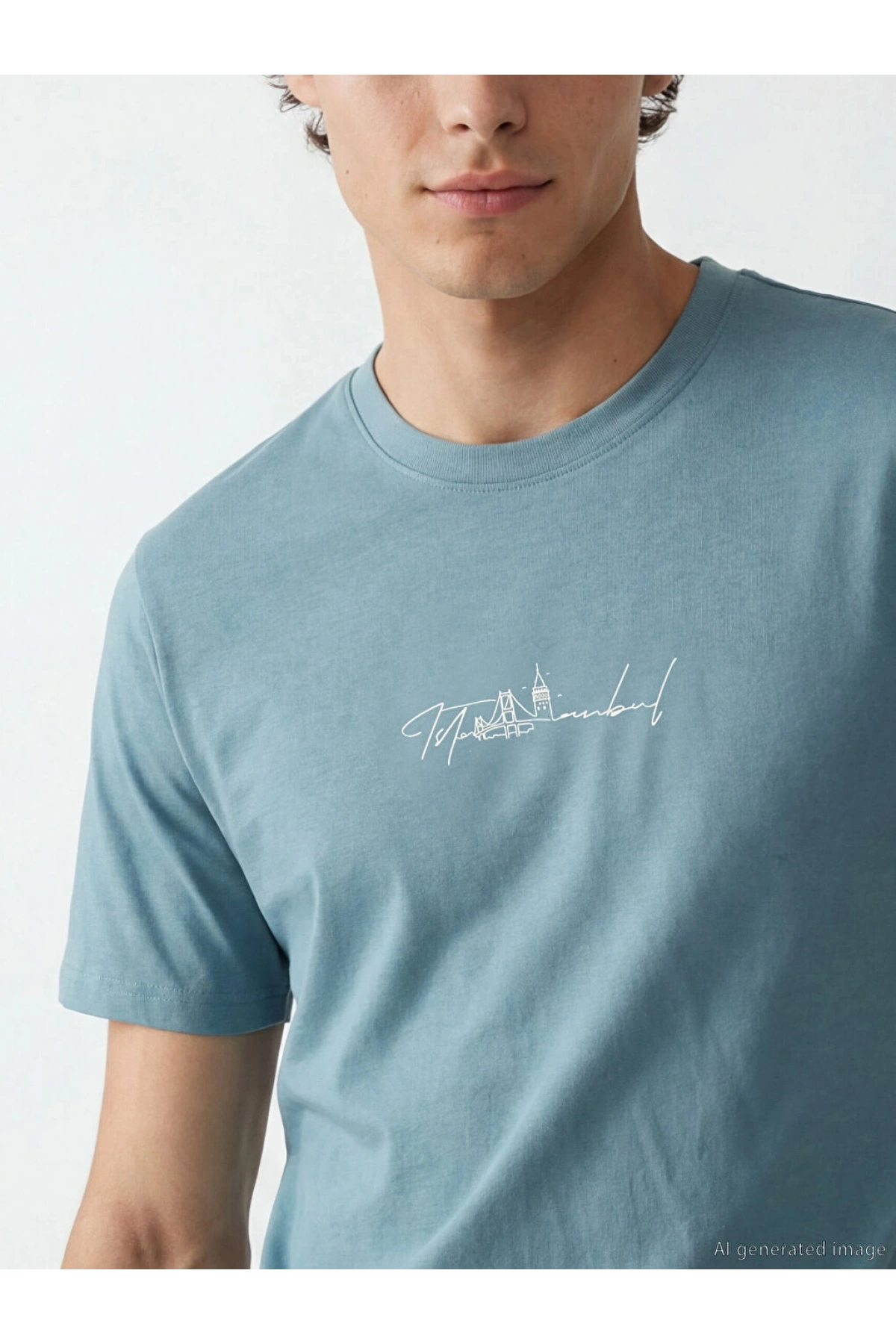 XSIDE Mavi Istanbul Baskılı Bisiklet Yaka Erkek Tişört