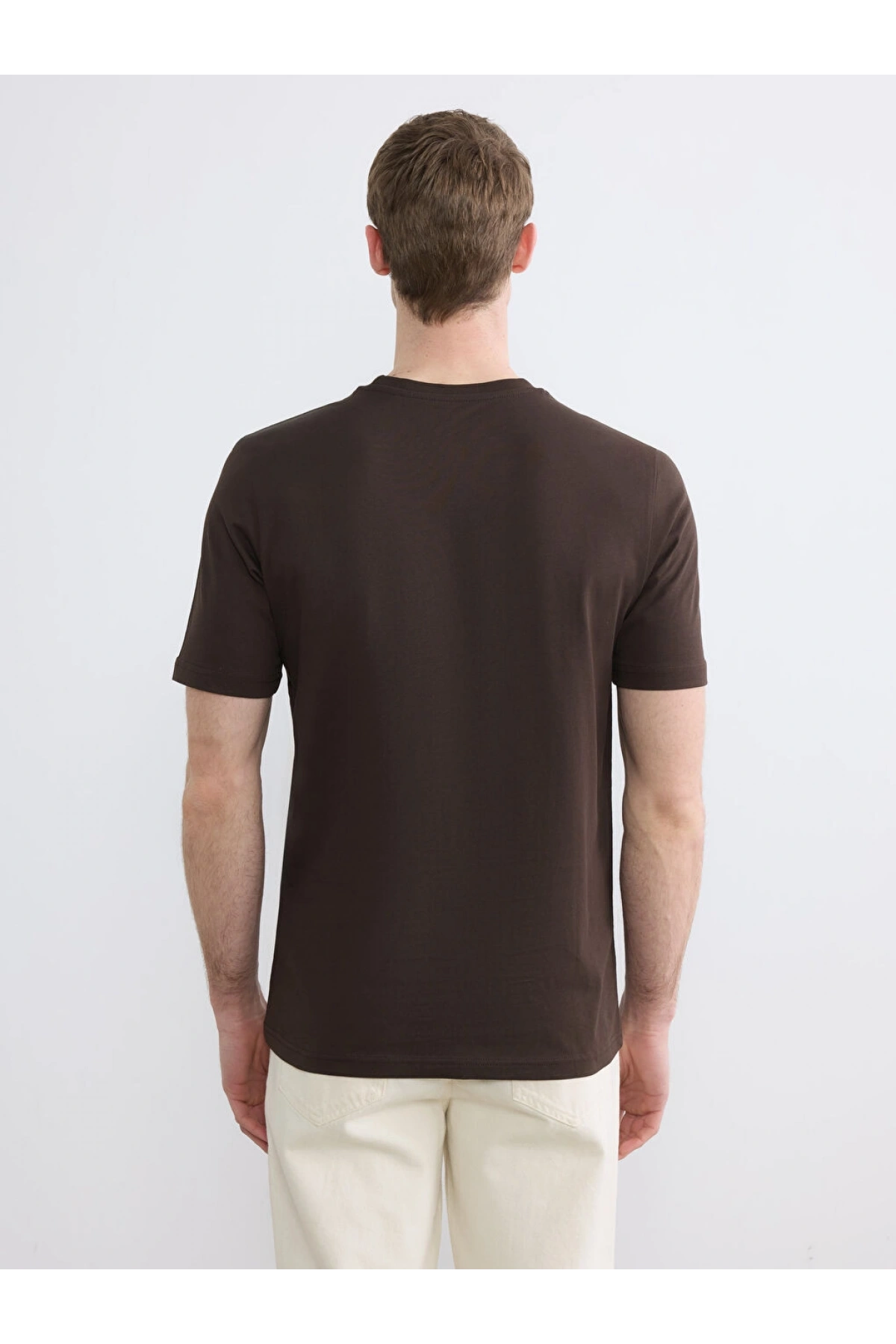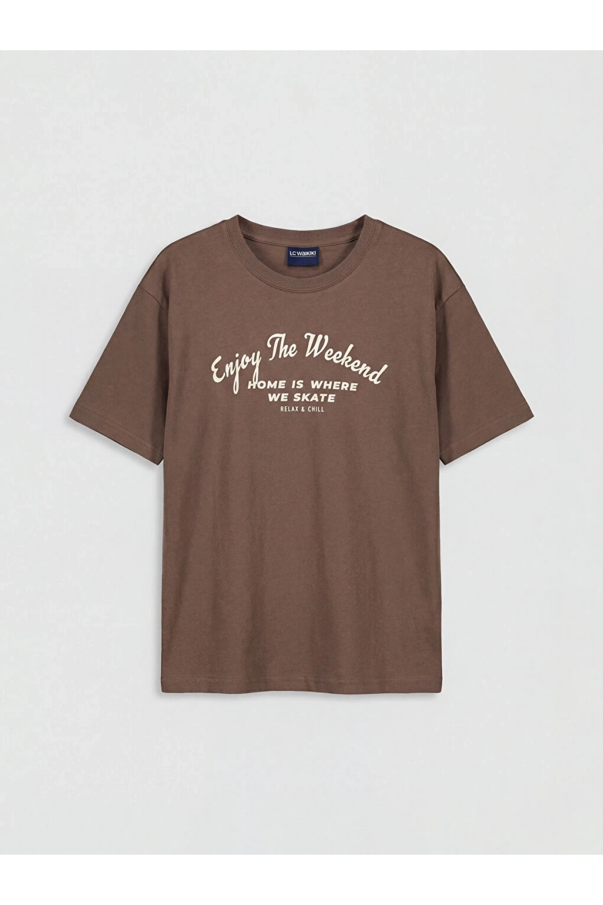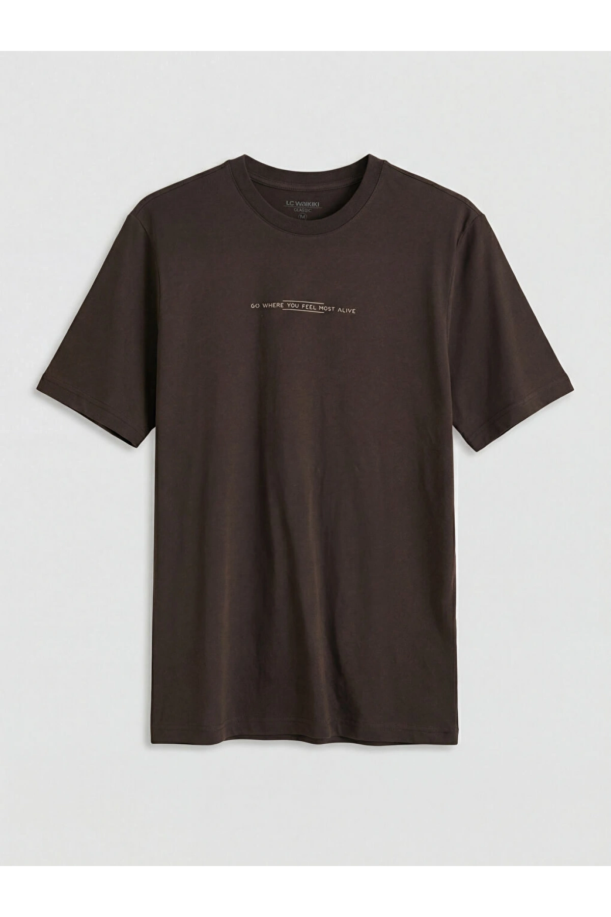 LCWAIKIKI Classic Kahverengi Bisiklet Yaka Baskılı Penye Erkek Tişört