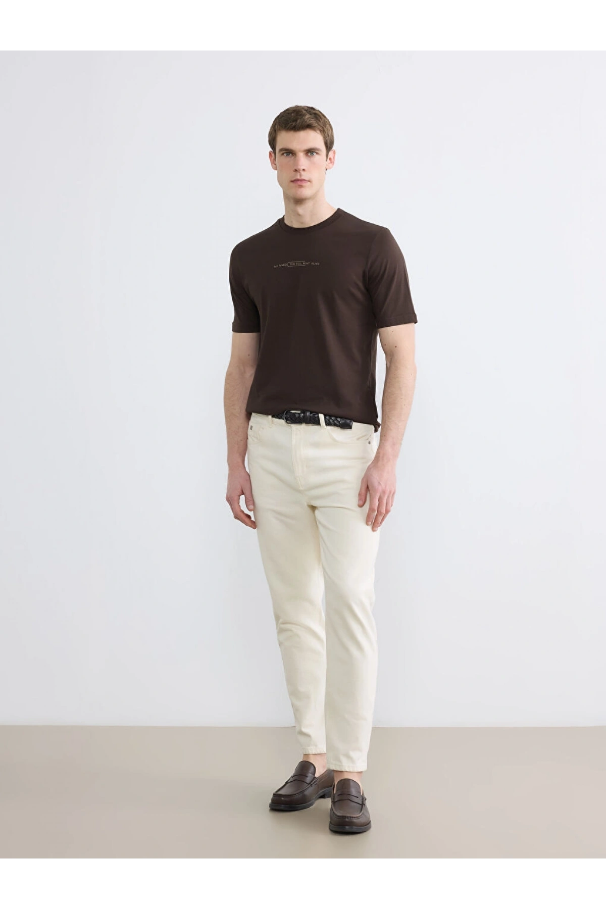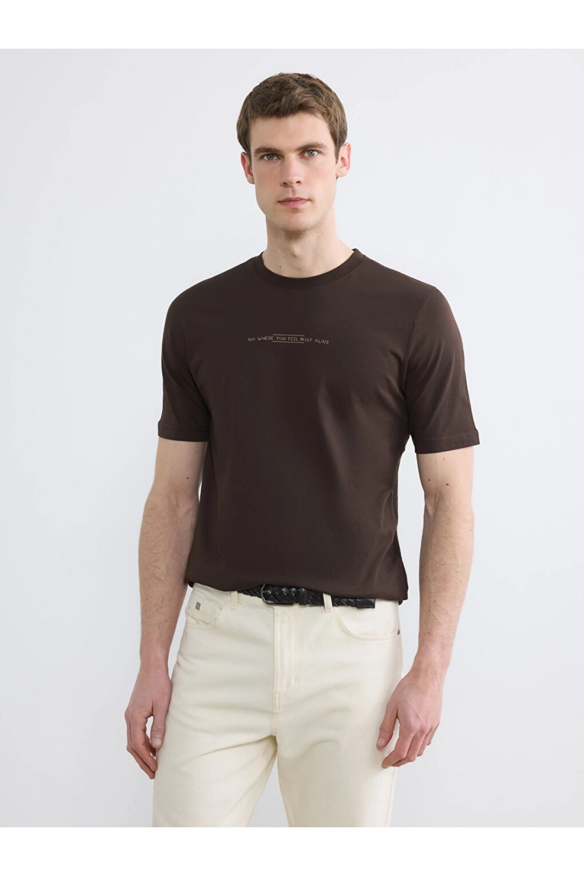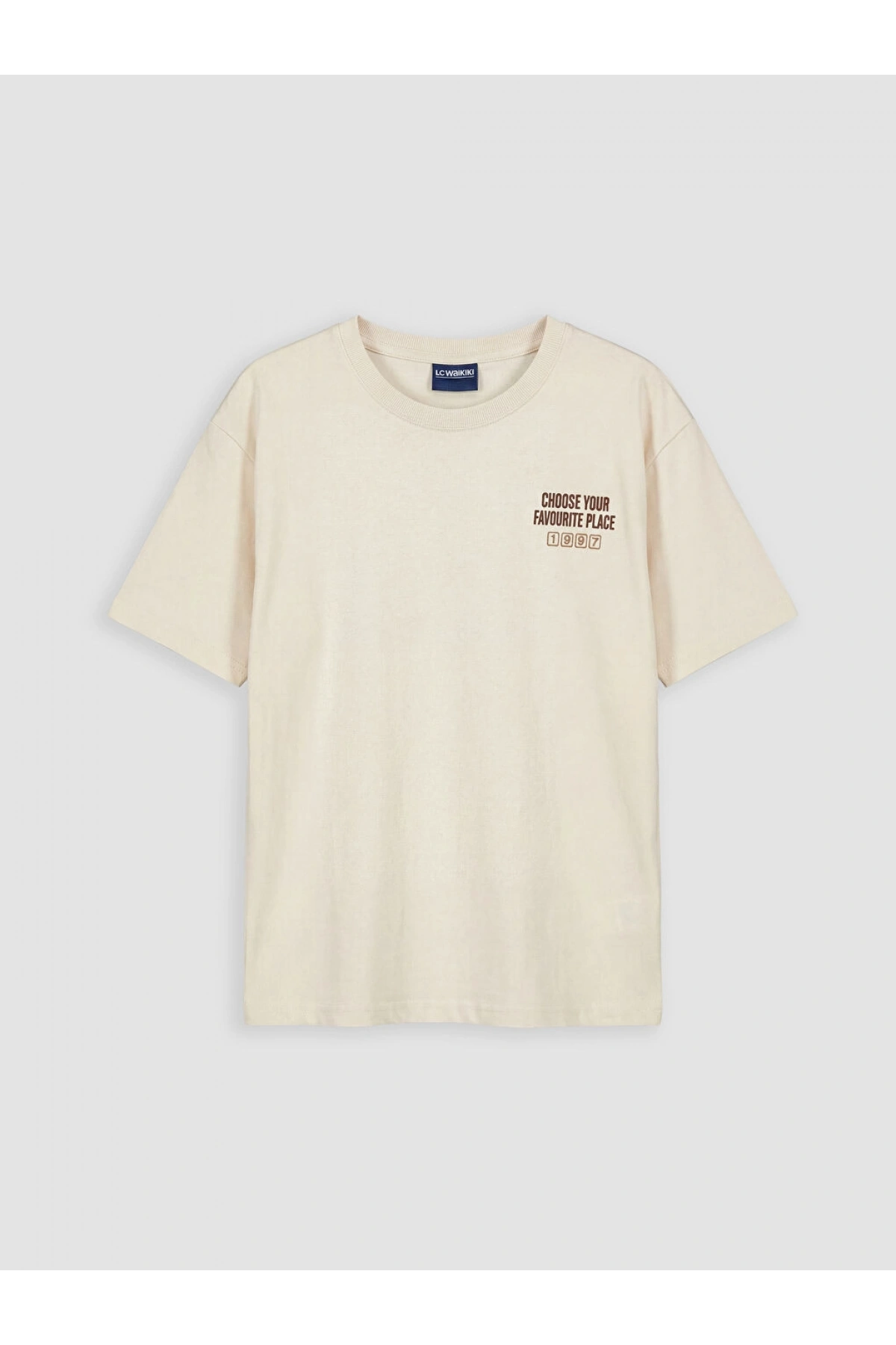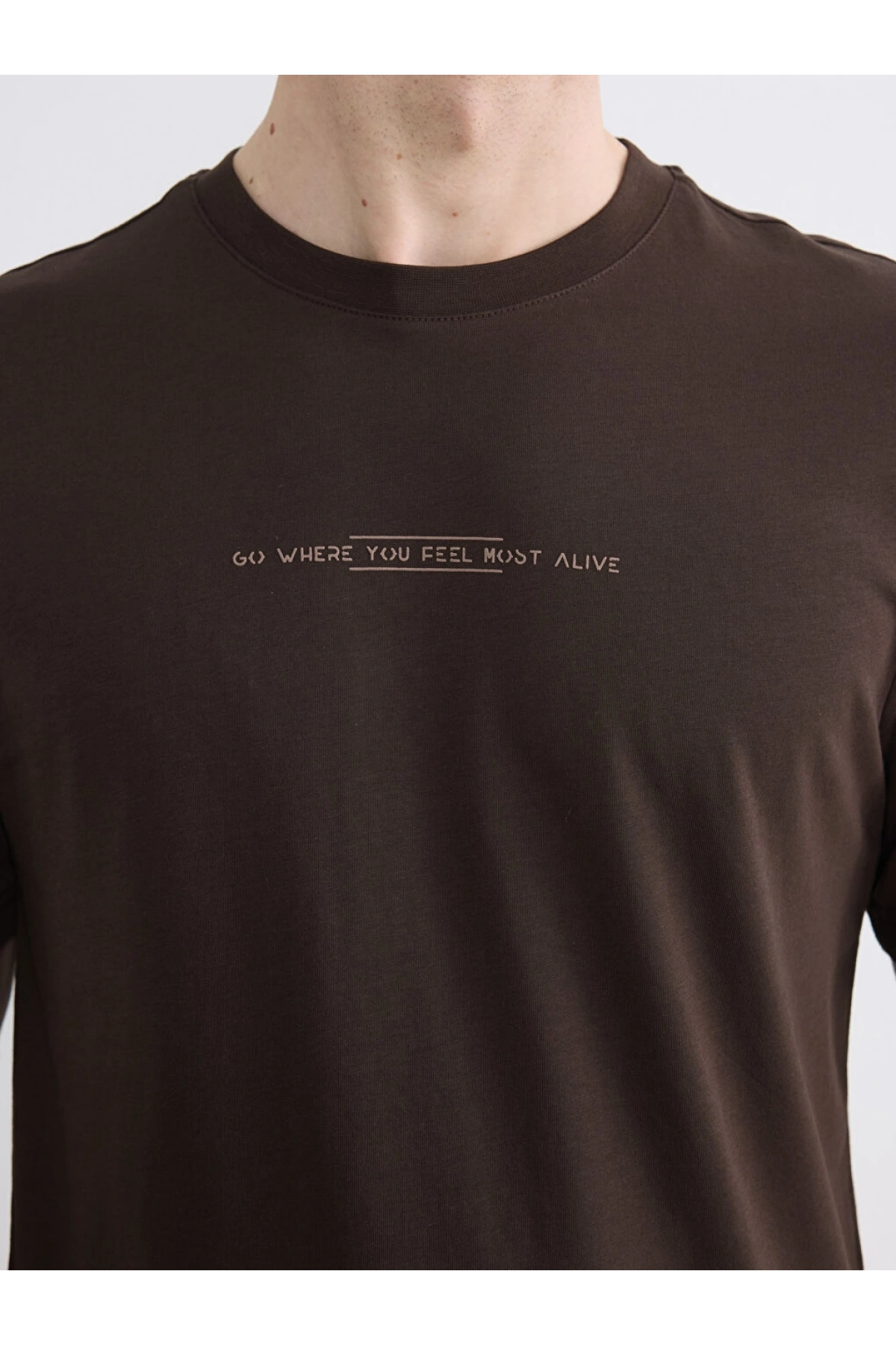LCWAIKIKI Classic Kahverengi Bisiklet Yaka Baskılı Penye Erkek Tişört