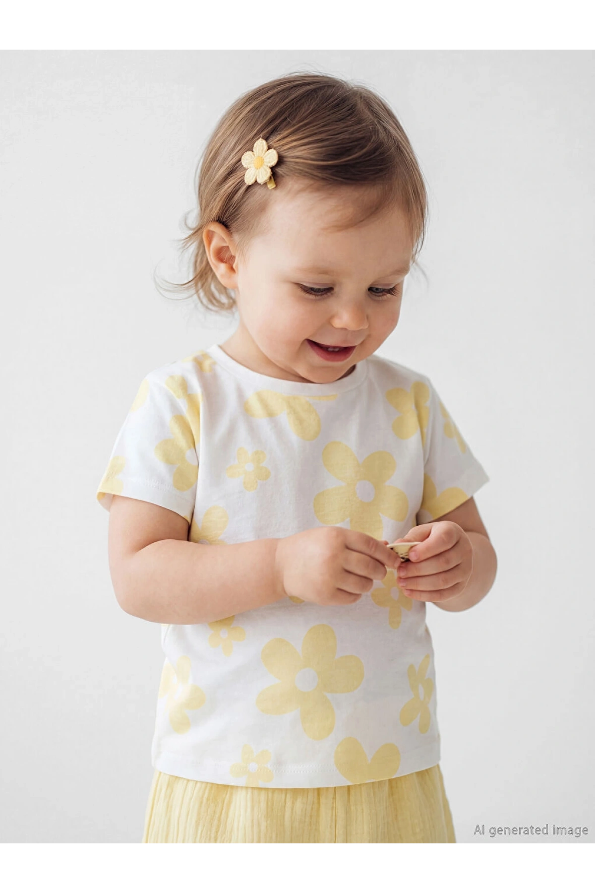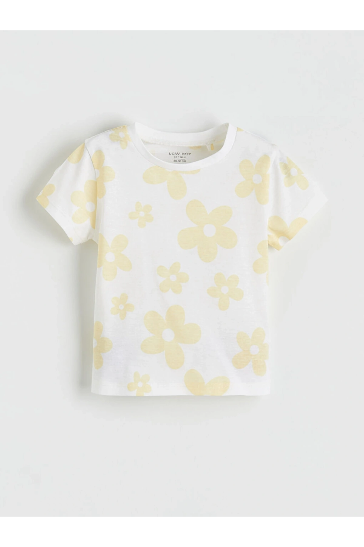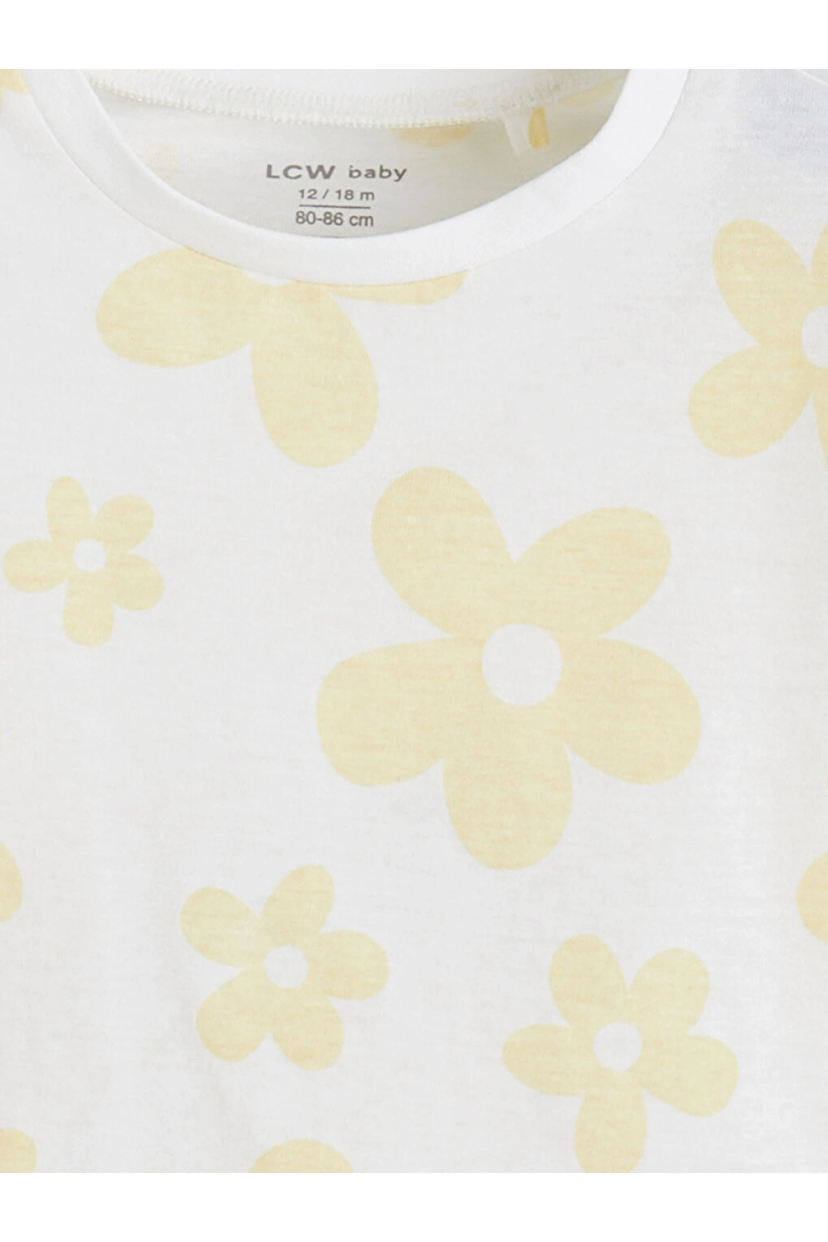 LCW baby Ekru Çiçek Baskılı Kız Bebek Penye Tişört