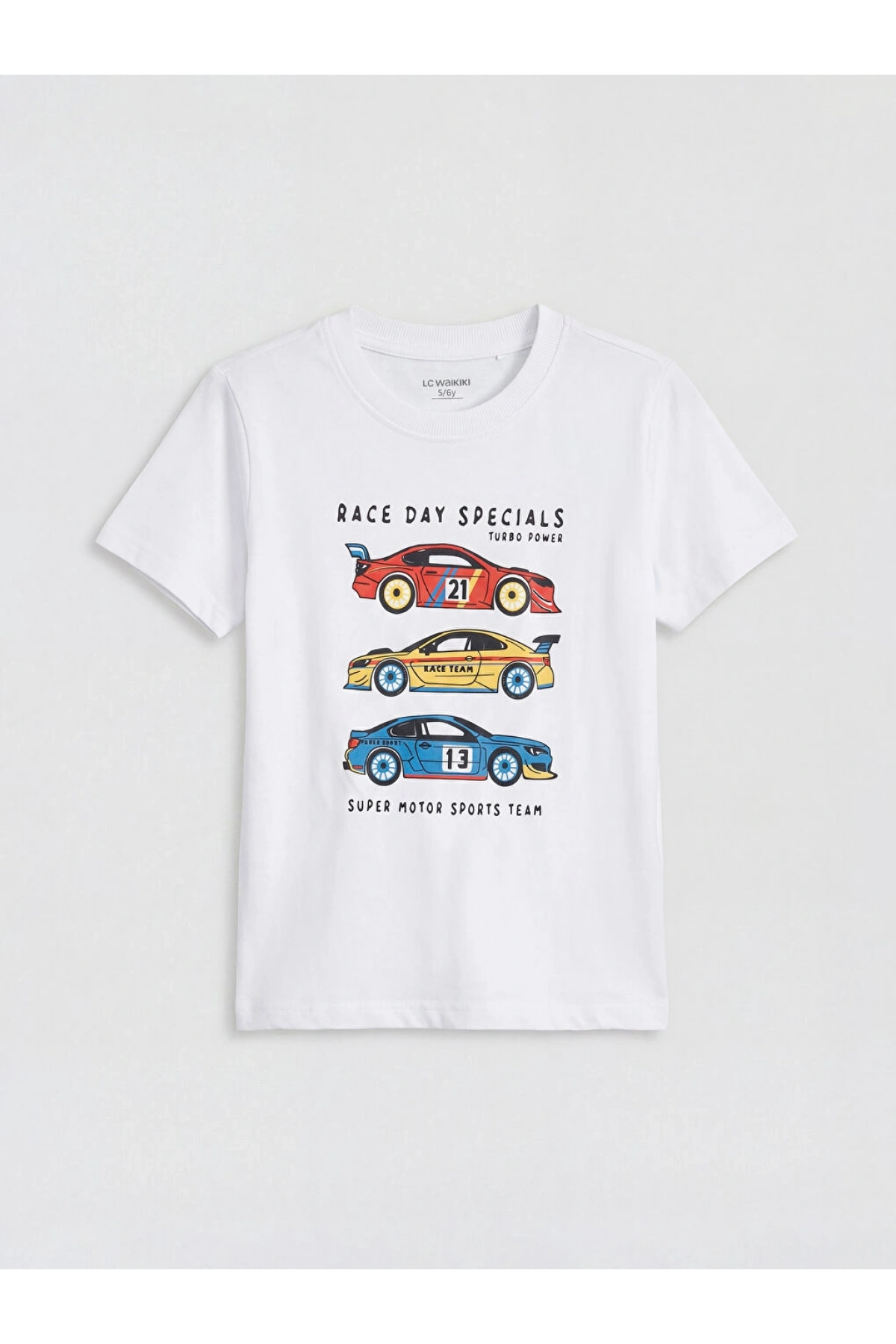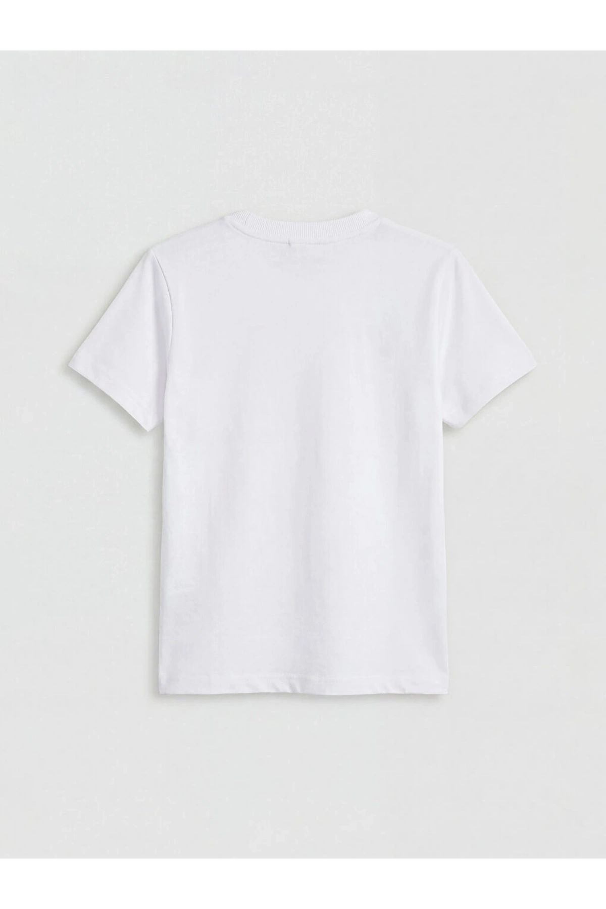 LCW Kids Beyaz Bisiklet Yaka Baskılı Erkek Çocuk Tişört