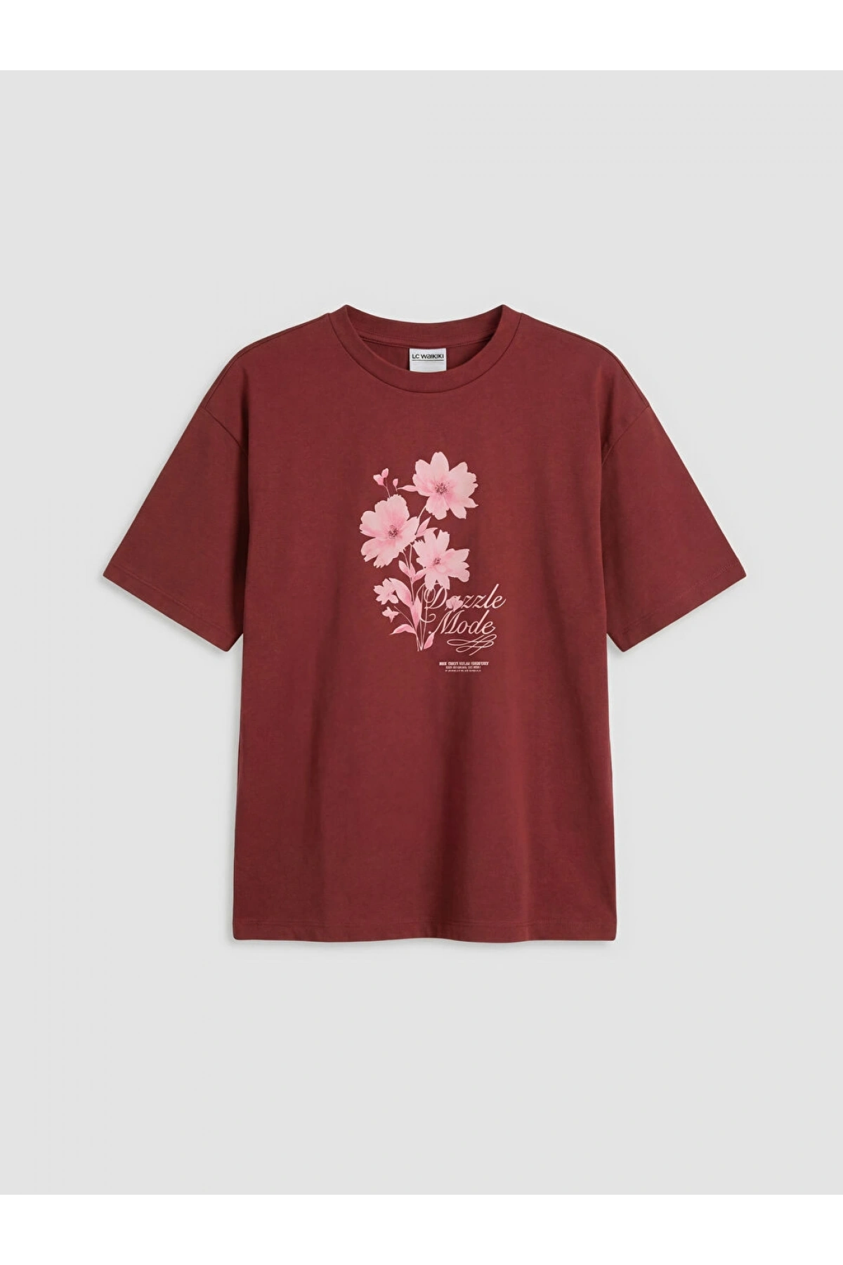 LCW Kids Bordo Bisiklet Yaka Baskılı Kız Çocuk Tişört