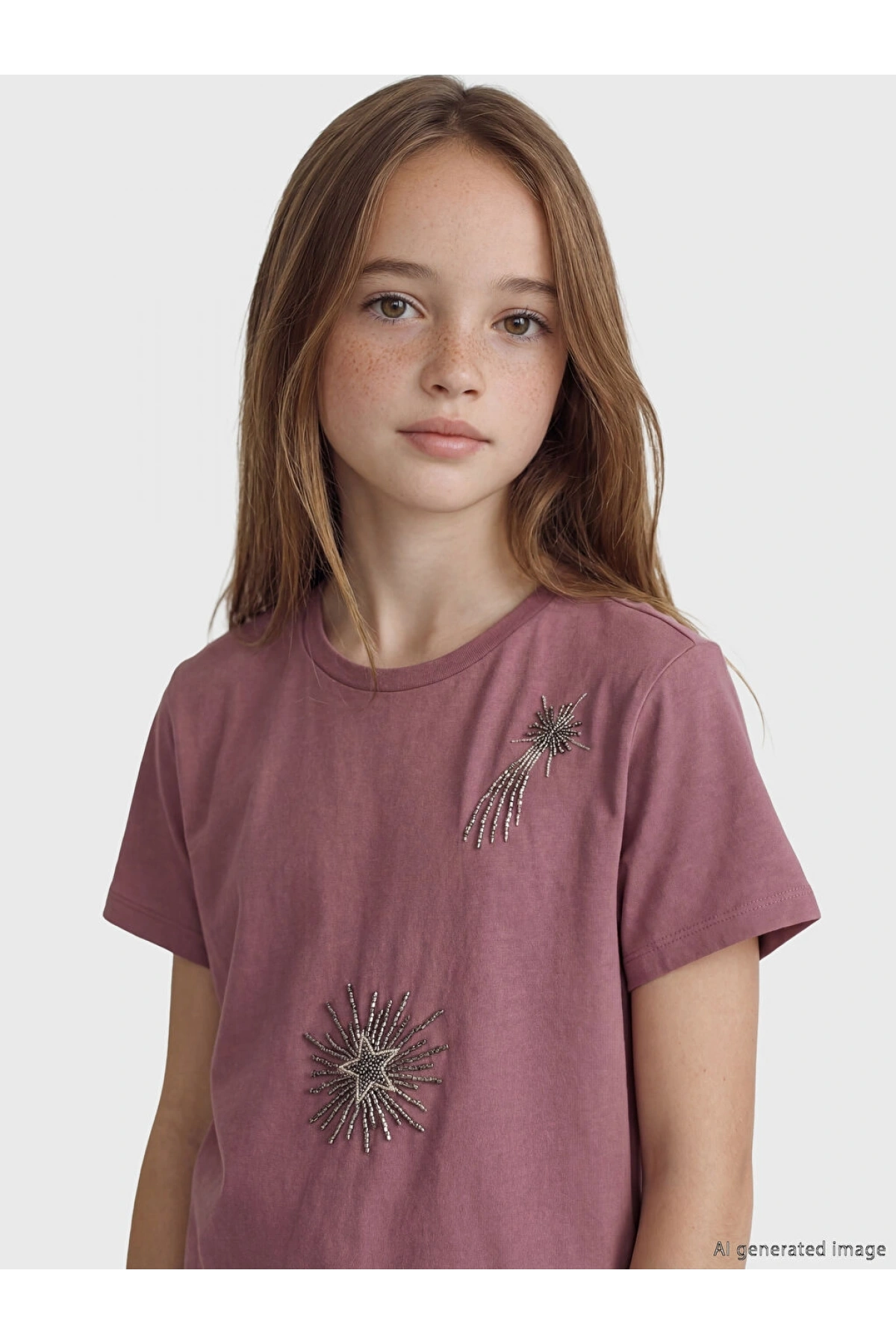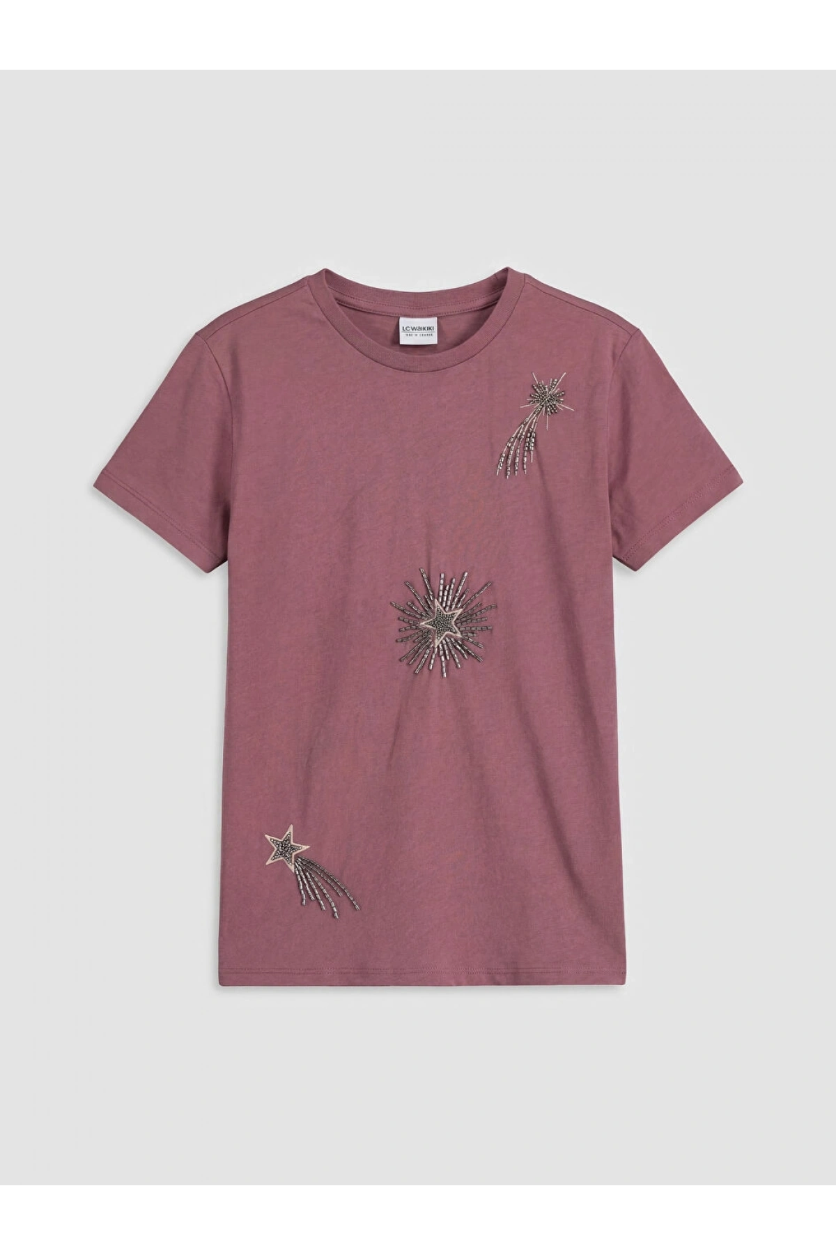 LCW Kids Pembe Bisiklet Yaka Boncuklu Kız Çocuk Tişört