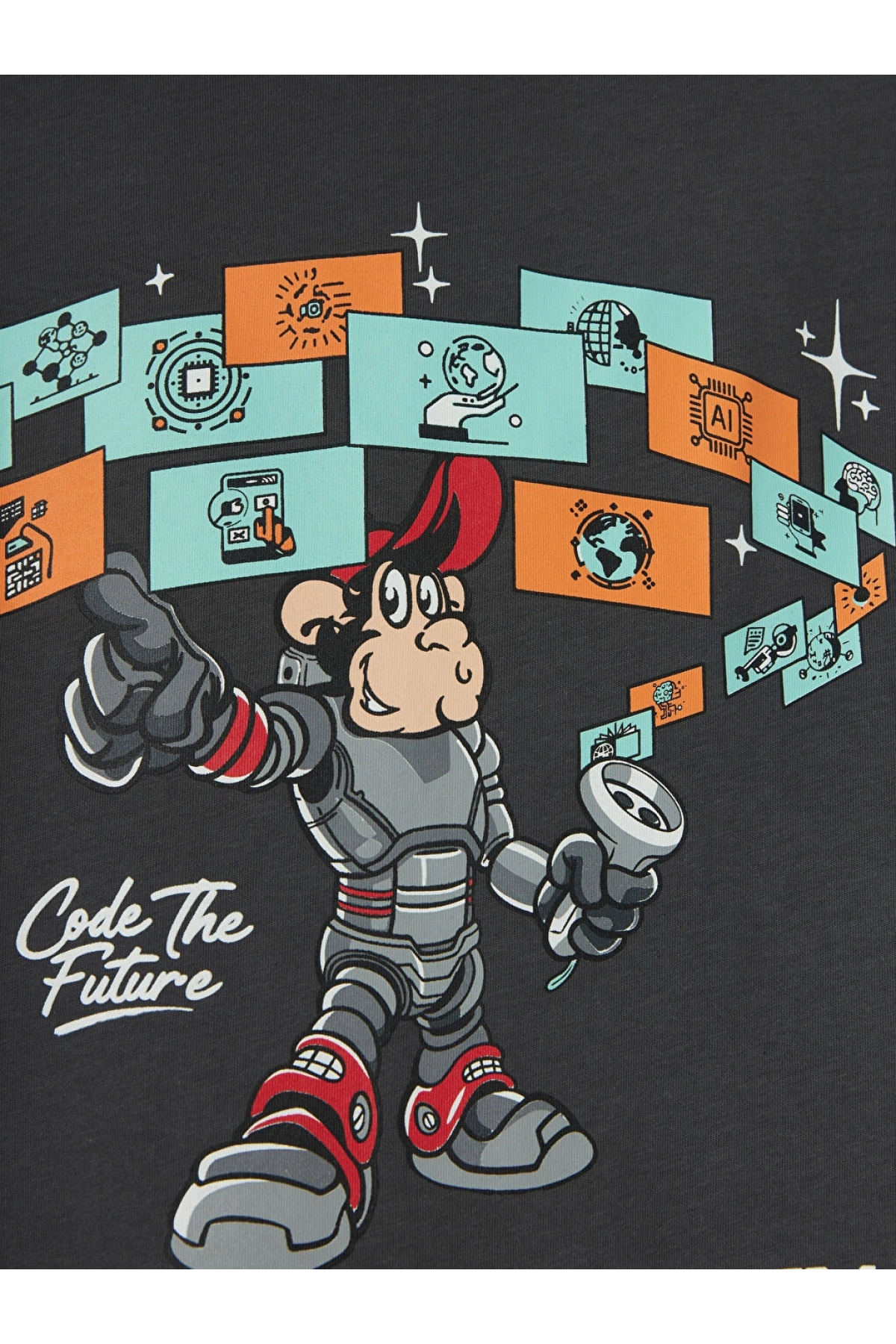 LCW Kids Antrasit Nostaljik Maymun Baskılı Erkek Çocuk Tişört