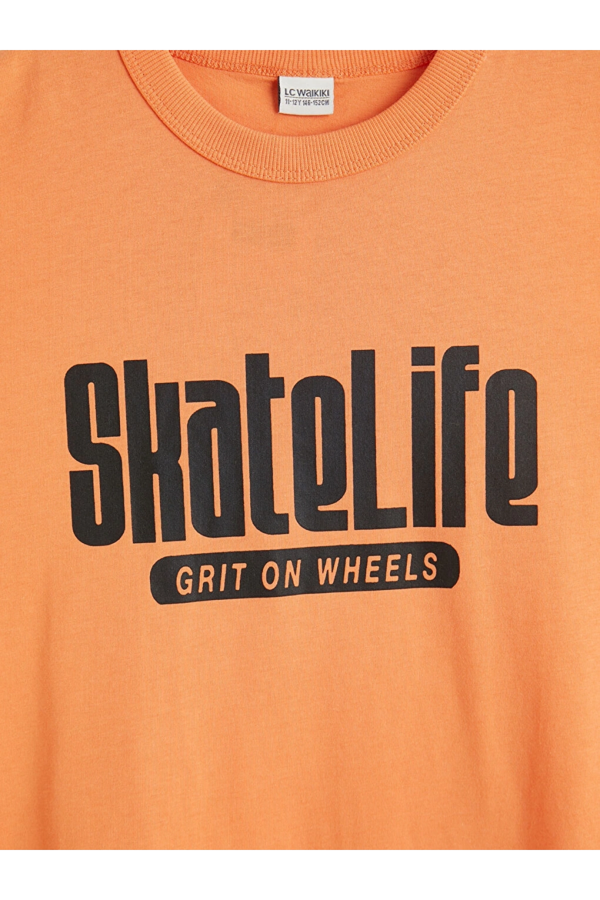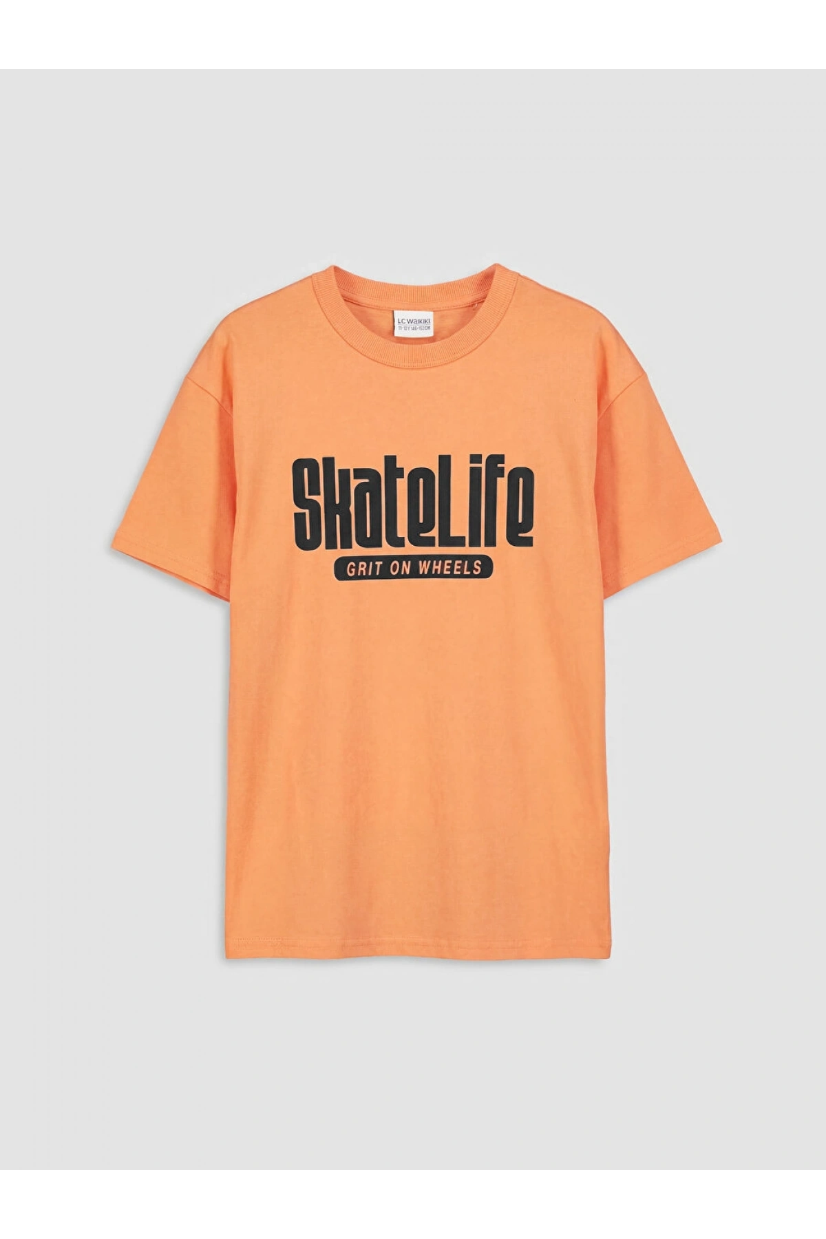 LCW Kids Turuncu Bisiklet Yaka Baskılı Erkek Çocuk Tişört