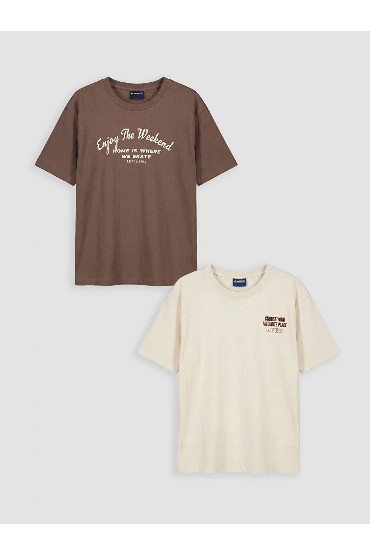 LCW Kids Kahverengi Baskılı Erkek Çocuk Tişört 2'li