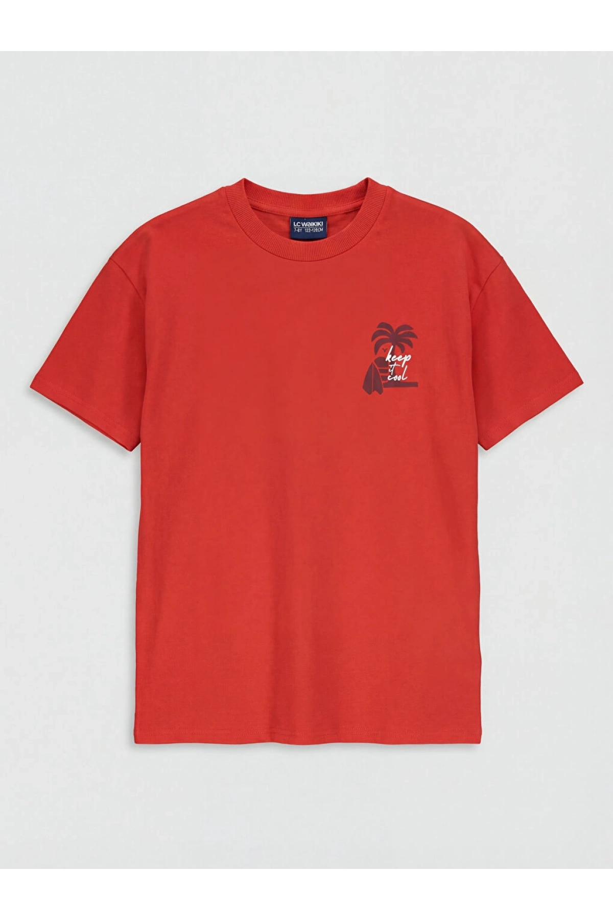 LCW Kids Kırmızı Bisiklet Yaka Baskılı Erkek Çocuk Tişört