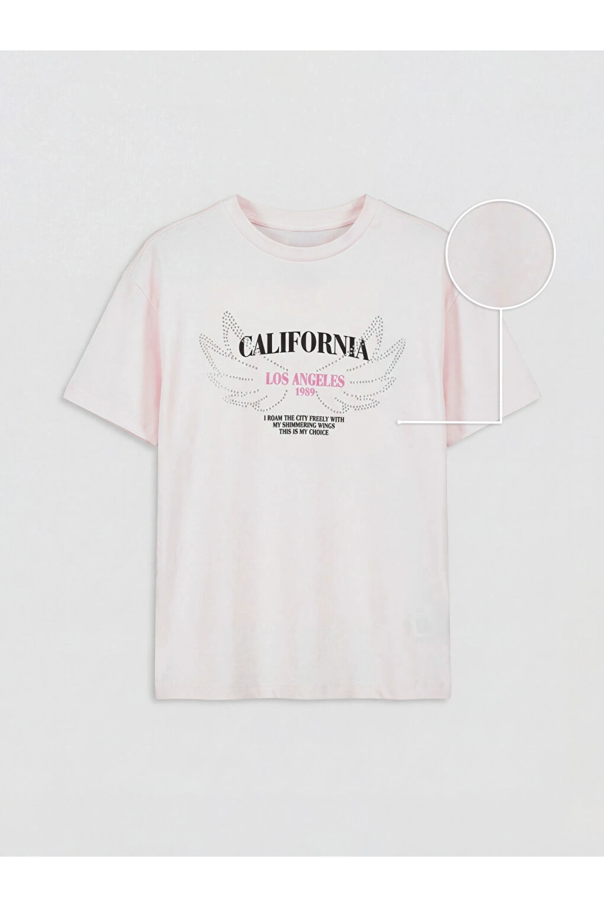 LCW Kids Pembe Taşlı California Baskılı Kız Çocuk Tişört