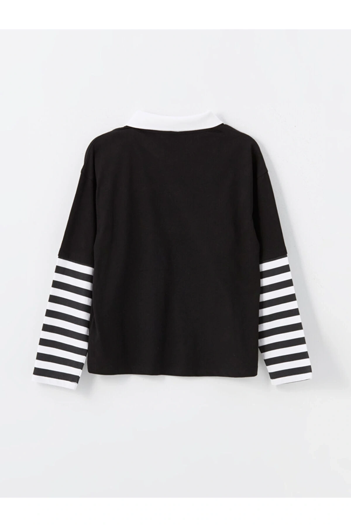 LCW Bisiklet Yaka Çizgili Uzun Kollu Kız Çocuk Tişört