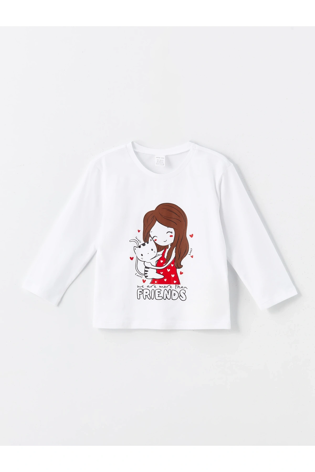 LCW Bisiklet Yaka Uzun Kollu Baskılı Kız Bebek Tişört