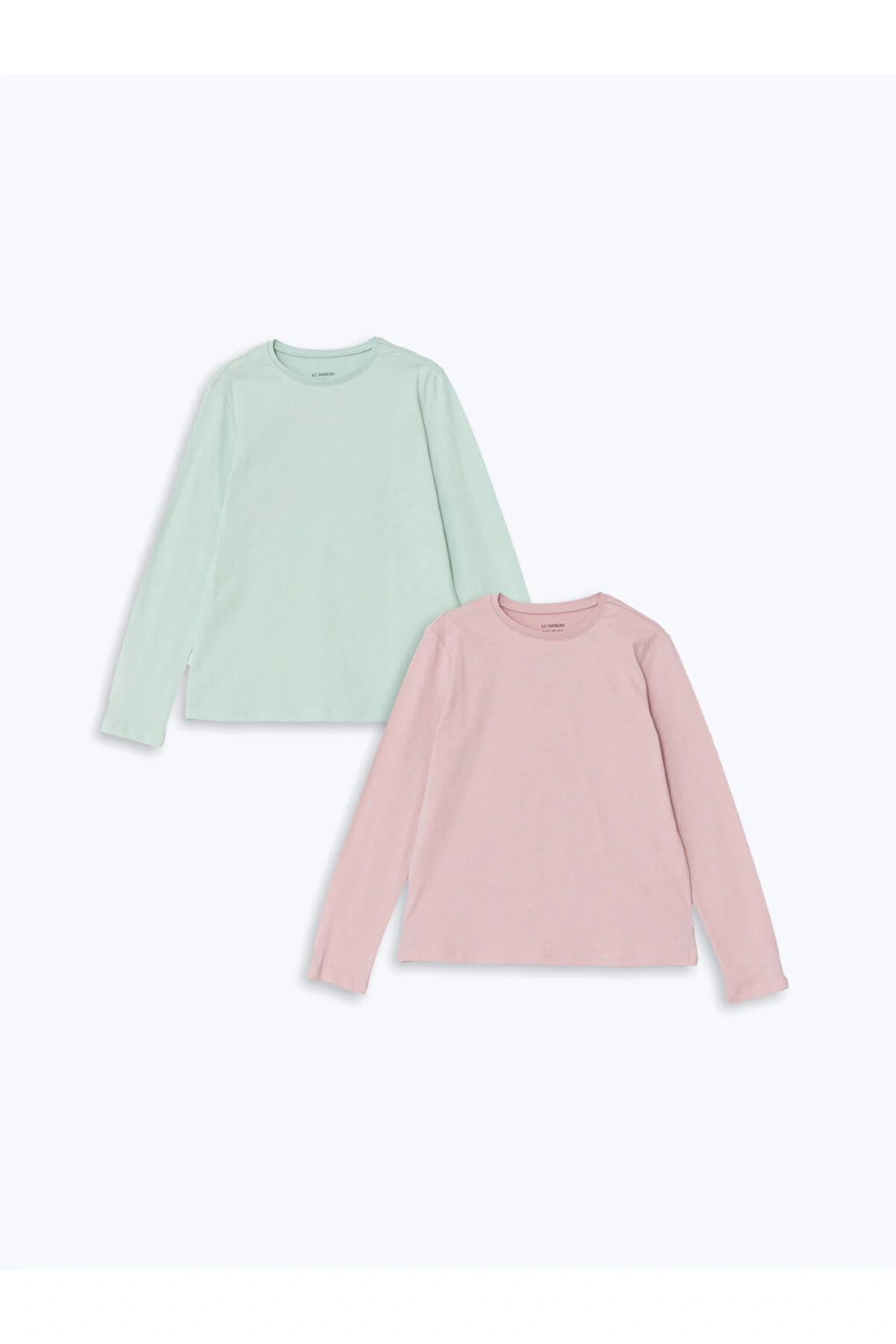 LCW Kids Açık Yeşil Bisiklet Yaka Kız Çocuk Tişört 2'li
