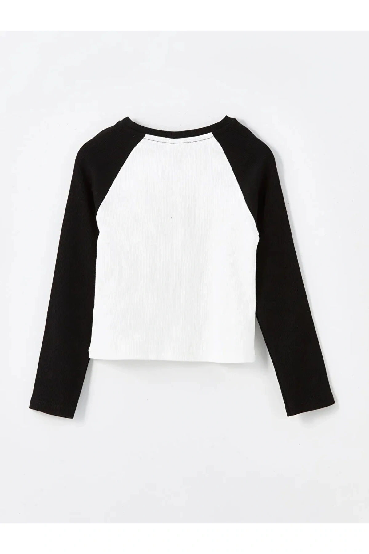 LCW Kids Yeni Siyah Bisiklet Yaka Nakışlı Uzun Kollu Kız Çocuk Crop Tişört