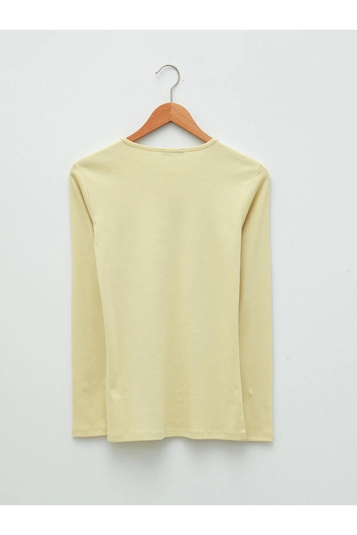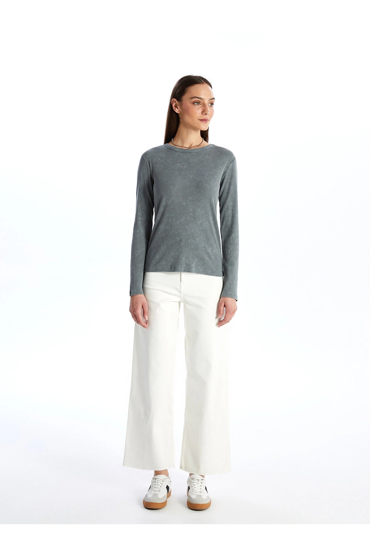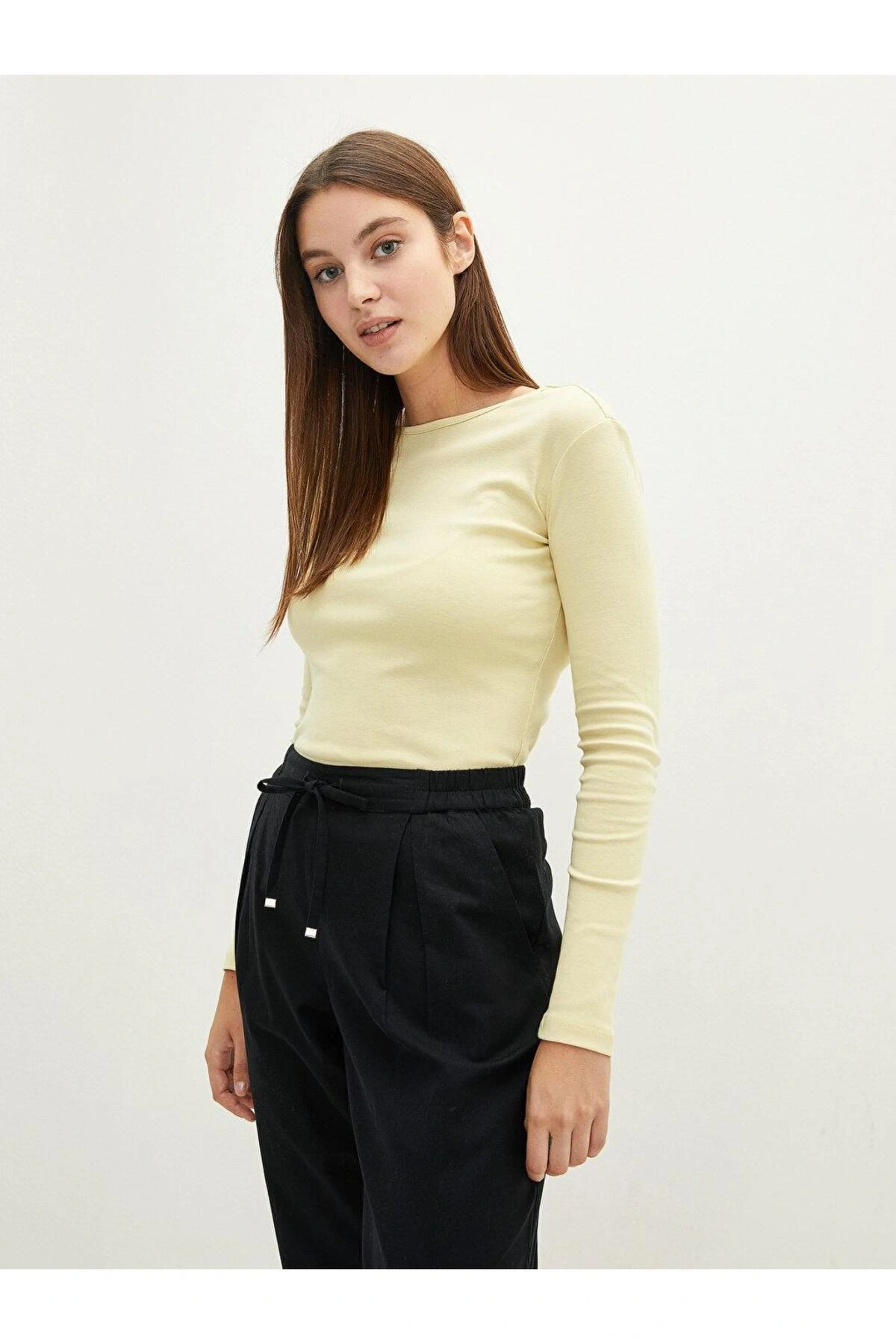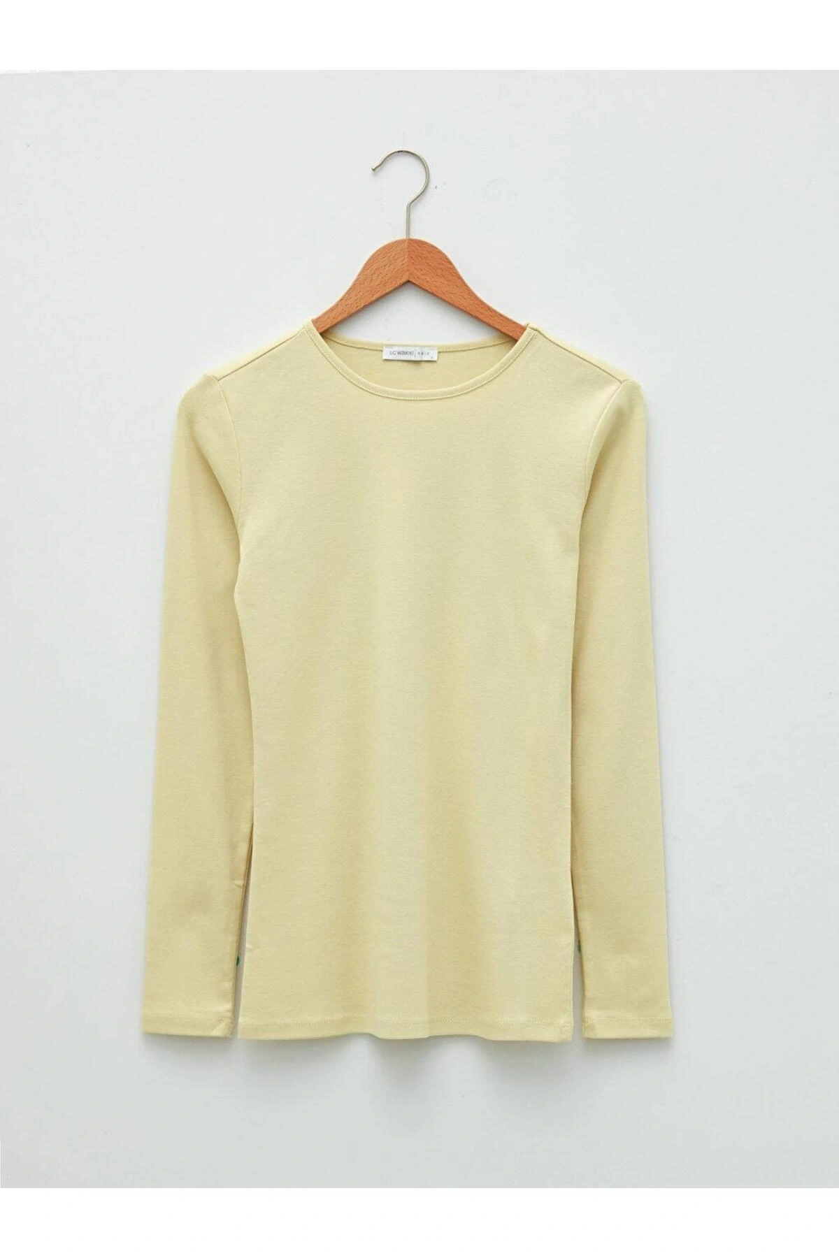 LCWAIKIKI Basic Bisiklet Yaka Düz Uzun Kollu Pamuklu Kadın Tişört