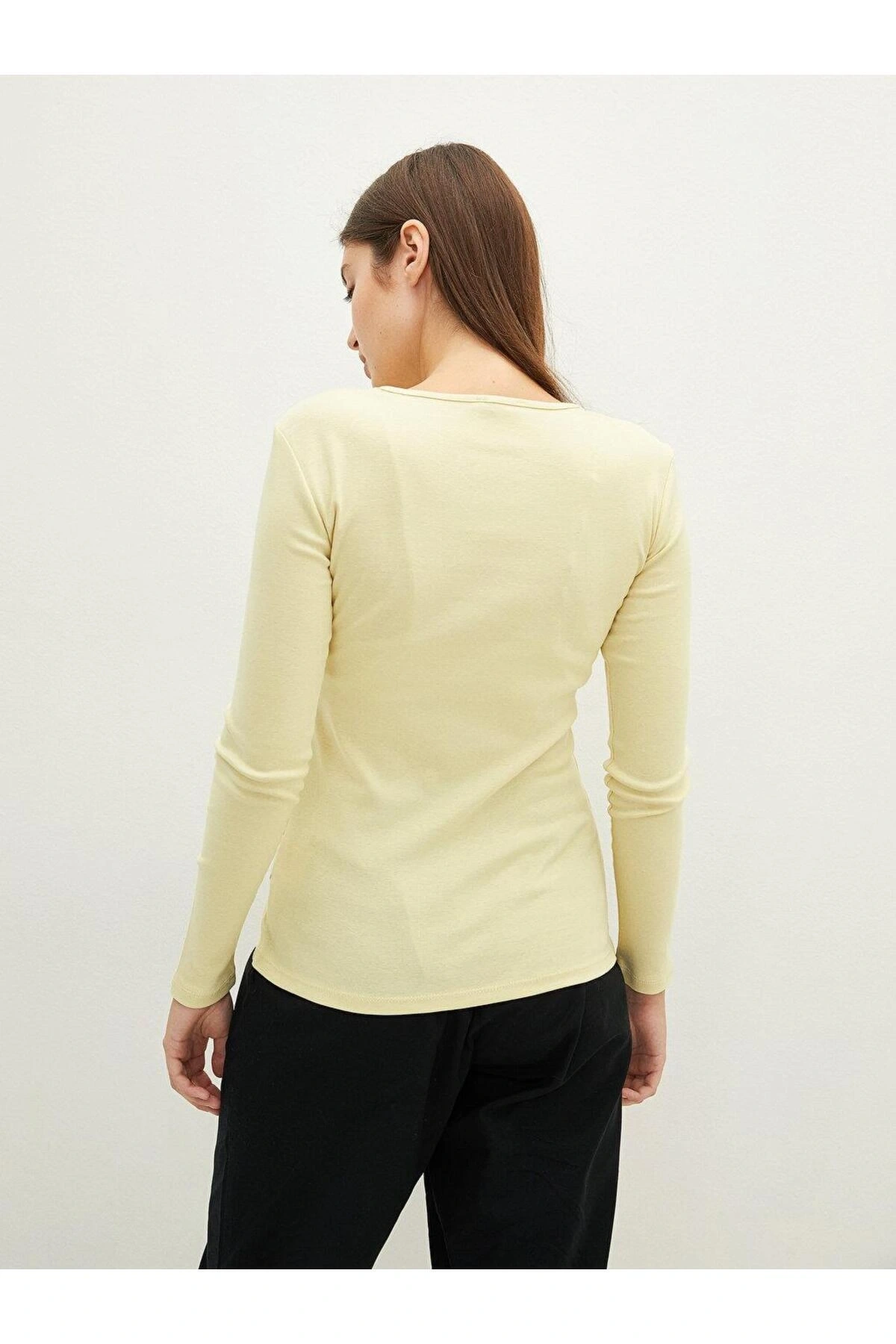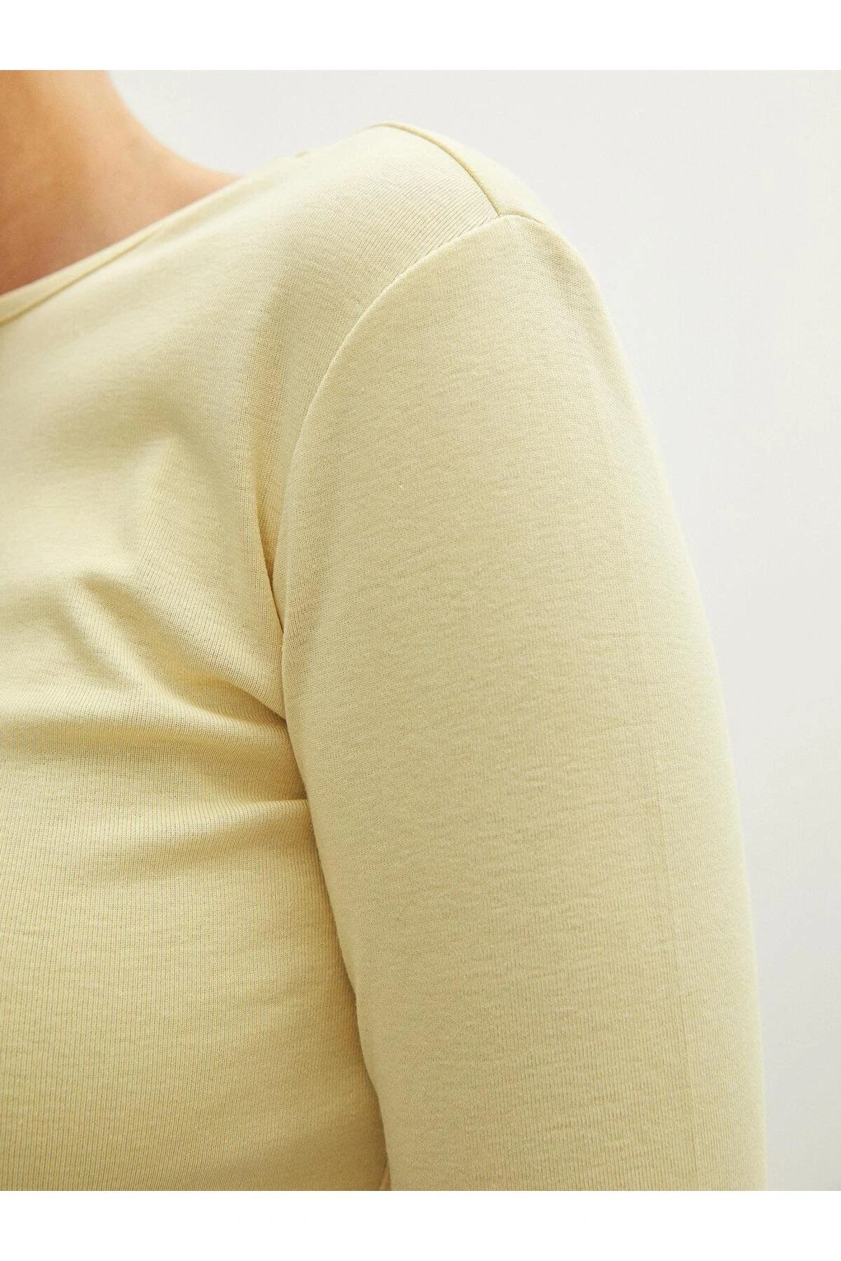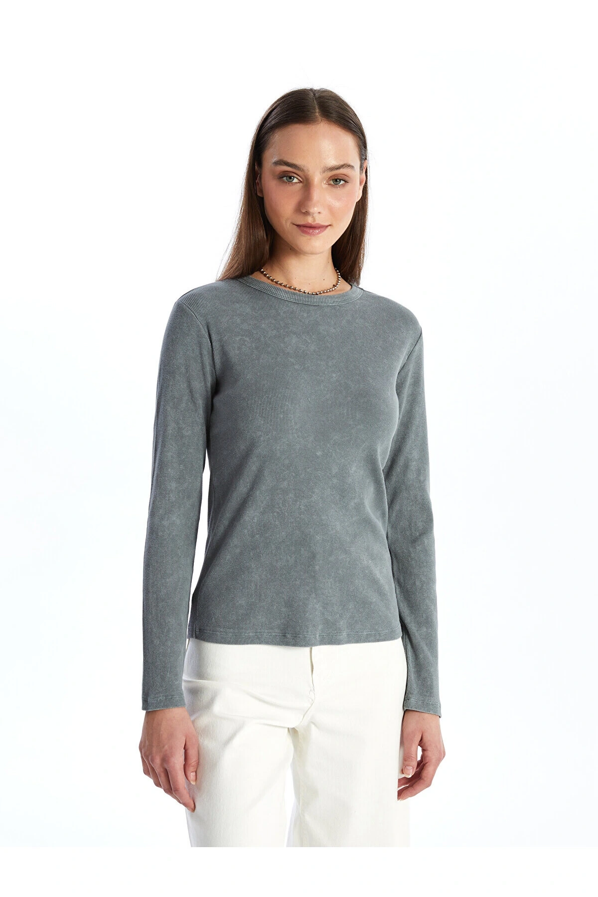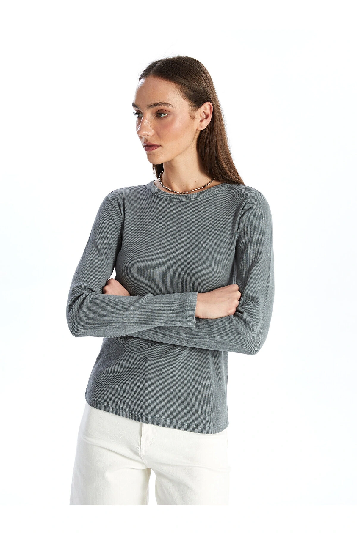 LCWAIKIKI Basic Bisiklet Yaka Düz Uzun Kollu Pamuklu Kadın Tişört