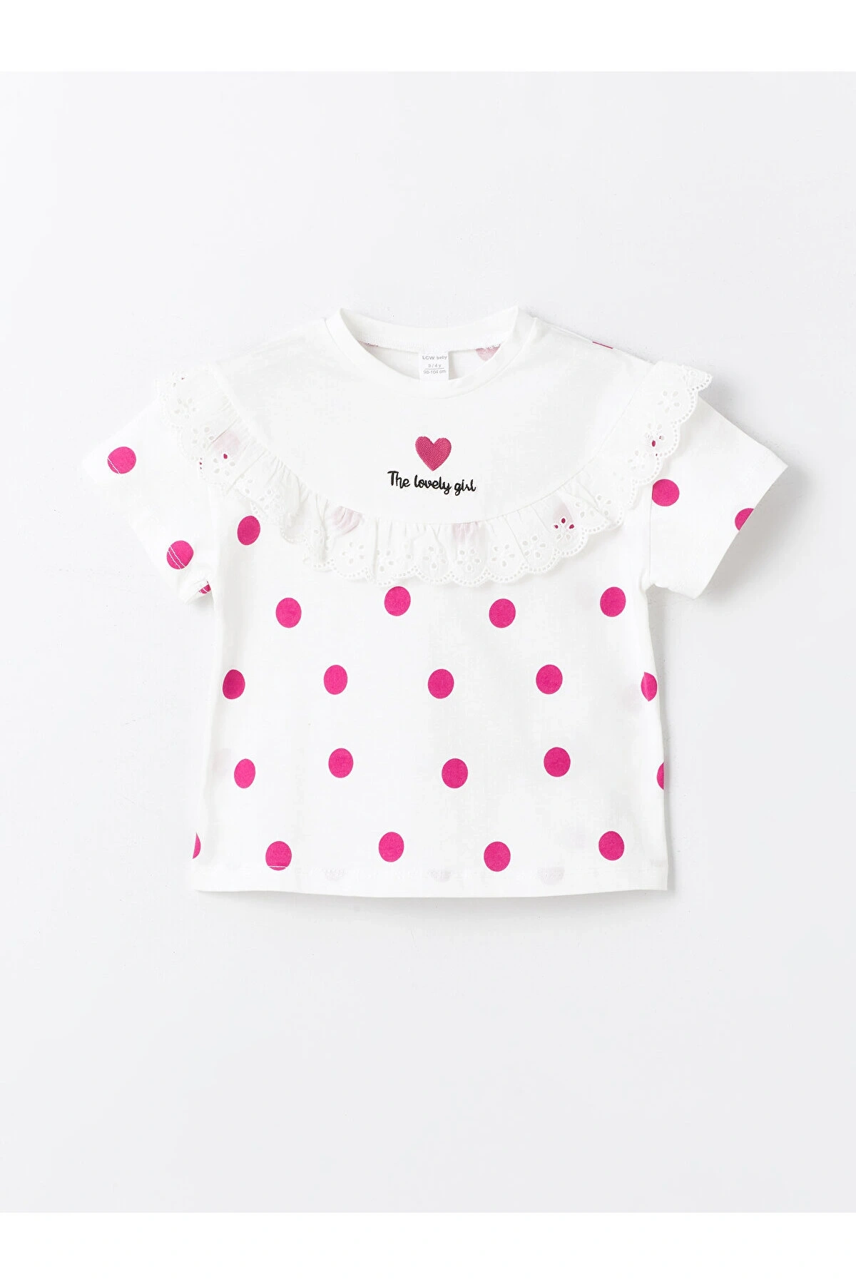 Bisiklet Yaka Baskılı Kısa Kollu Kız Bebek Tişört