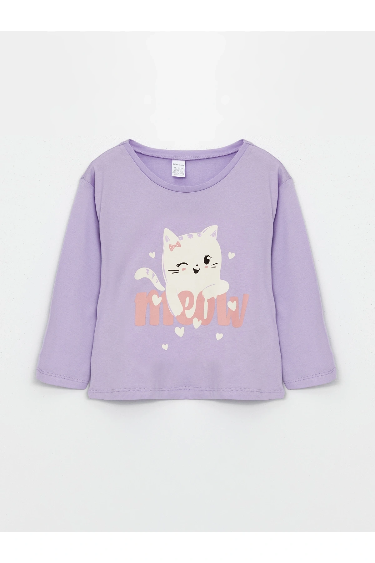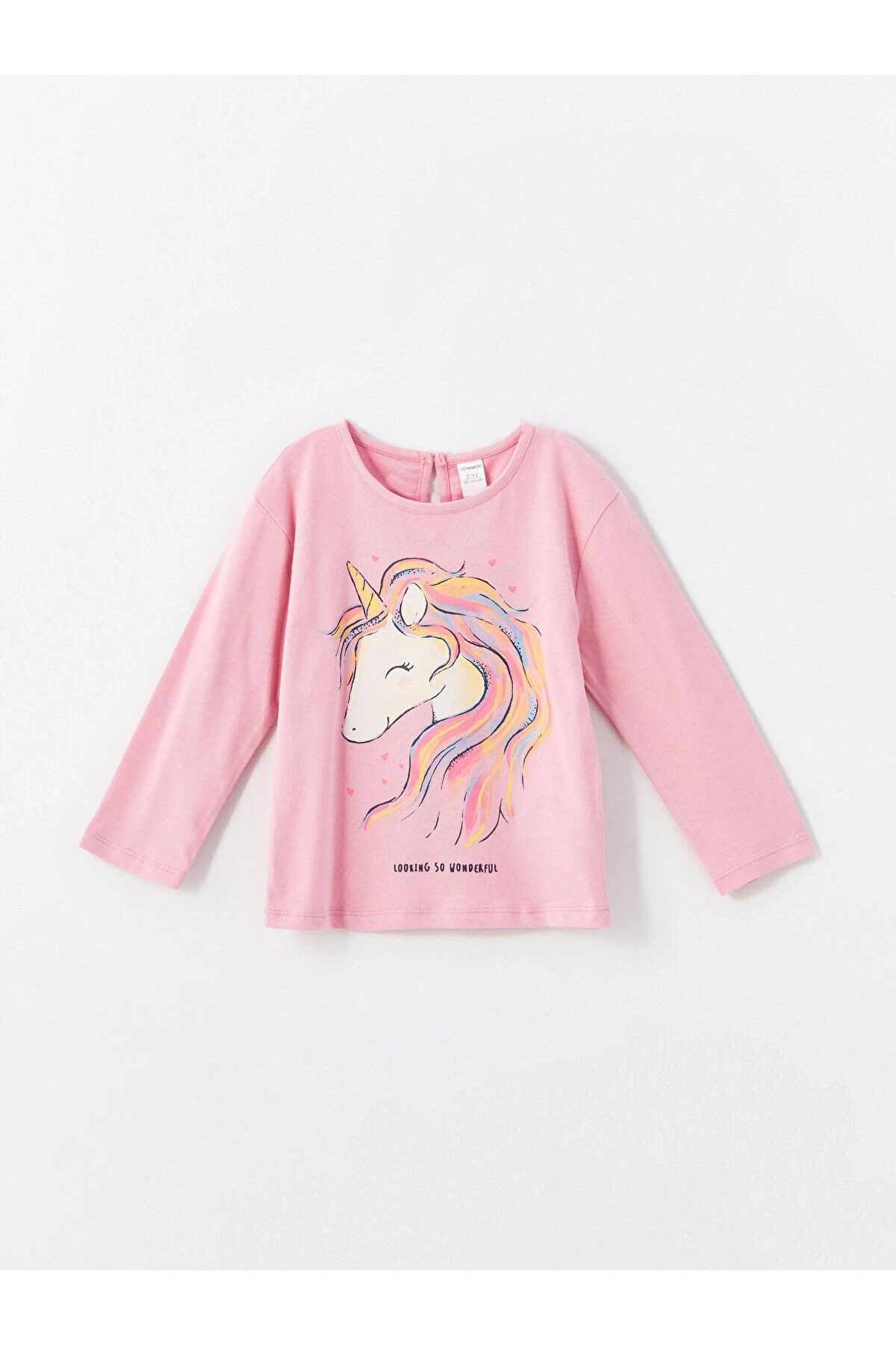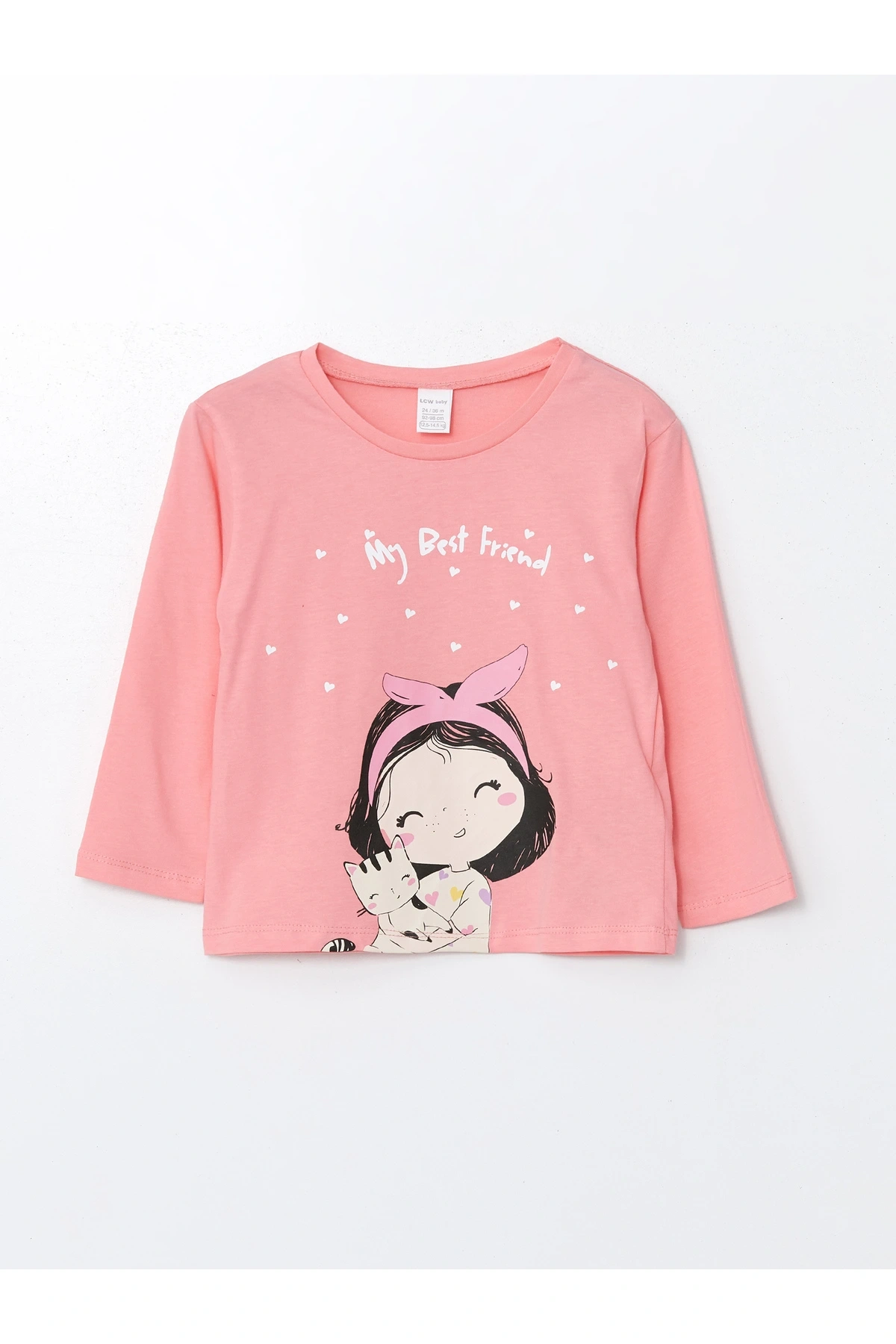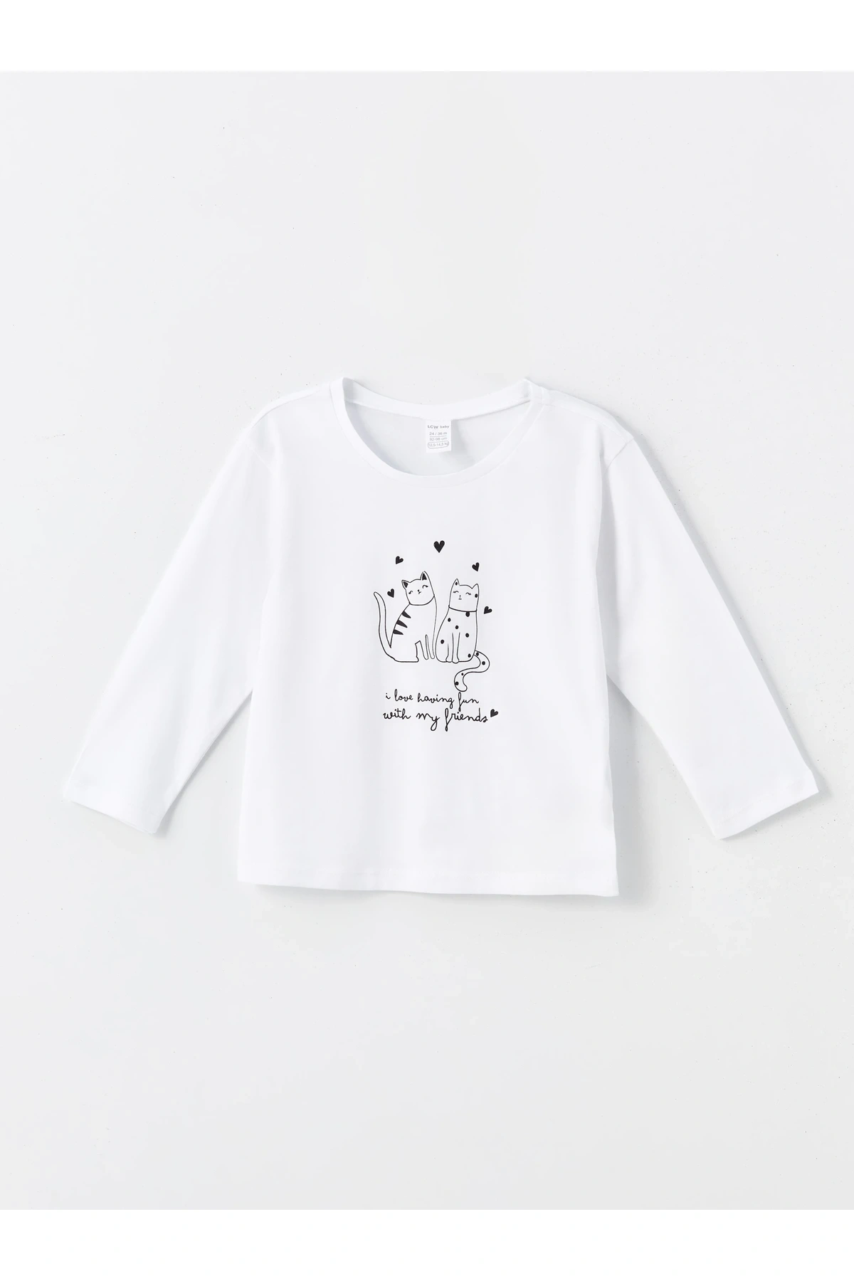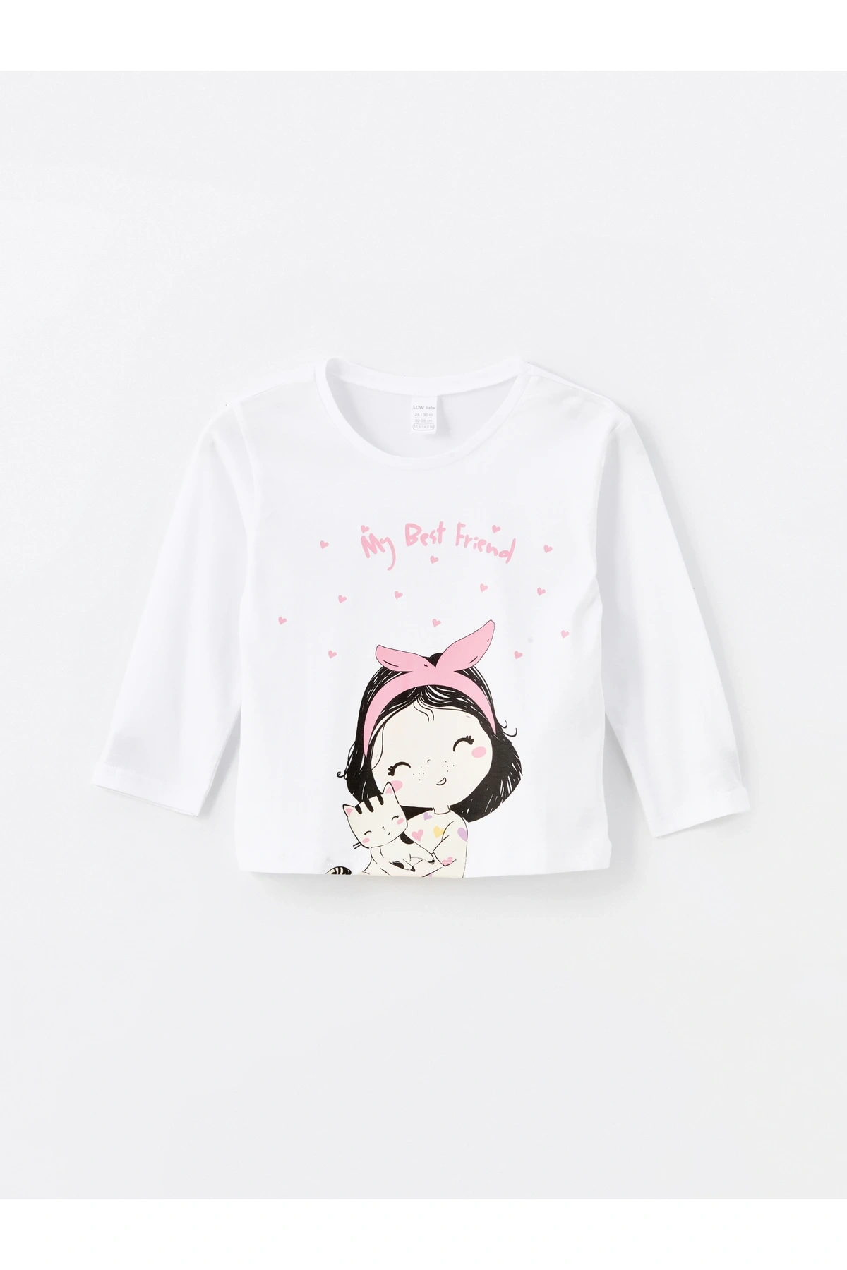 Bisiklet Yaka Uzun Kollu Baskılı Kız Bebek Tişört