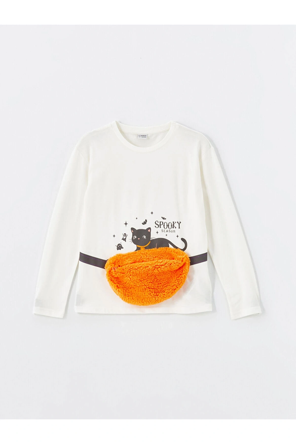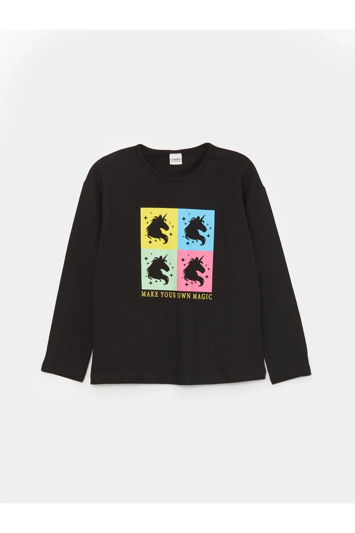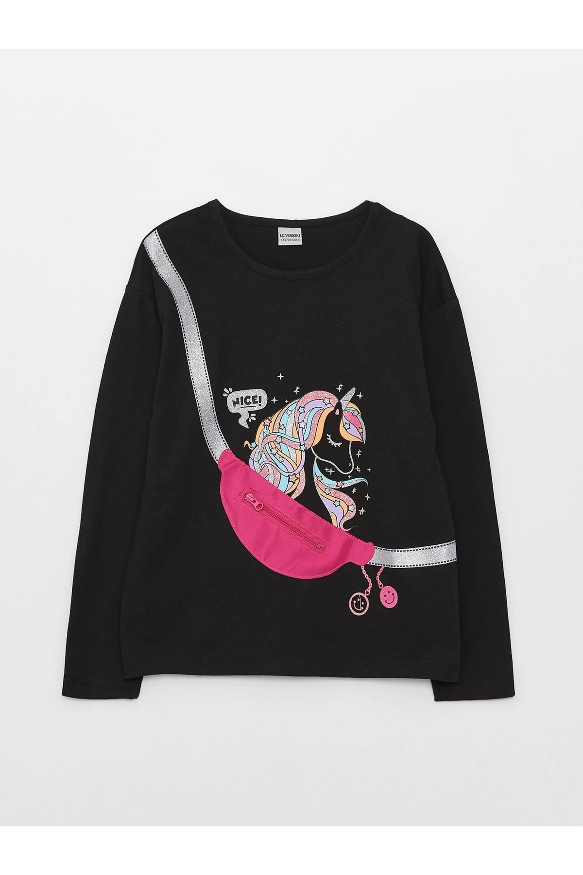 Bisiklet Yaka Baskılı Uzun Kollu Kız Çocuk Tişört