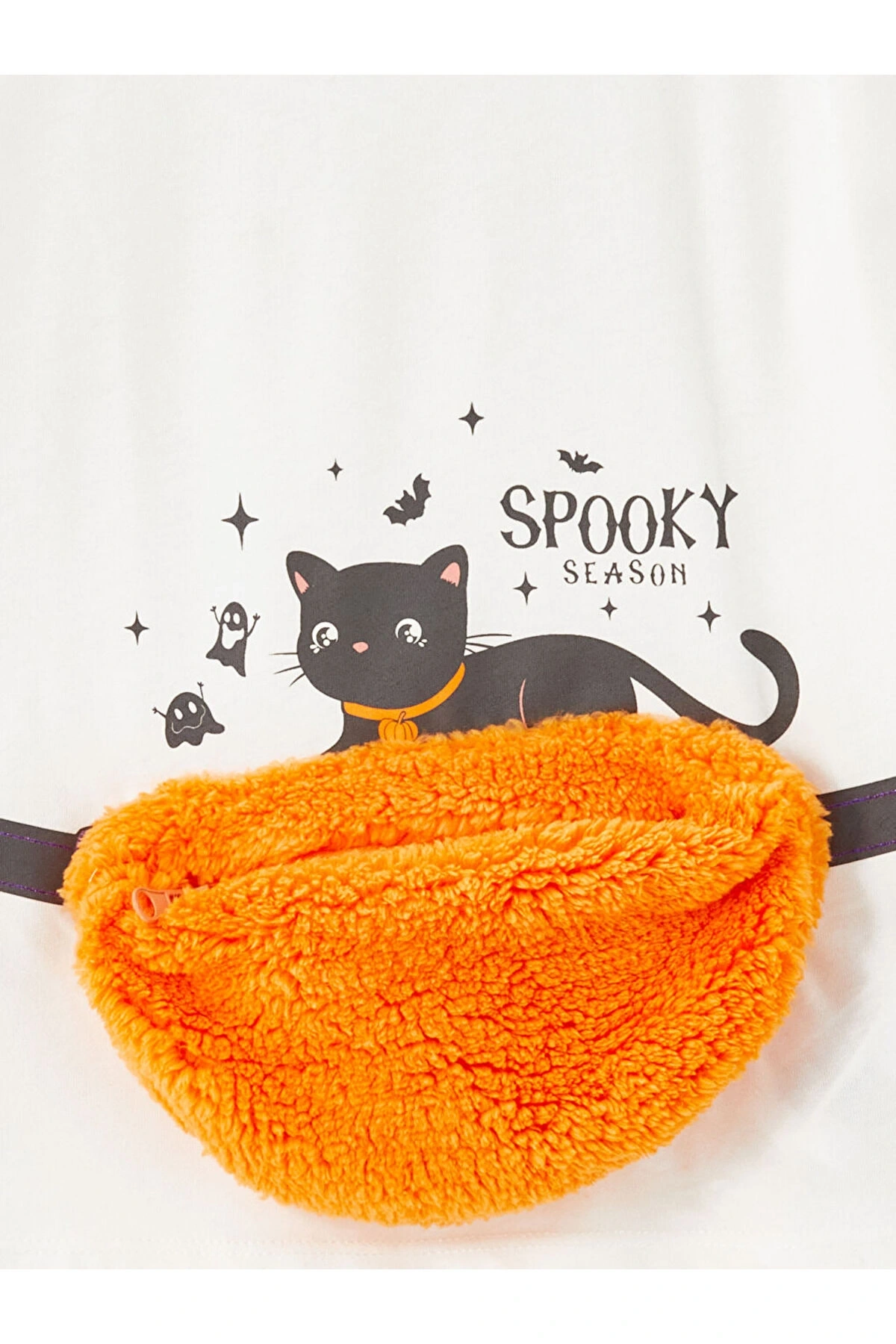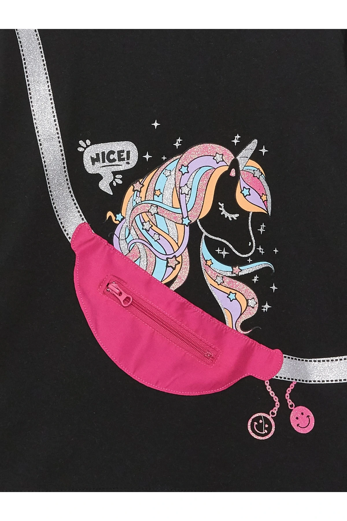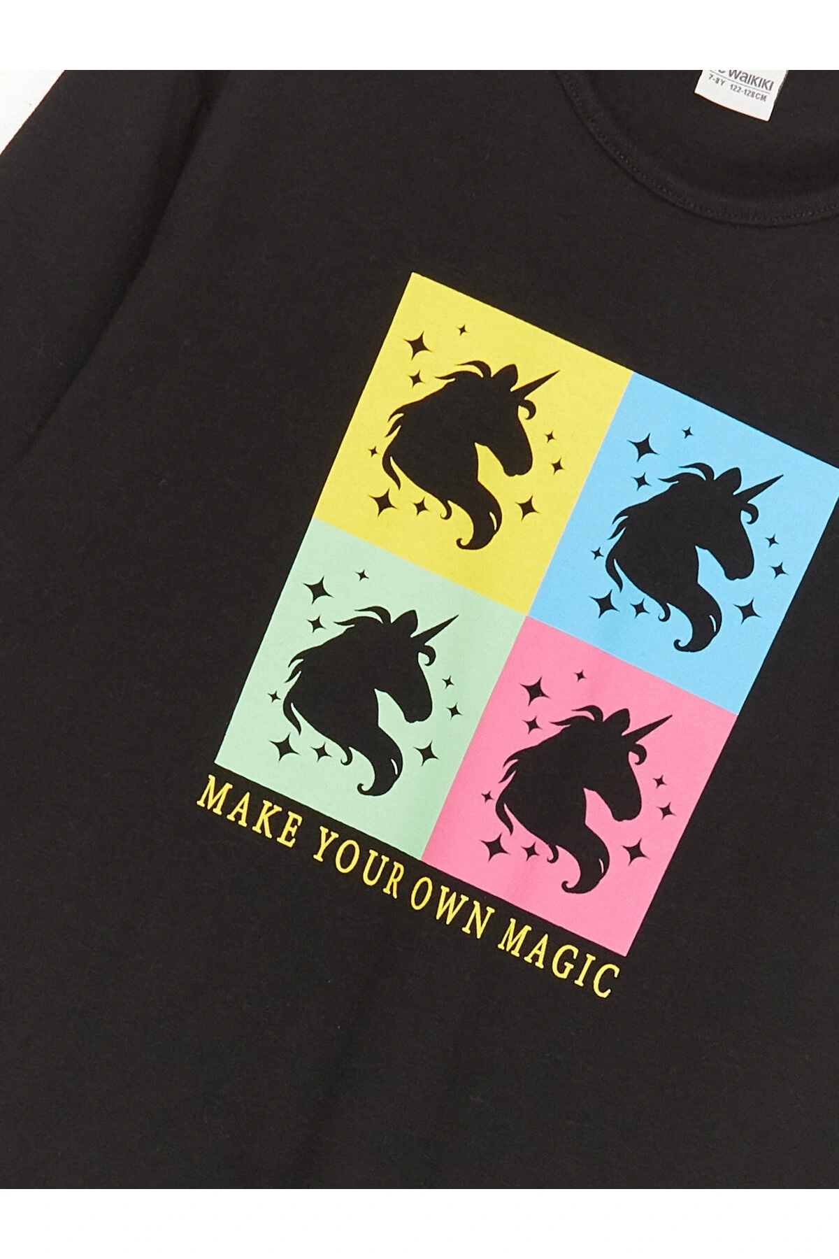 Bisiklet Yaka Baskılı Uzun Kollu Kız Çocuk Tişört