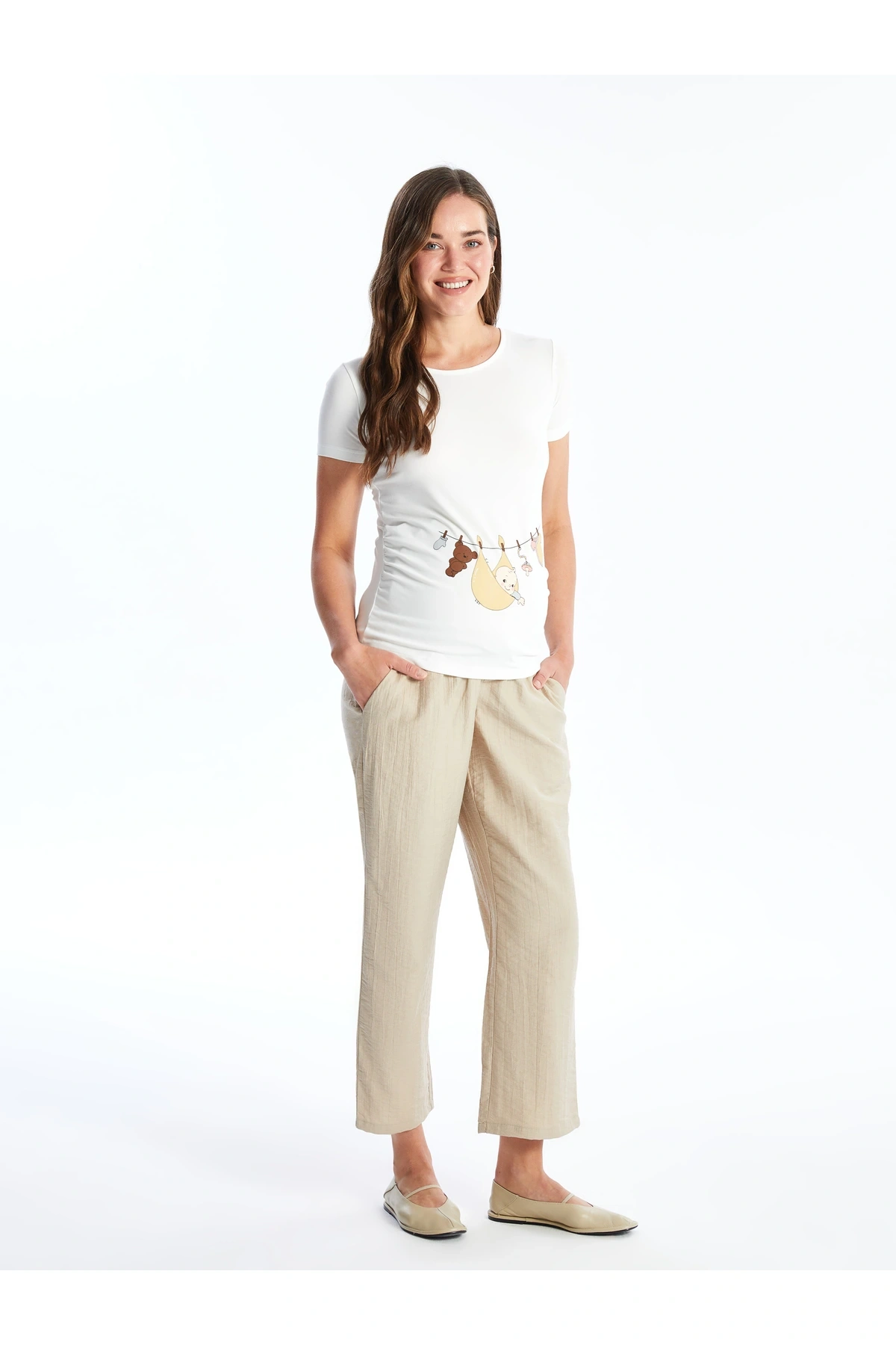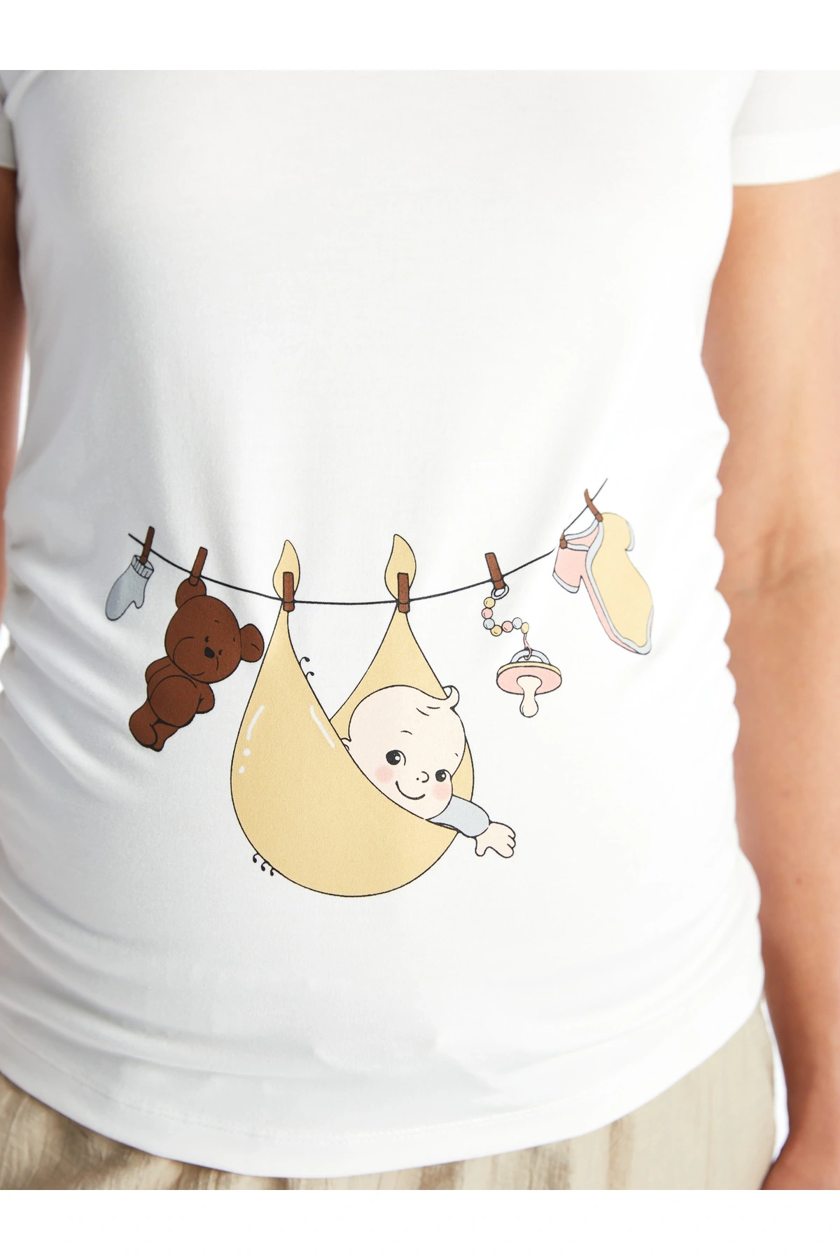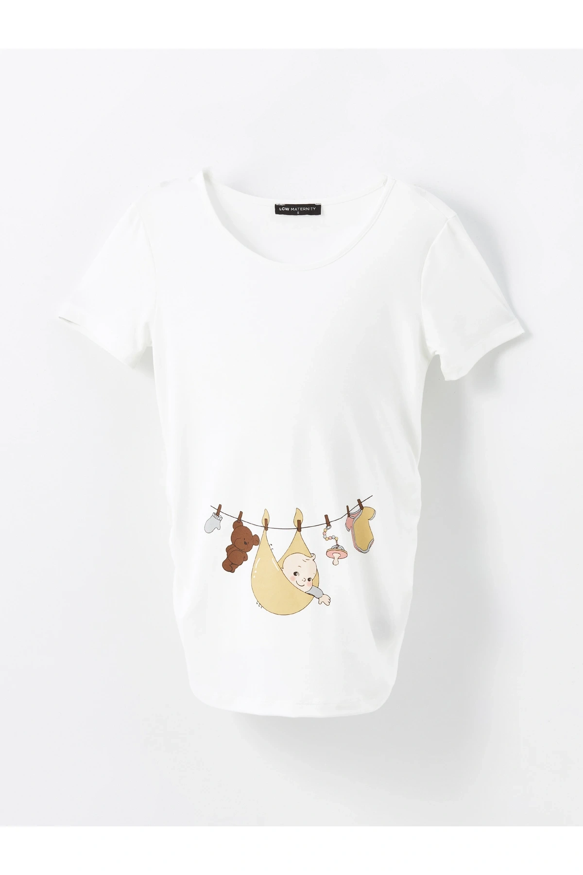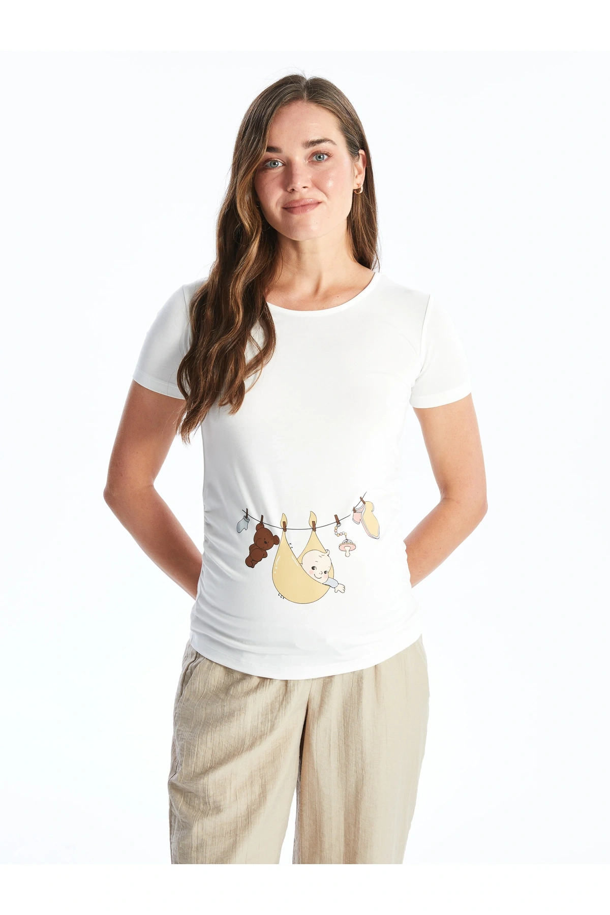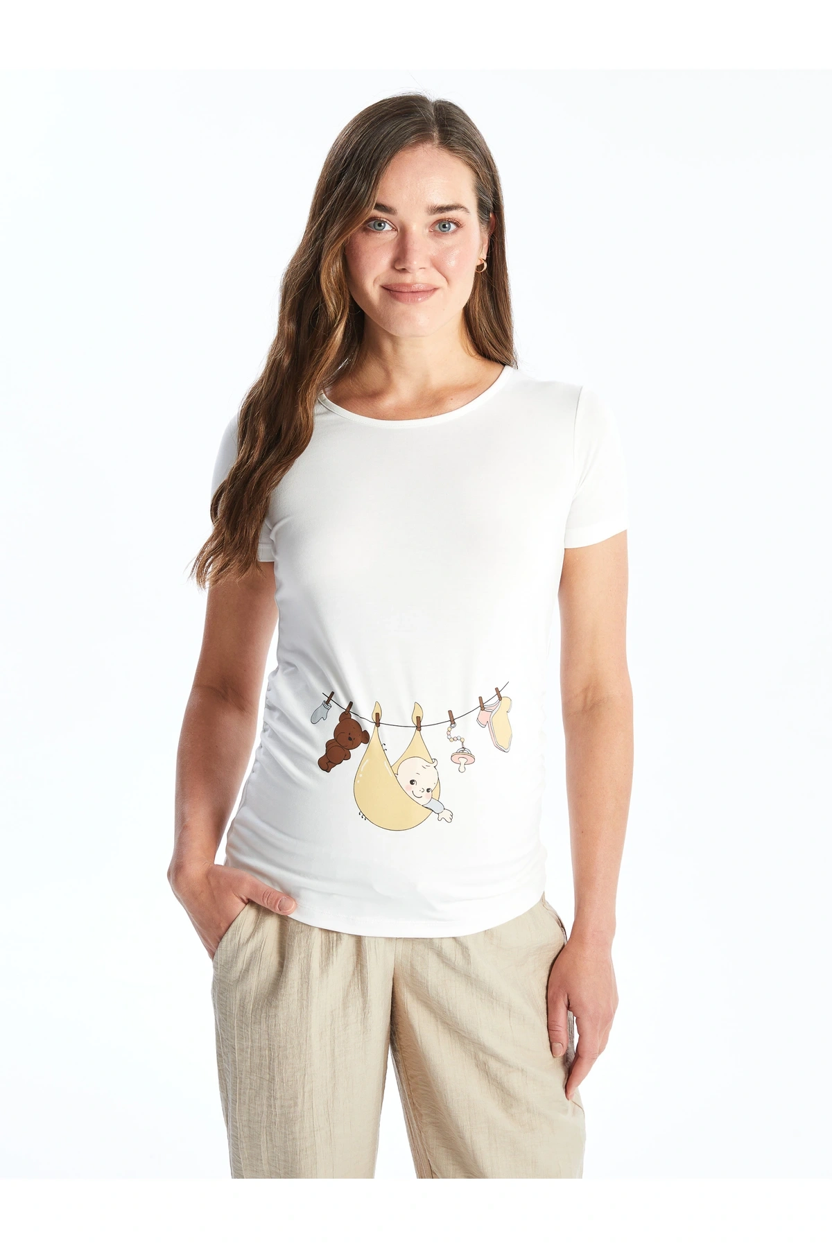 Bisiklet Yaka Baskılı Kısa Kollu Hamile Tişört