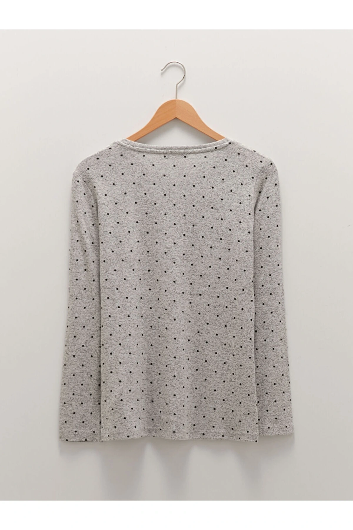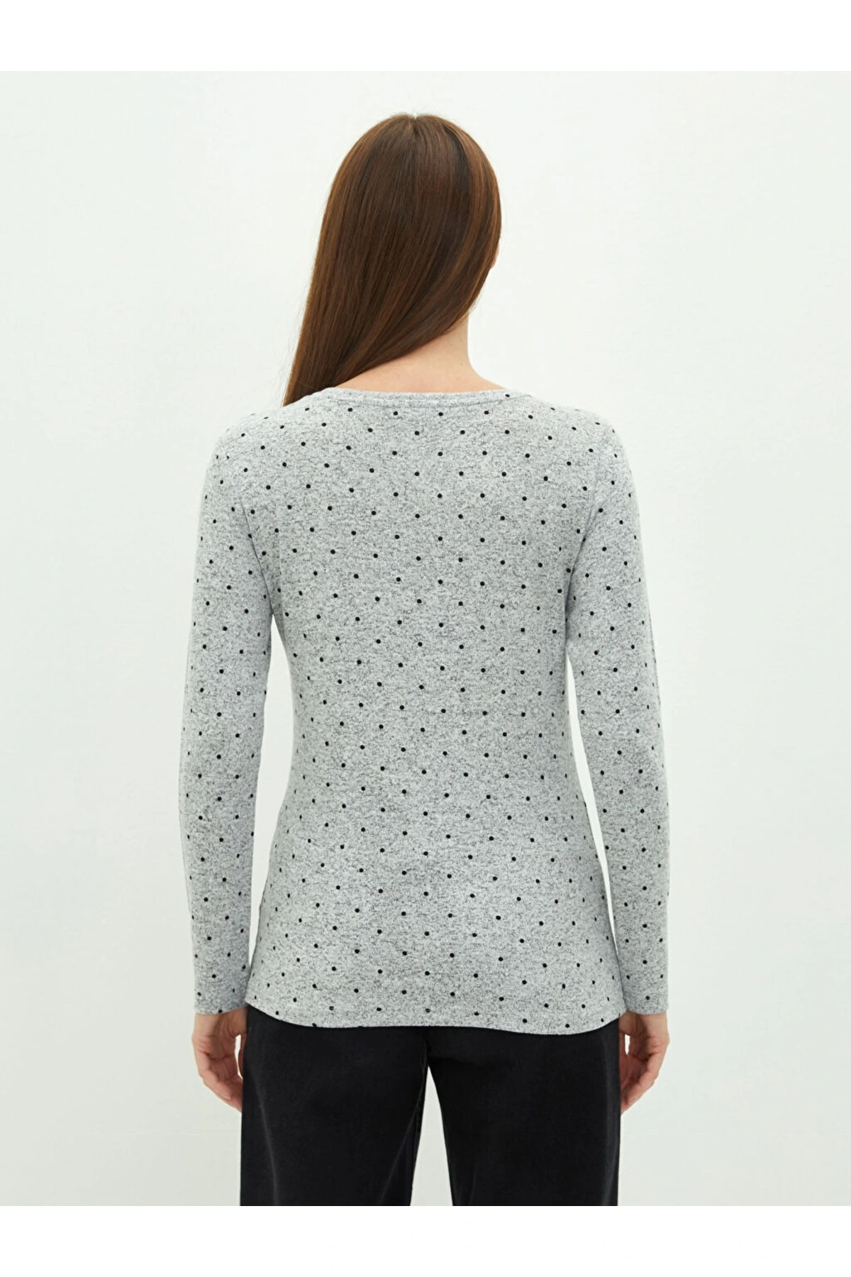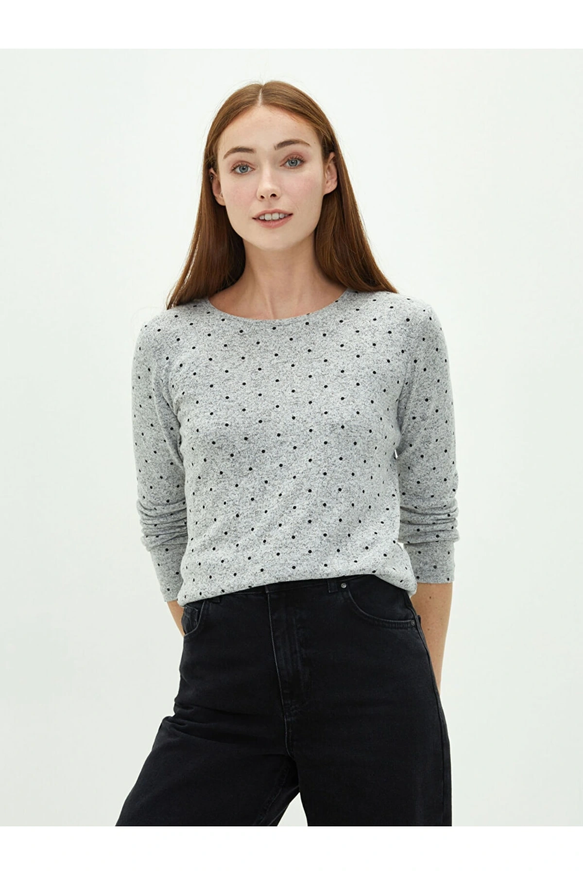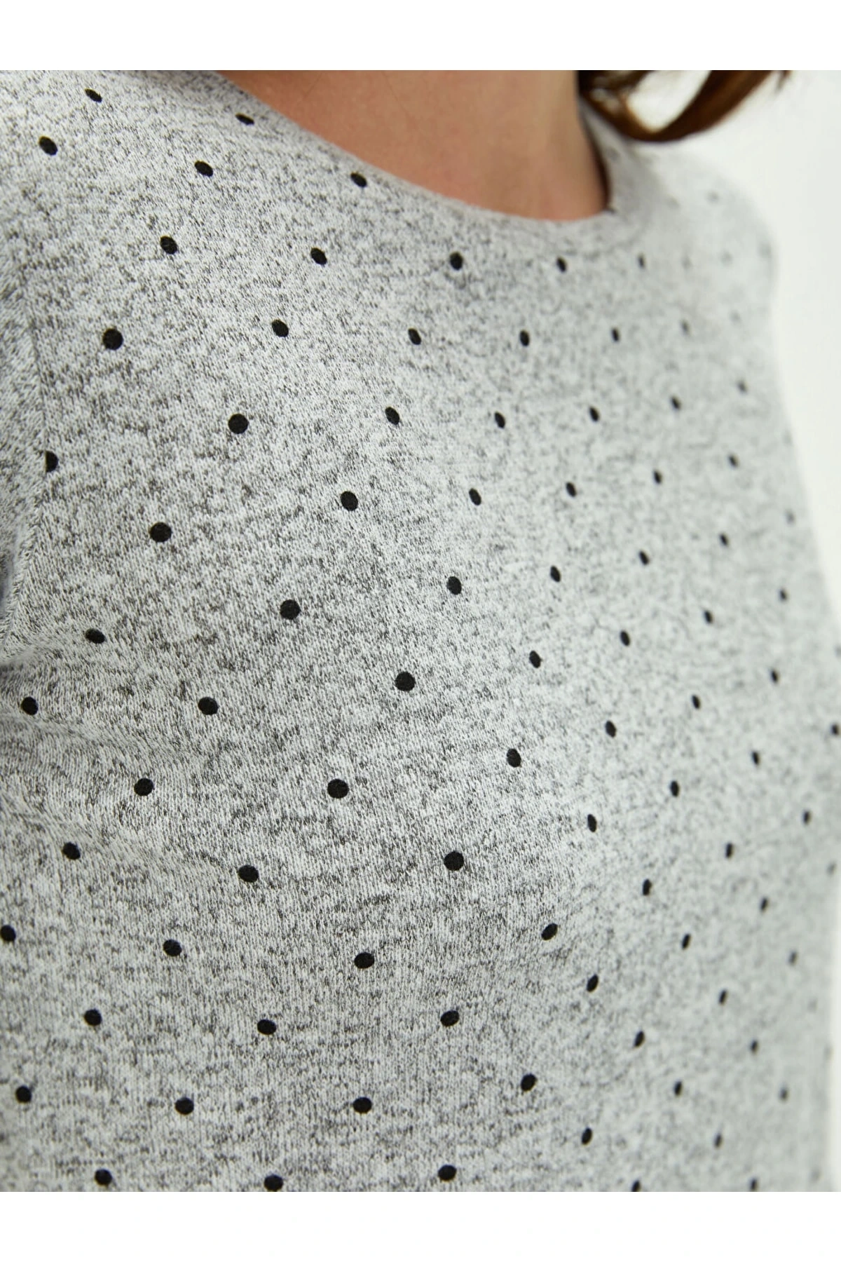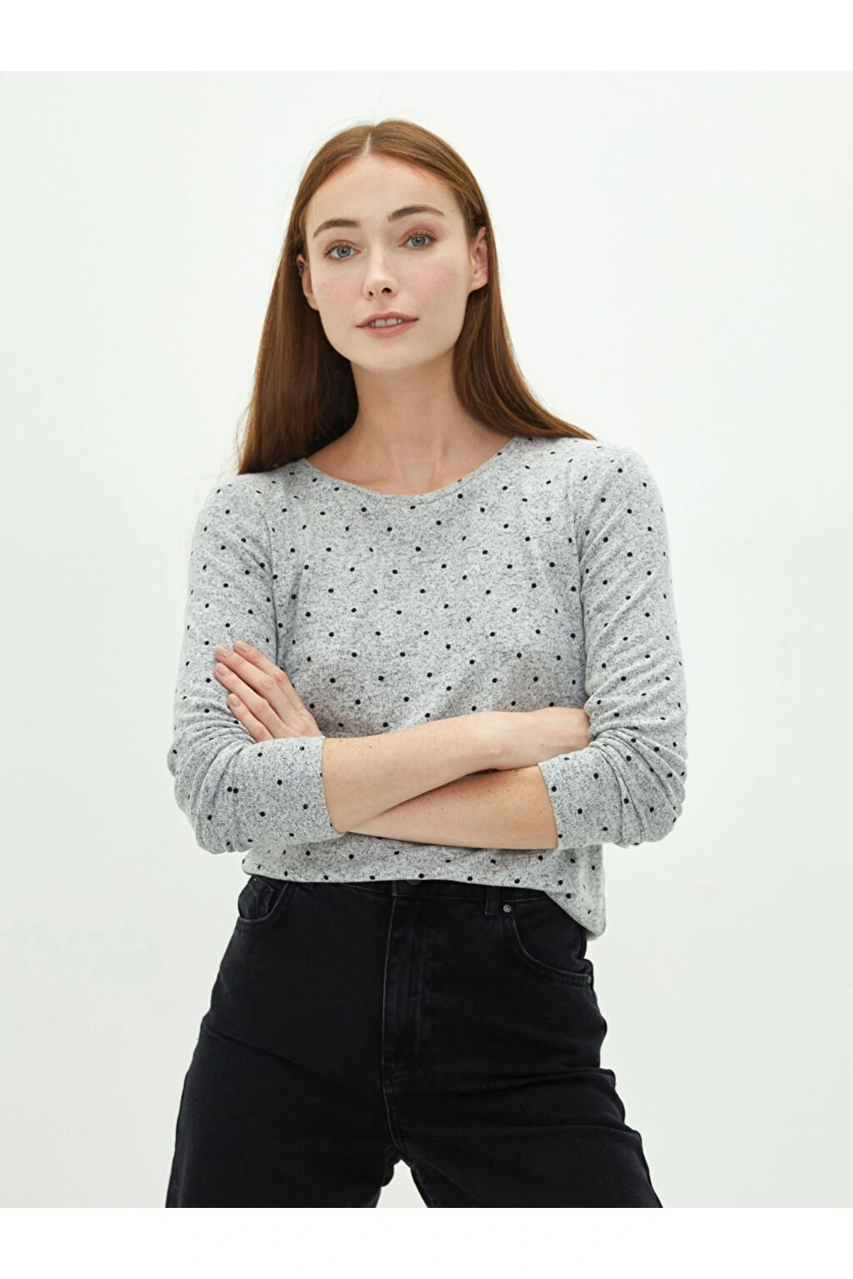 Bisiklet Yaka Puantiyeli Uzun Kollu Kadın Tişört