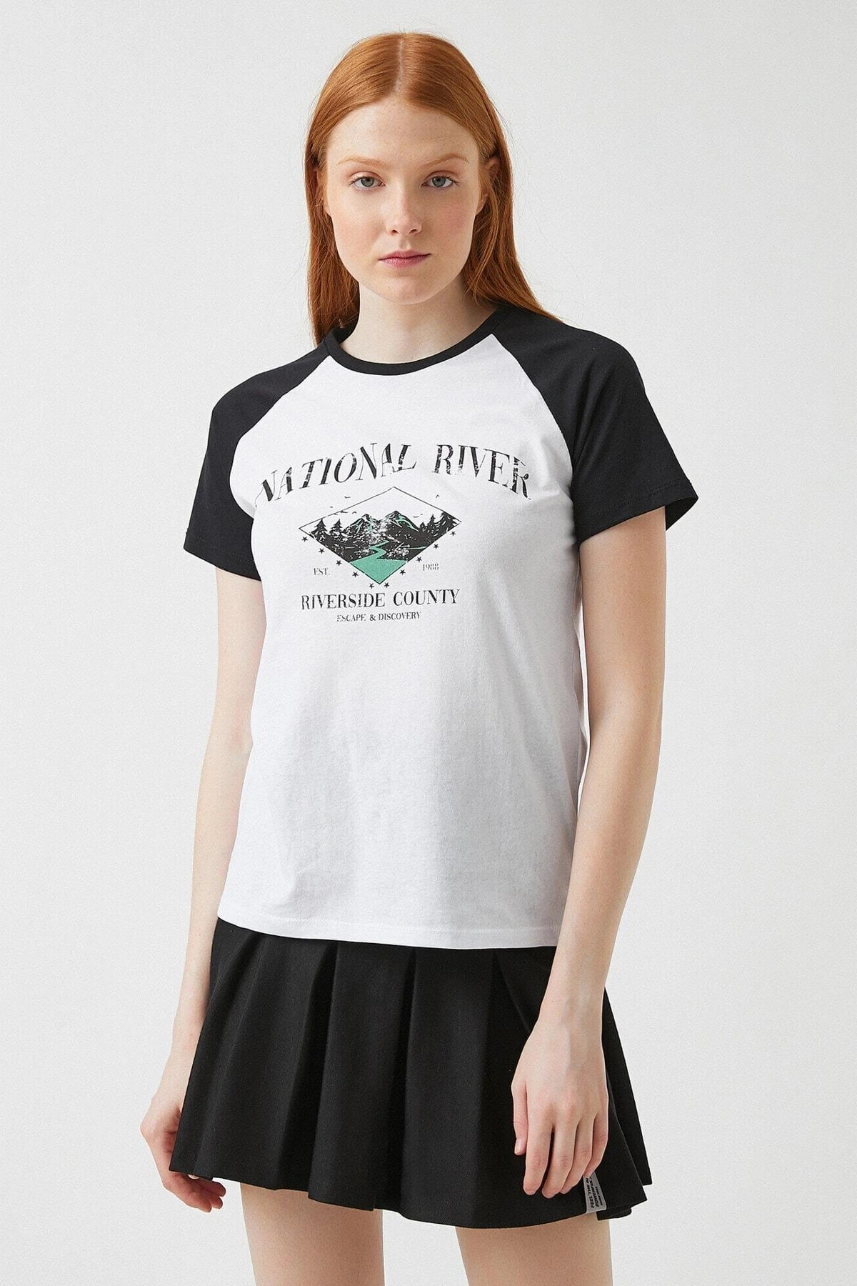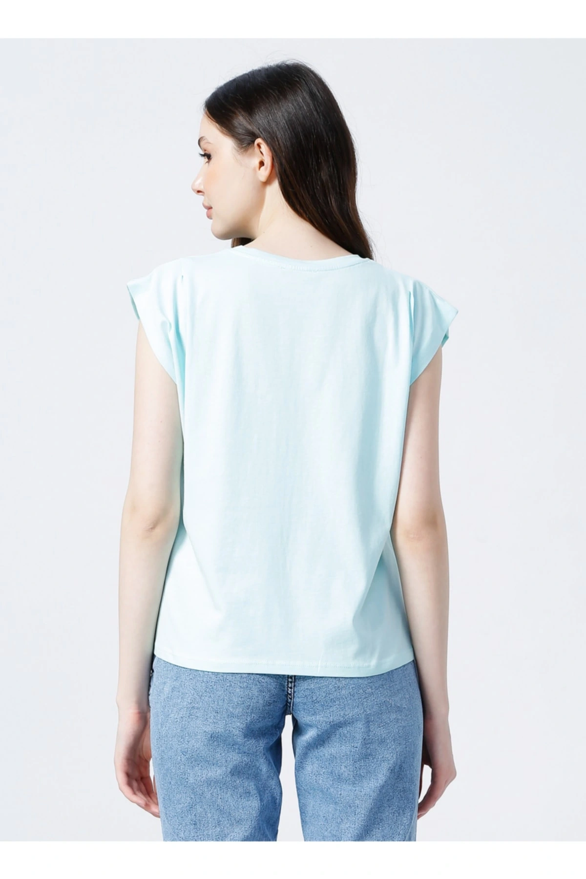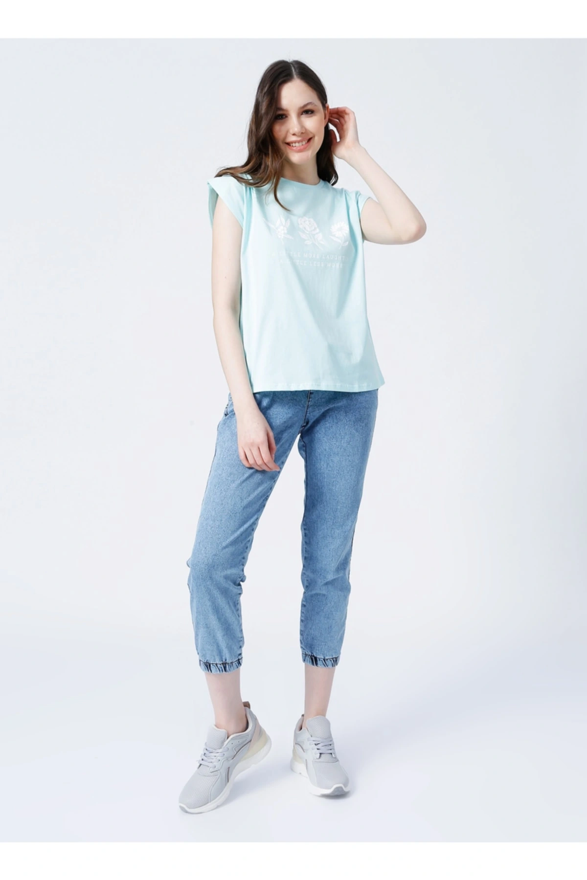 22y0391k1 Bisiklet Yakamini Kol Normal Kalıp Baskılı Mint Kadın T-shirt