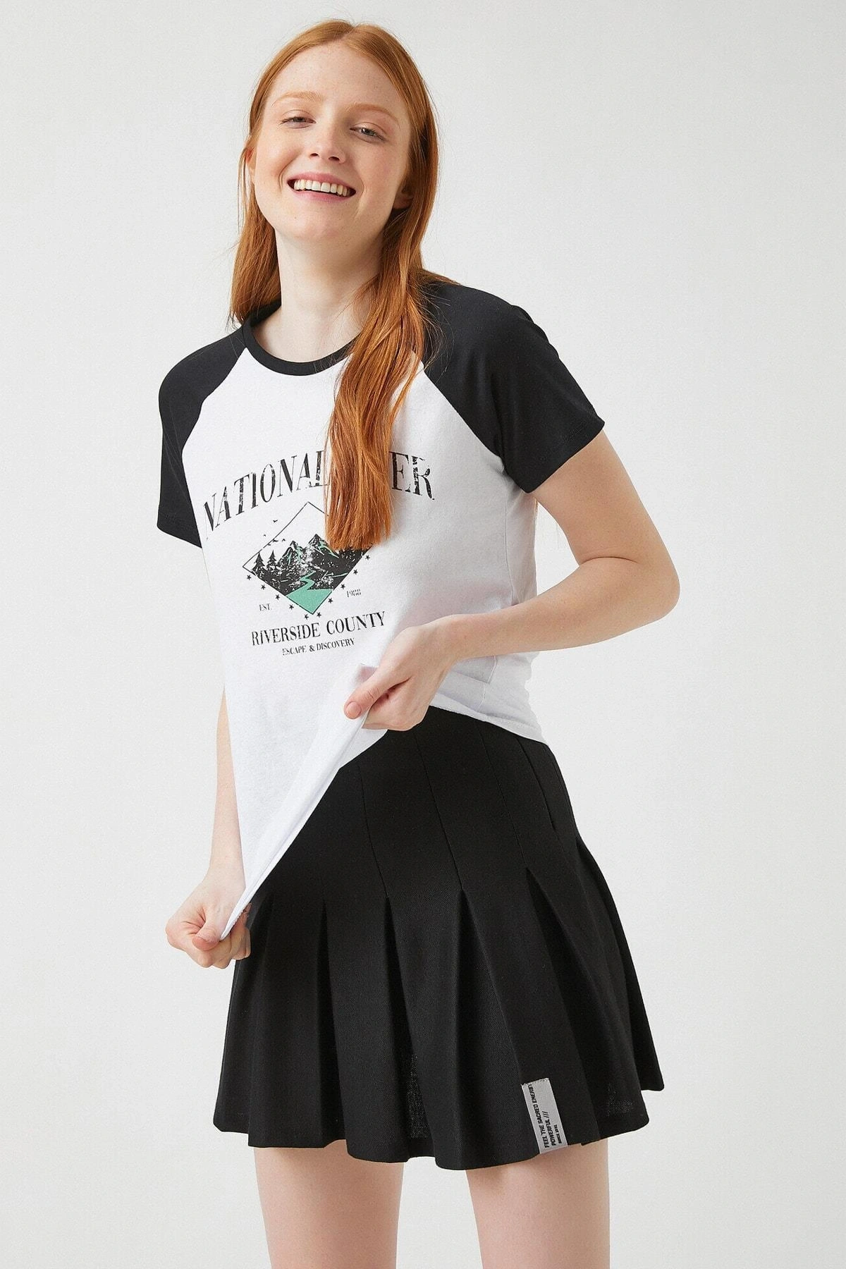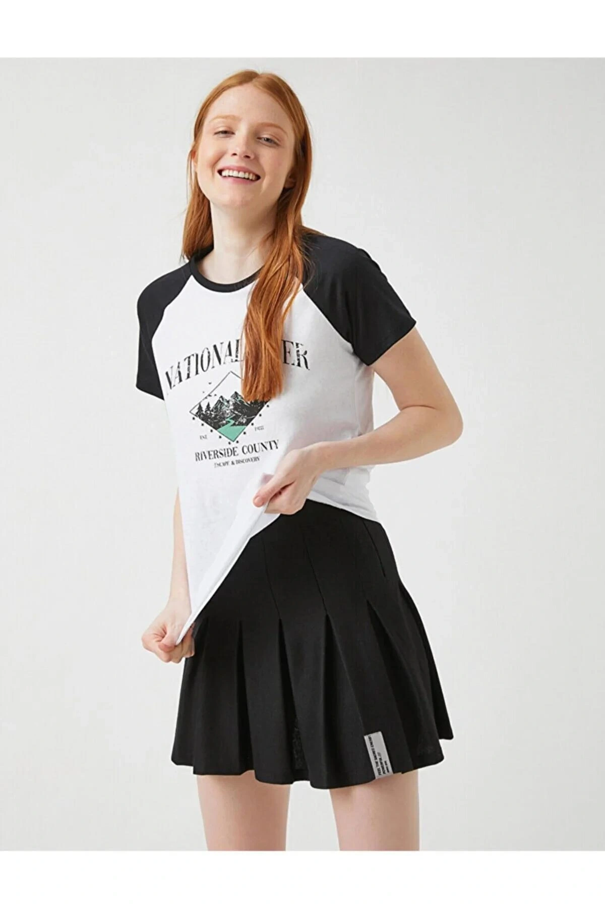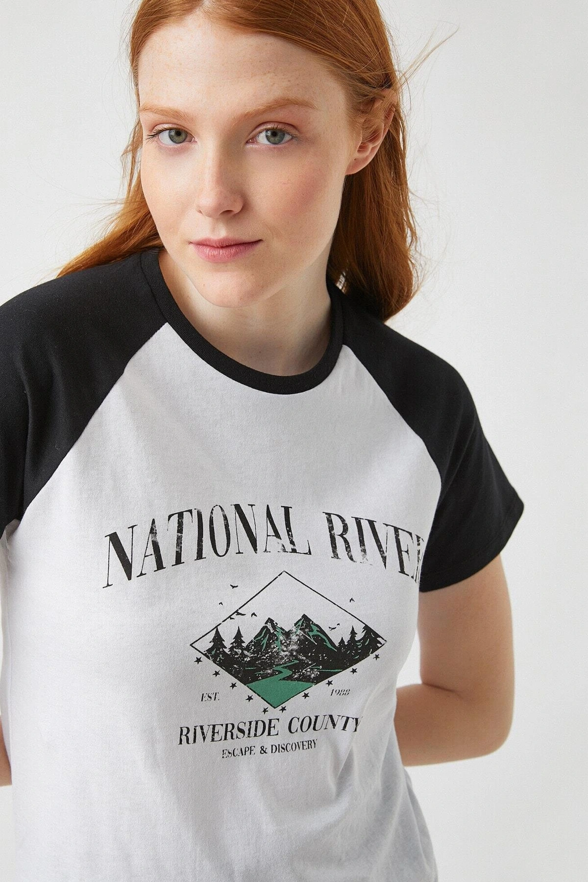 22y0391k1 Bisiklet Yakamini Kol Normal Kalıp Baskılı Mint Kadın T-shirt