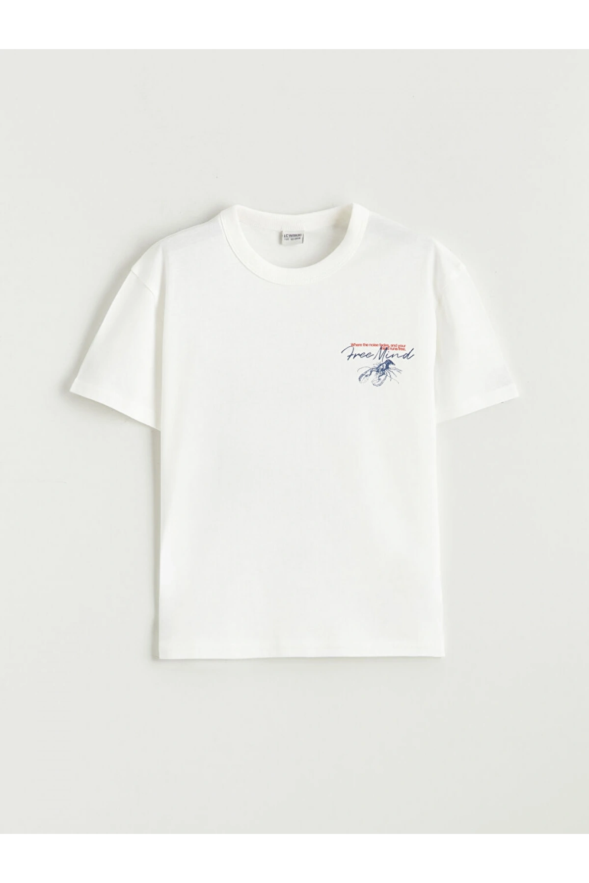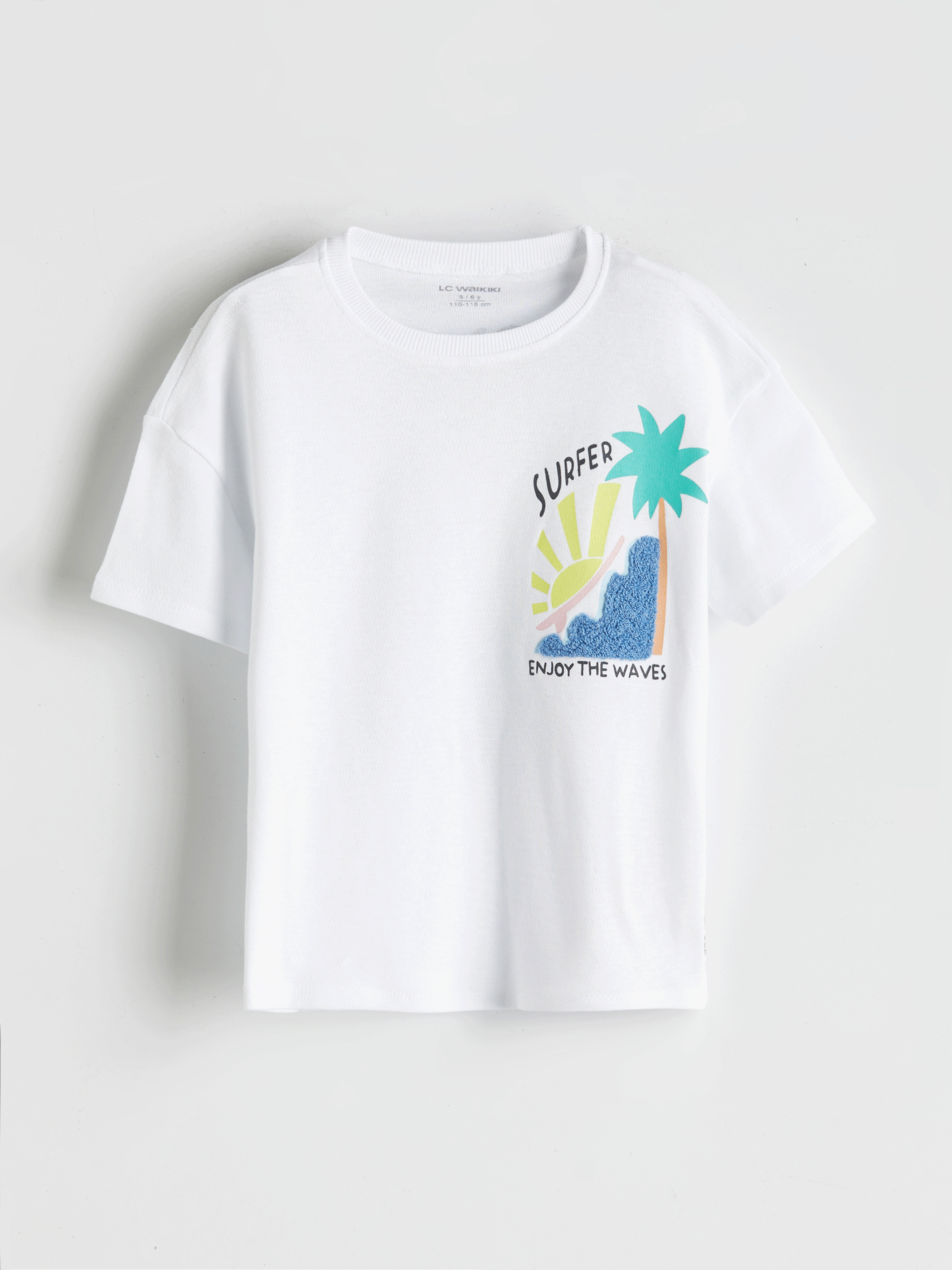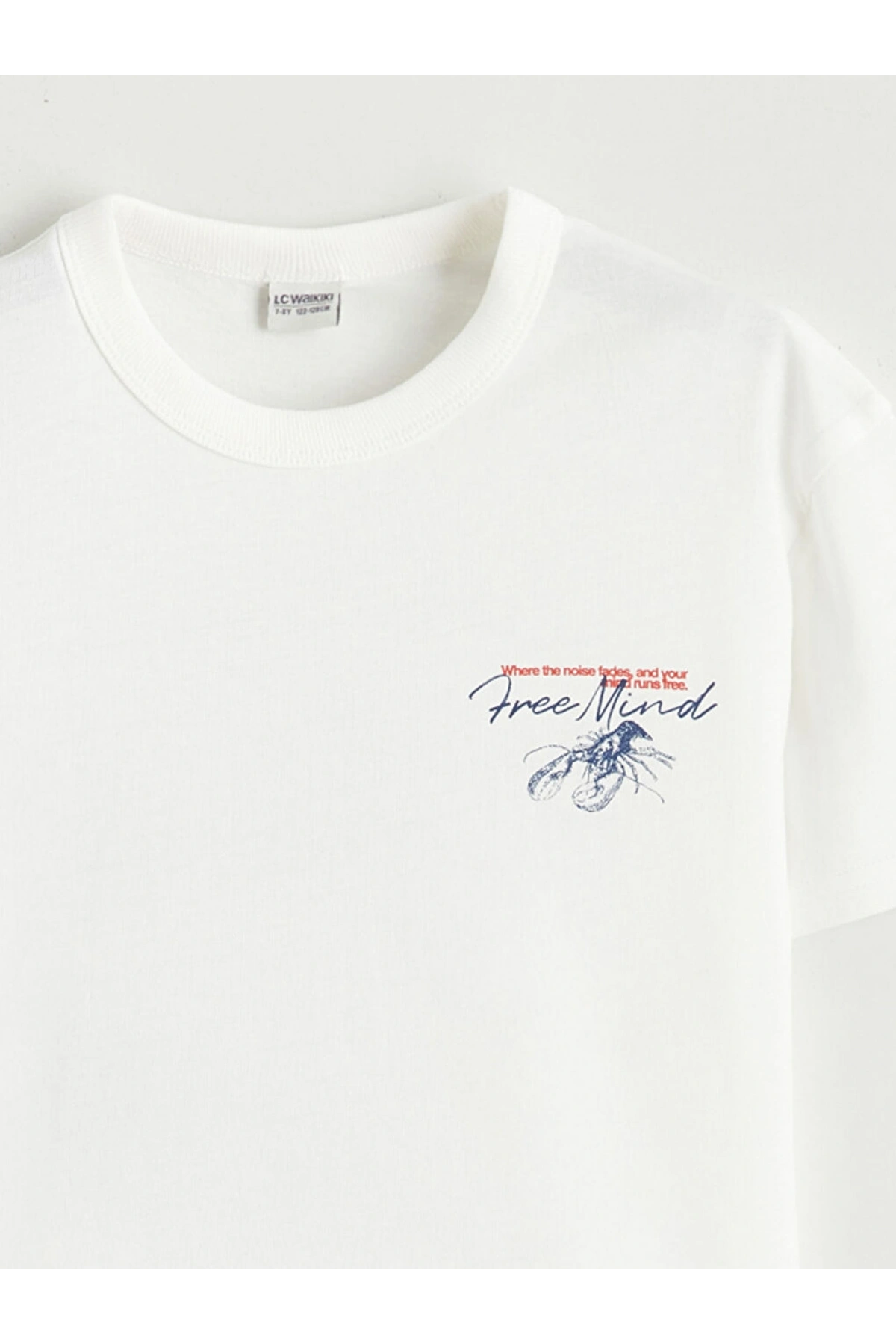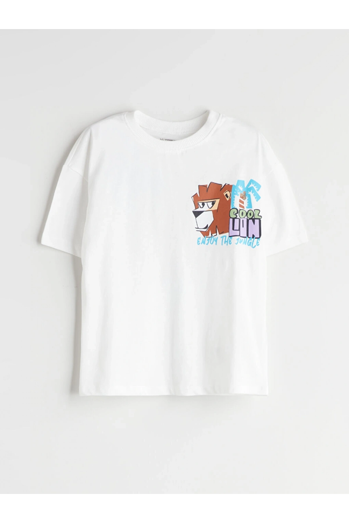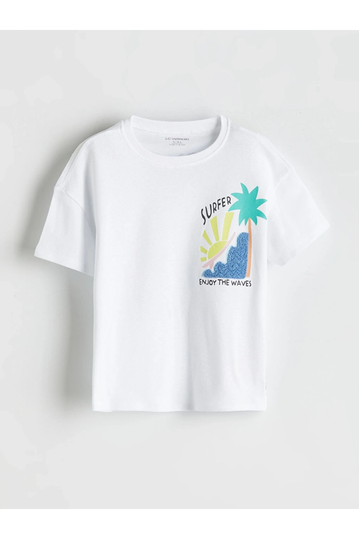 LCW Kids Beyaz Bisiklet Yaka Baskılı Erkek Çocuk Tişört